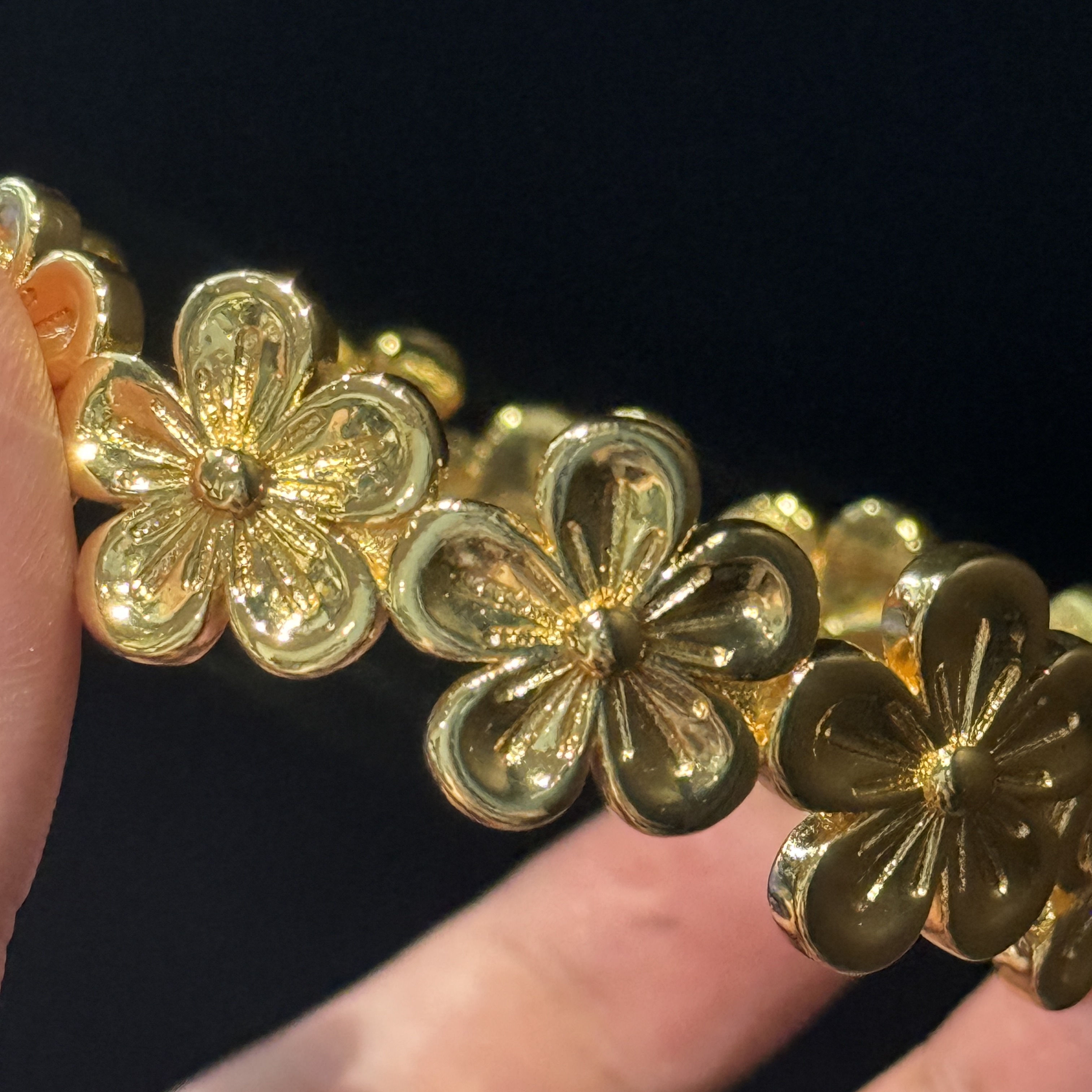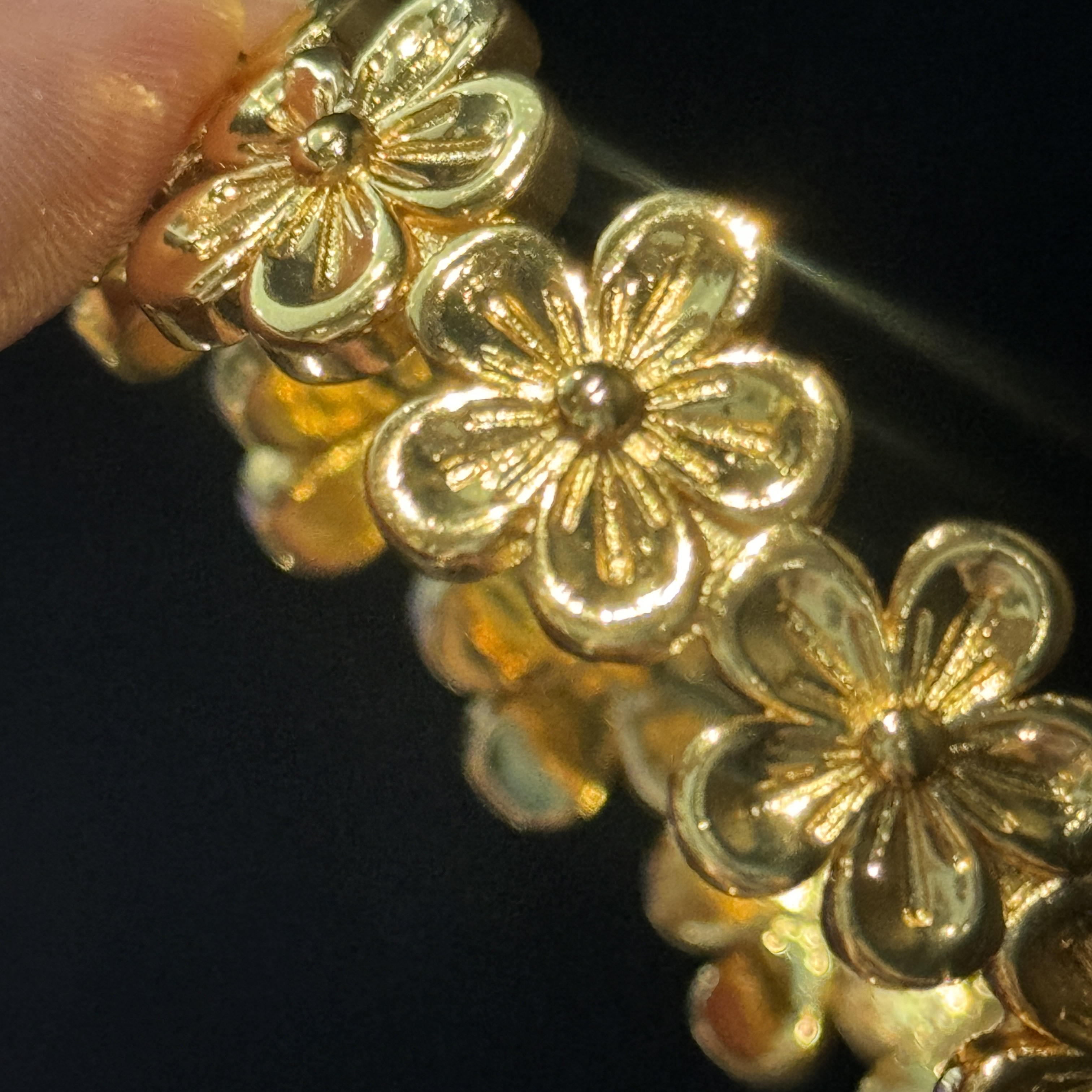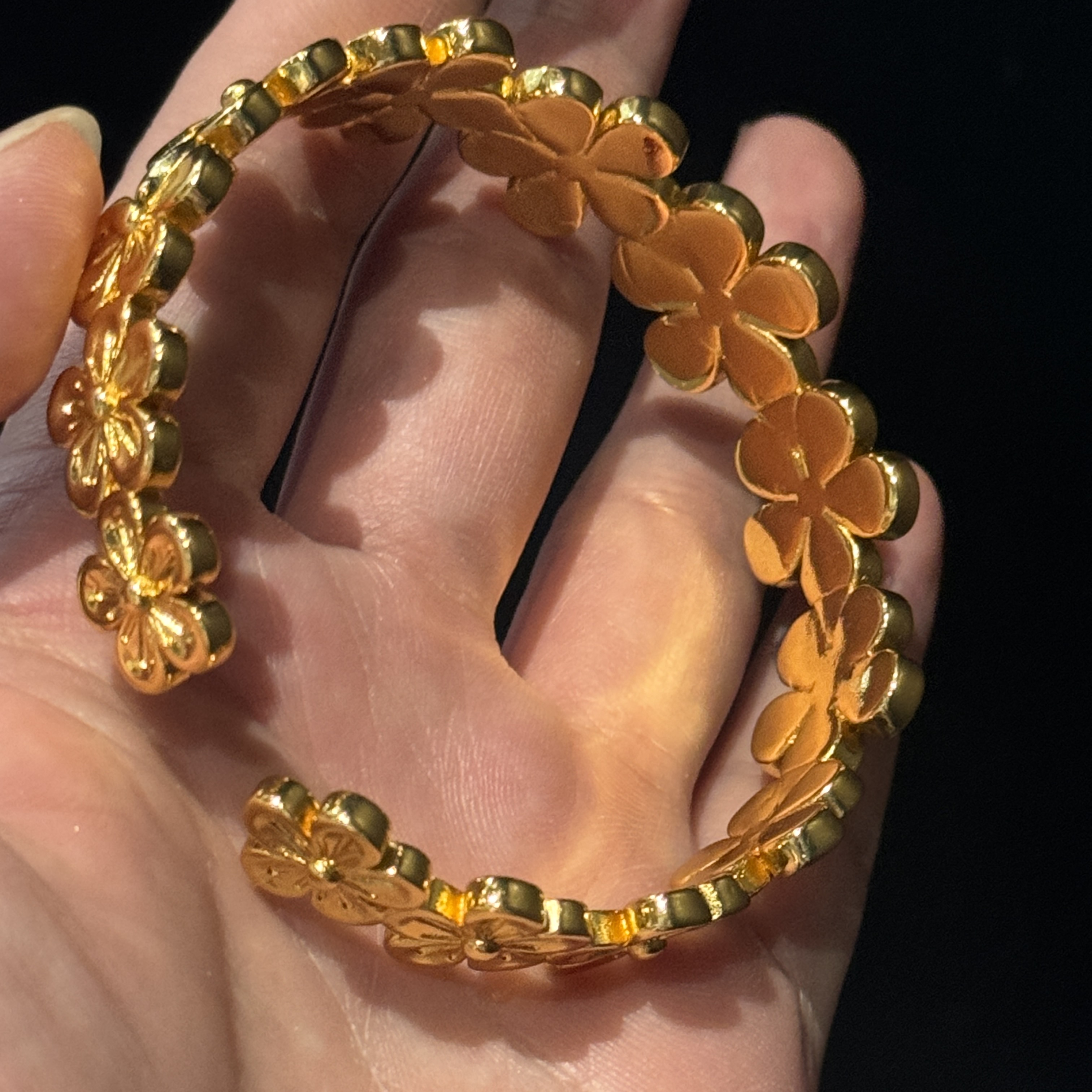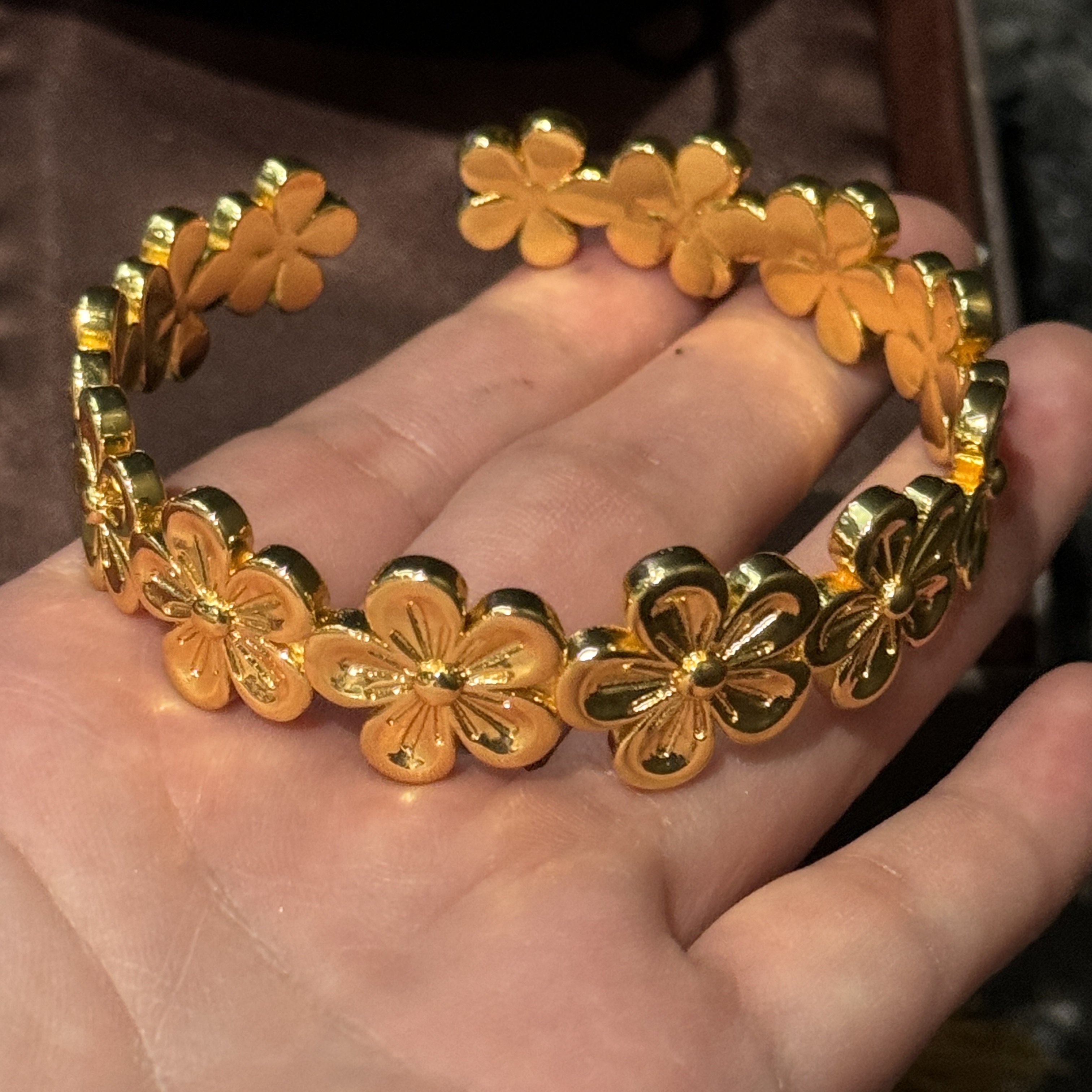 这款金色复古花朵手镯,简直让人一见倾心! 仿若花蕊般熠熠生辉,搭配金色镯圈,高级感瞬间爆棚! 无论是日常穿搭还是特殊场合,戴上它,立刻提升气场,让你成为众人瞩目的焦点。 它的设计灵感源自复古浪漫元素,小众而不失格调,适合各种手型的姐妹,因为它可以调节大小哦! 不用担心会因为尺寸问题而错过它,真正的百搭神器! 戴上它,不仅能让你的手指看起来更加纤细,还能瞬间提升整体气质,让你散发出独有的魅力。