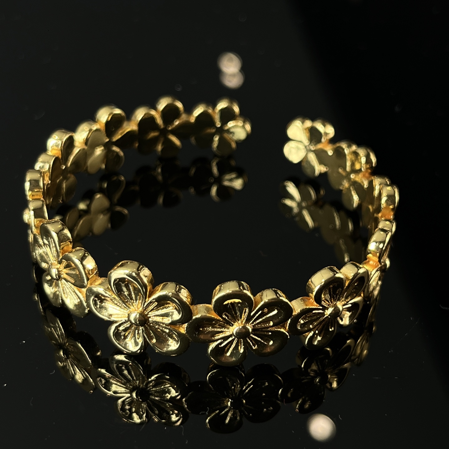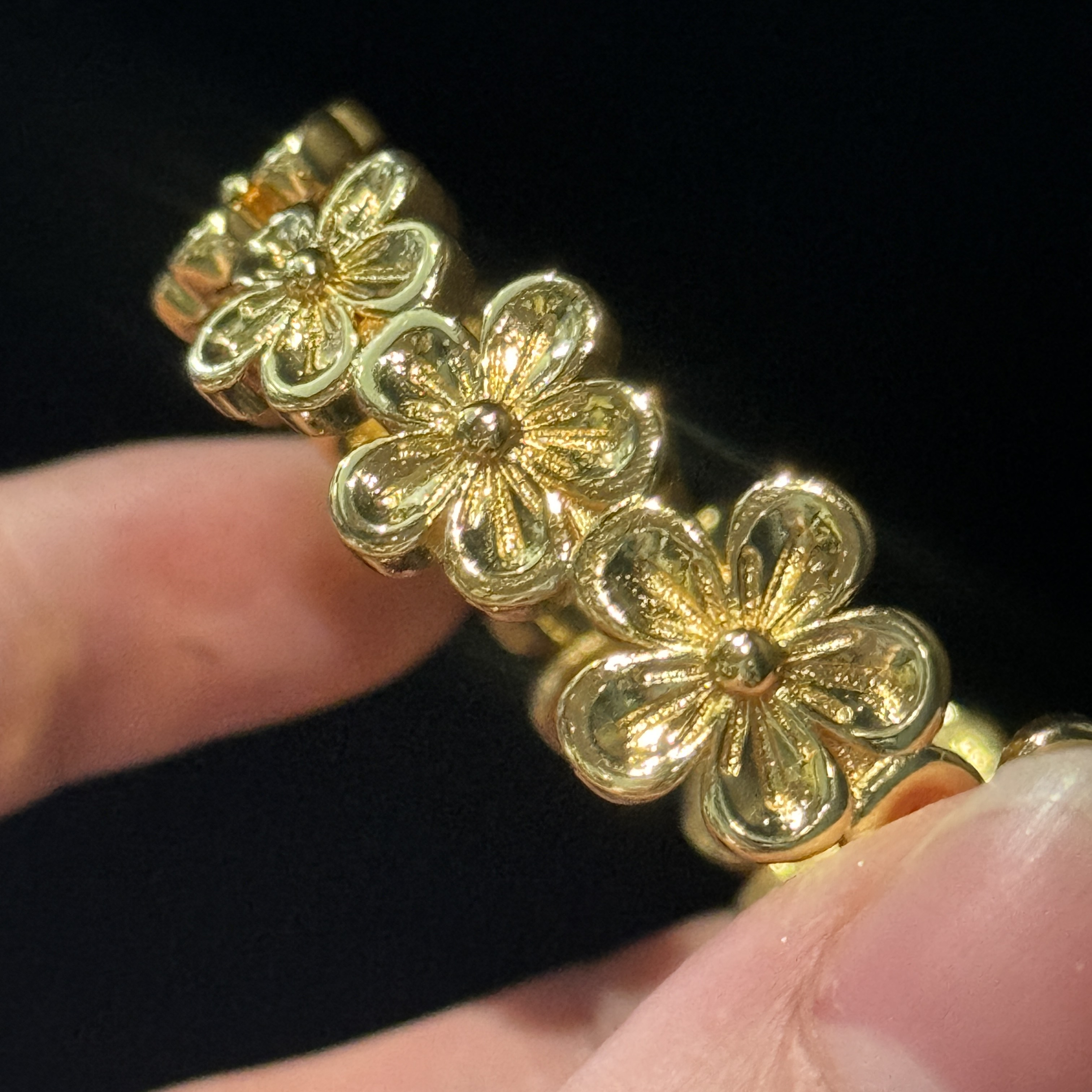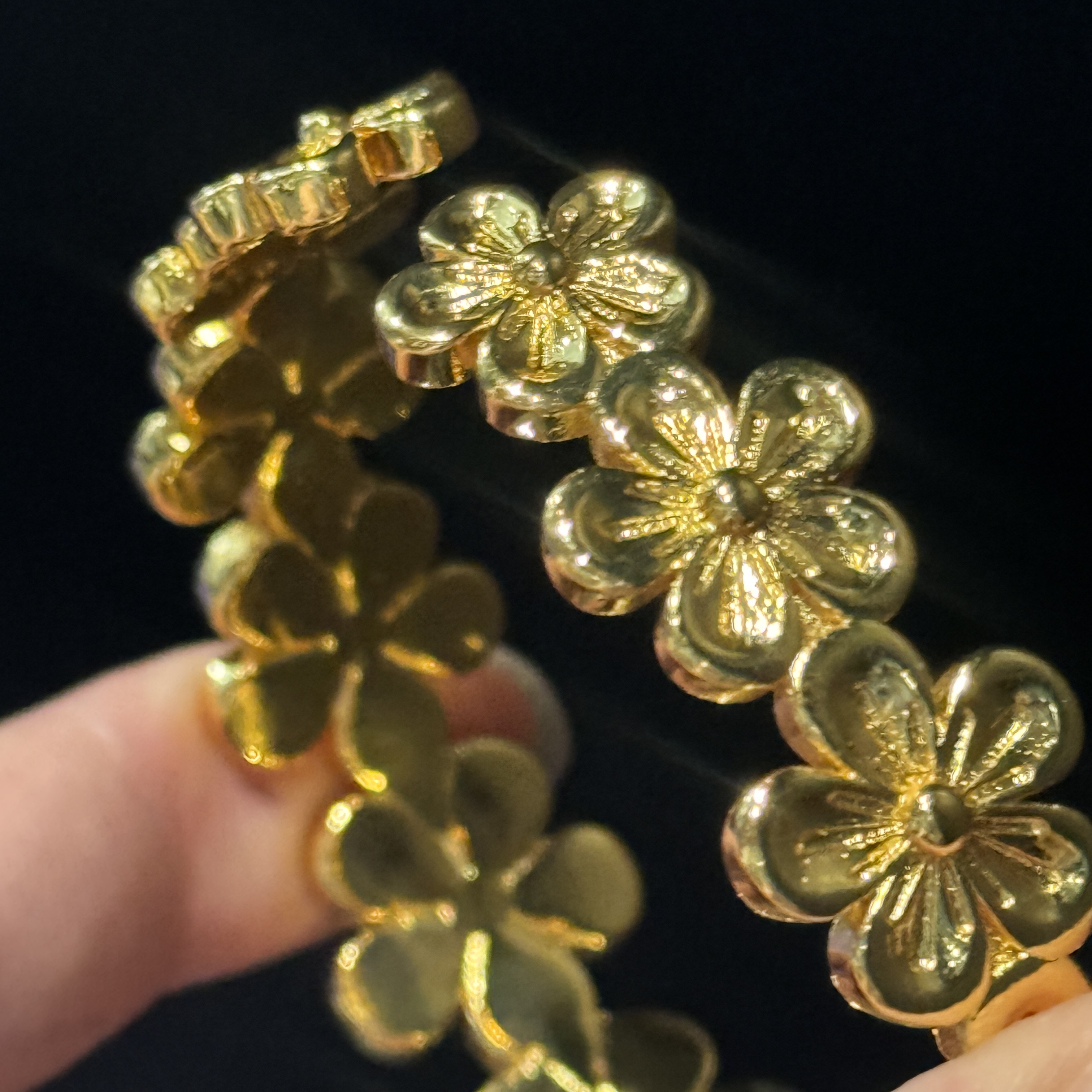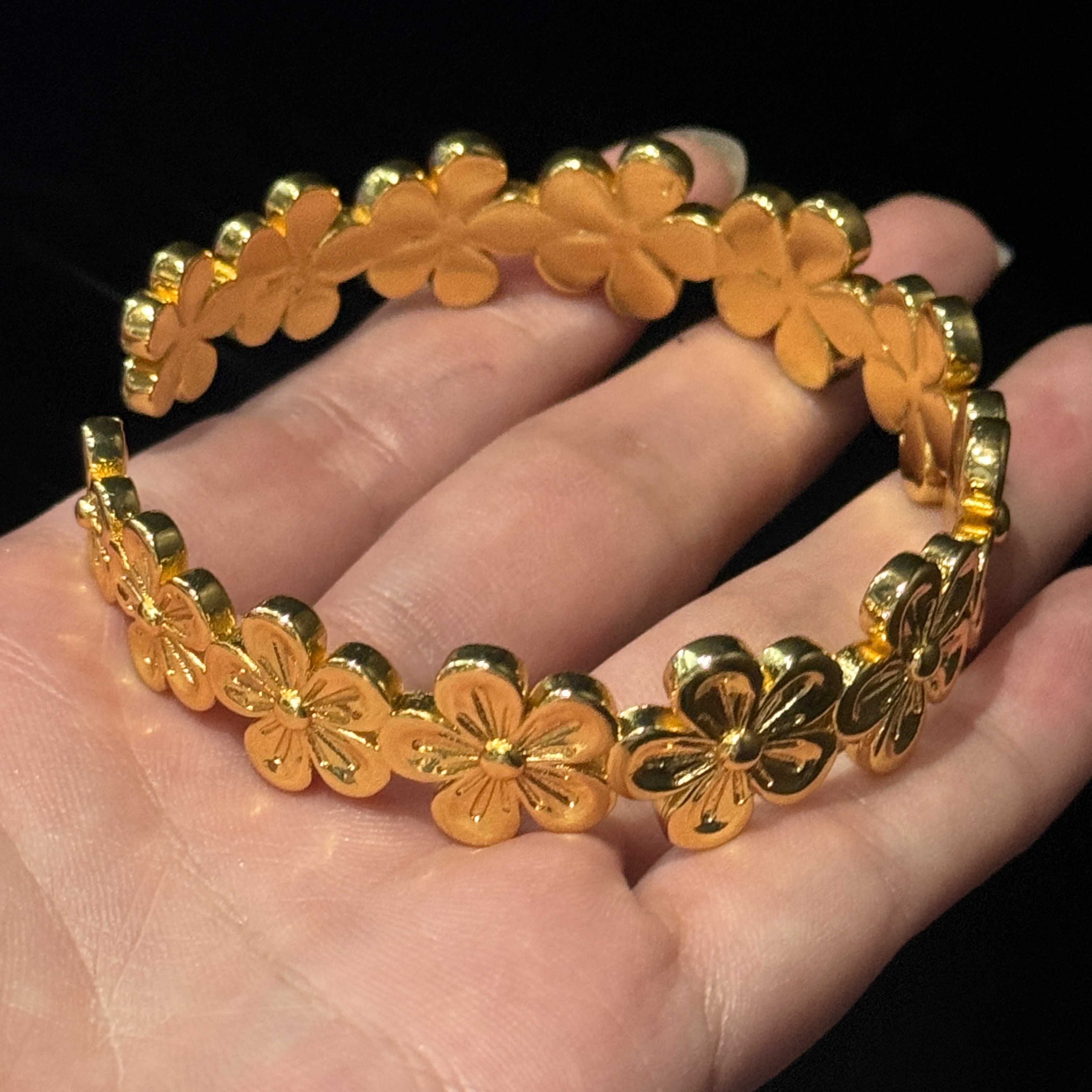 这款金色复古花朵手镯,简直让人一见倾心! 仿若花蕊般熠熠生辉,搭配金色镯圈,高级感瞬间爆棚! 无论是日常穿搭还是特殊场合,戴上它,立刻提升气场,让你成为众人瞩目的焦点。 它的设计灵感源自复古浪漫元素,小众而不失格调,适合各种手型的姐妹,因为它可以调节大小哦! 不用担心会因为尺寸问题而错过它,真正的百搭神器! 戴上它,不仅能让你的手指看起来更加纤细,还能瞬间提升整体气质,让你散发出独有的魅力。