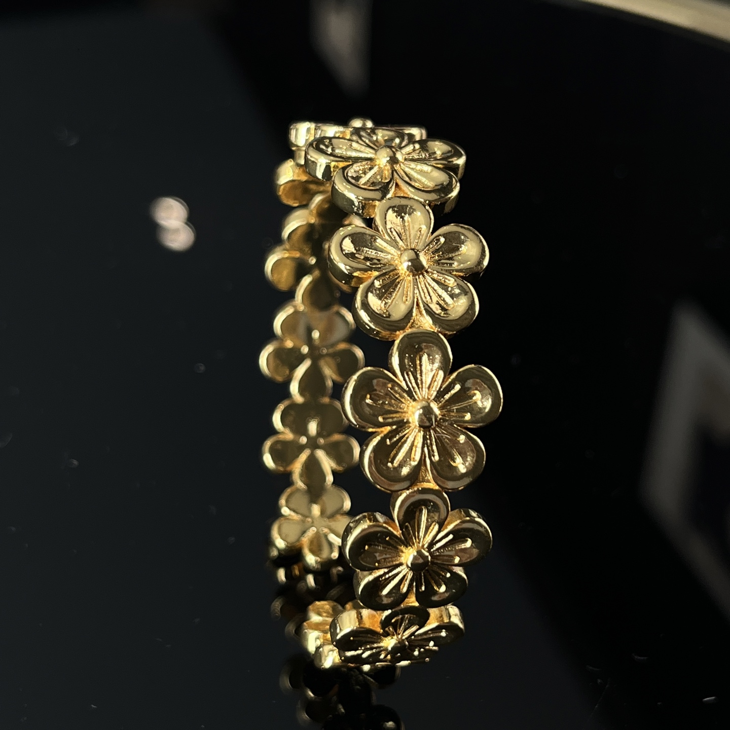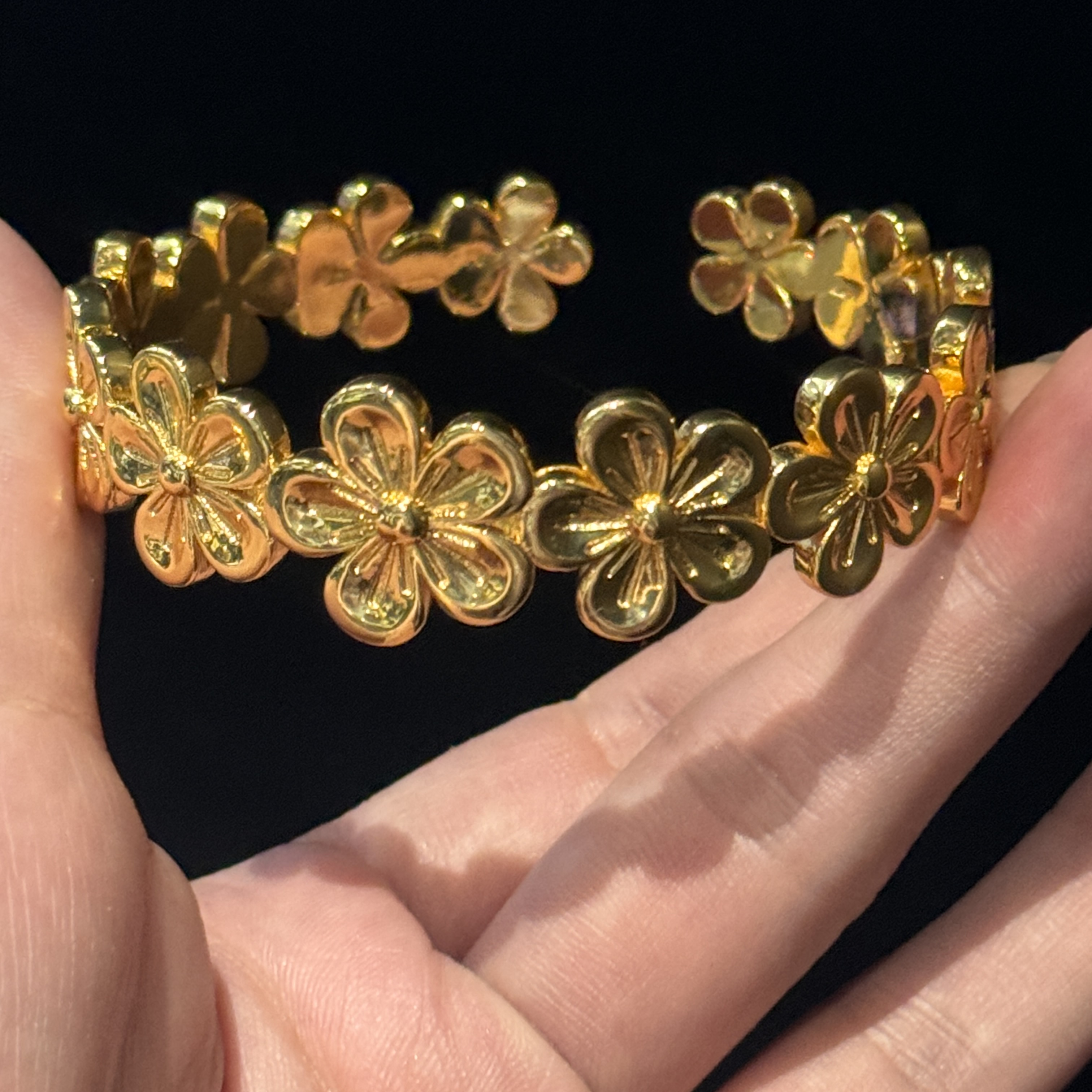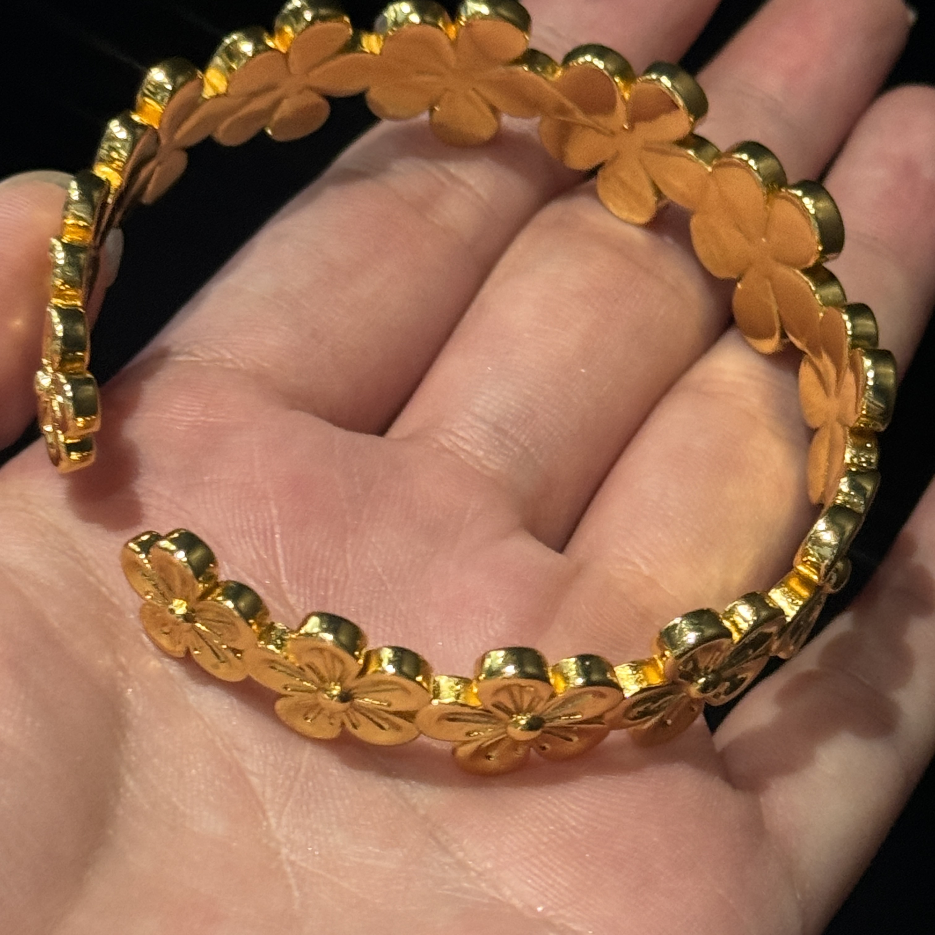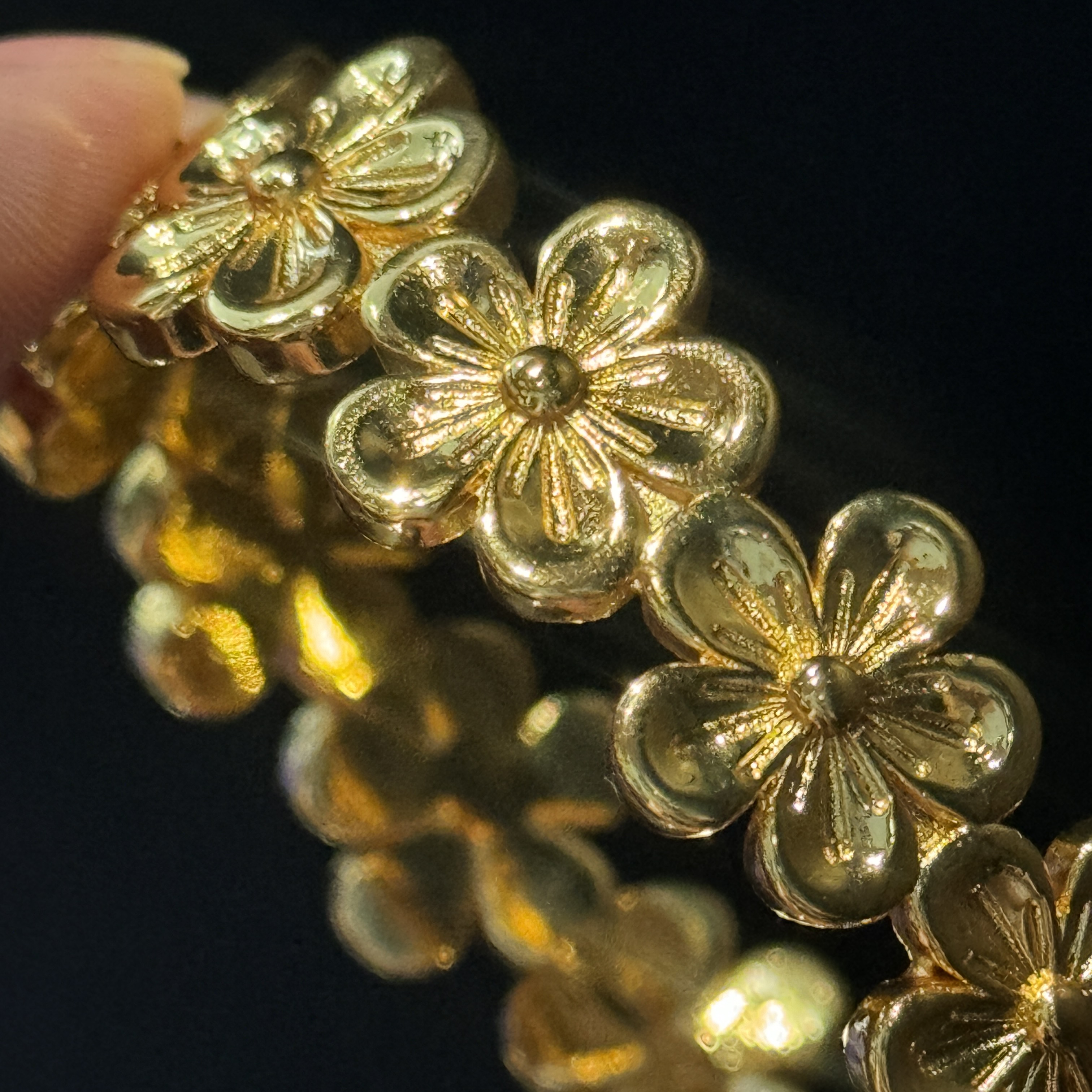这款金色复古花朵手镯,简直让人一见倾心! 仿若花蕊般熠熠生辉,搭配金色镯圈,高级感瞬间爆棚! 无论是日常穿搭还是特殊场合,戴上它,立刻提升气场,让你成为众人瞩目的焦点。 它的设计灵感源自复古浪漫元素,小众而不失格调,适合各种手型的姐妹,因为它可以调节大小哦! 不用担心会因为尺寸问题而错过它,真正的百搭神器! 戴上它,不仅能让你的手指看起来更加纤细,还能瞬间提升整体气质,让你散发出独有的魅力。
