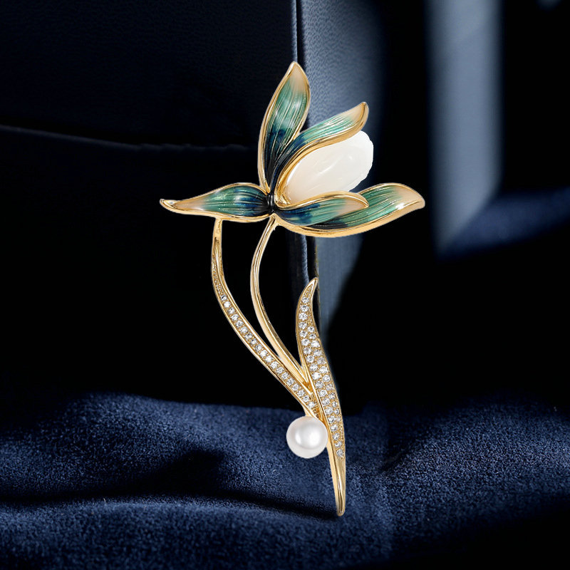 优雅气质,复古中国风新款衣饰旗袍礼服秋冬外套胸花配饰玉兰花胸针LY-G-046