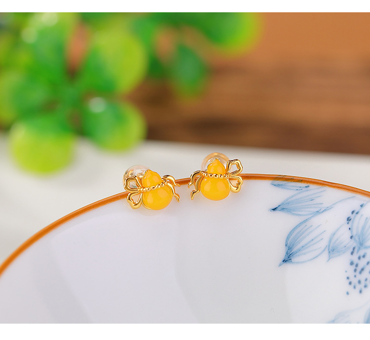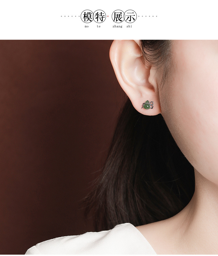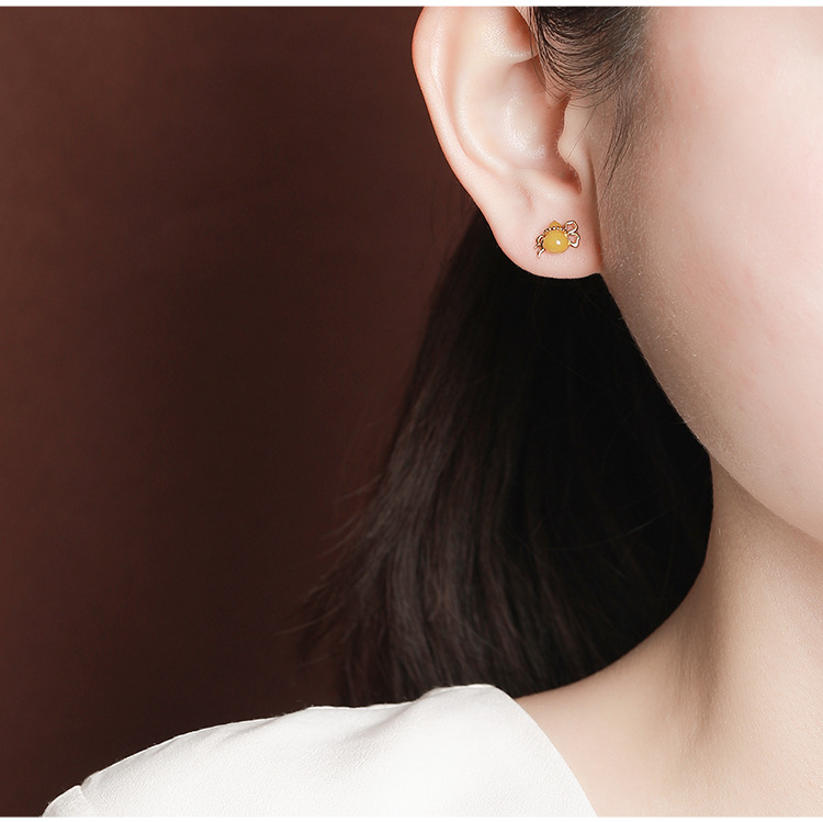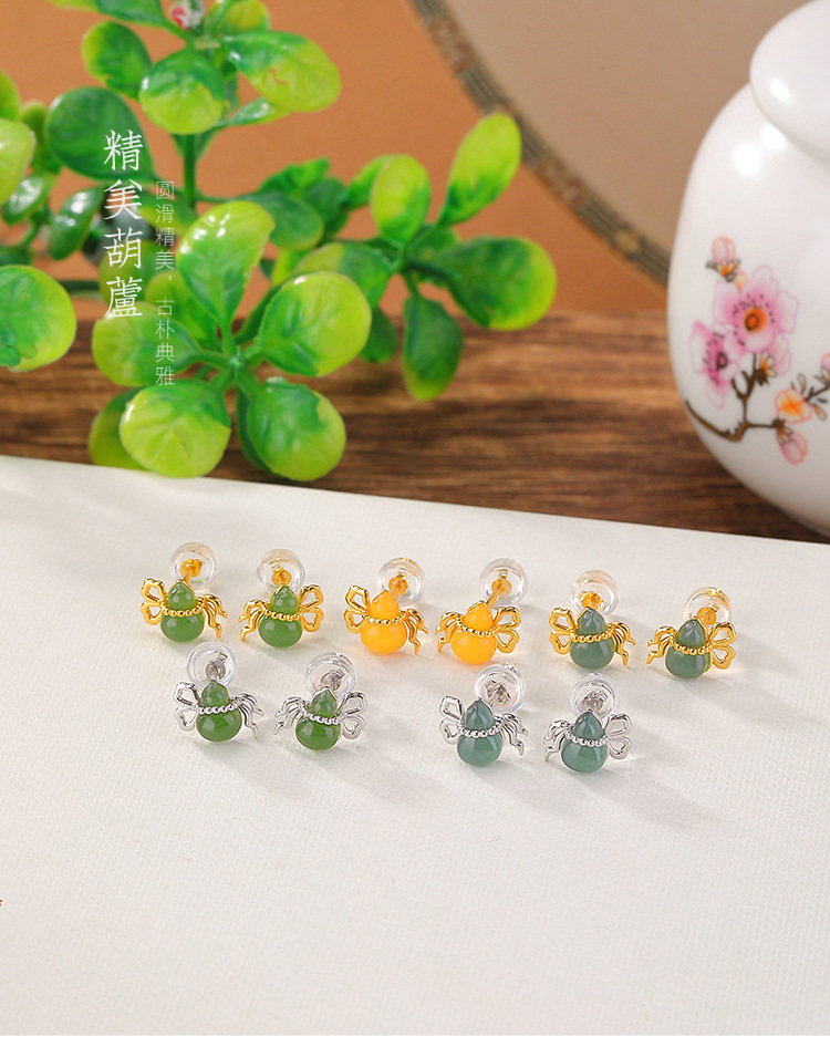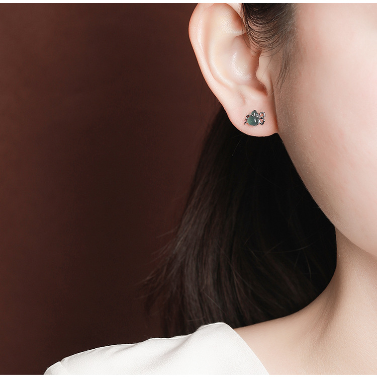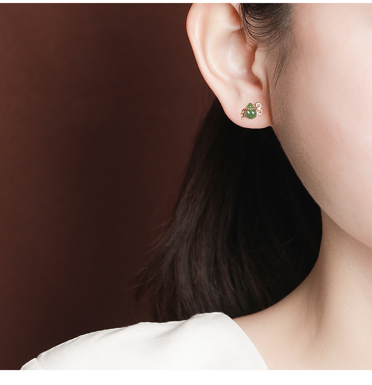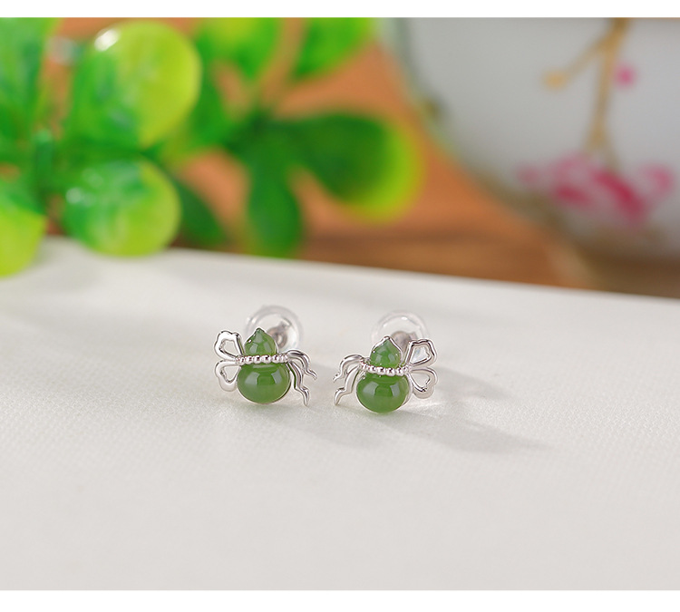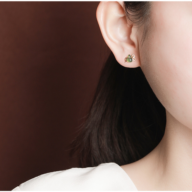 S925纯银镀金蓝水翡翠和田玉碧玉,蜜蜡蝴蝶结葫芦小巧银耳钉CW-ED03875