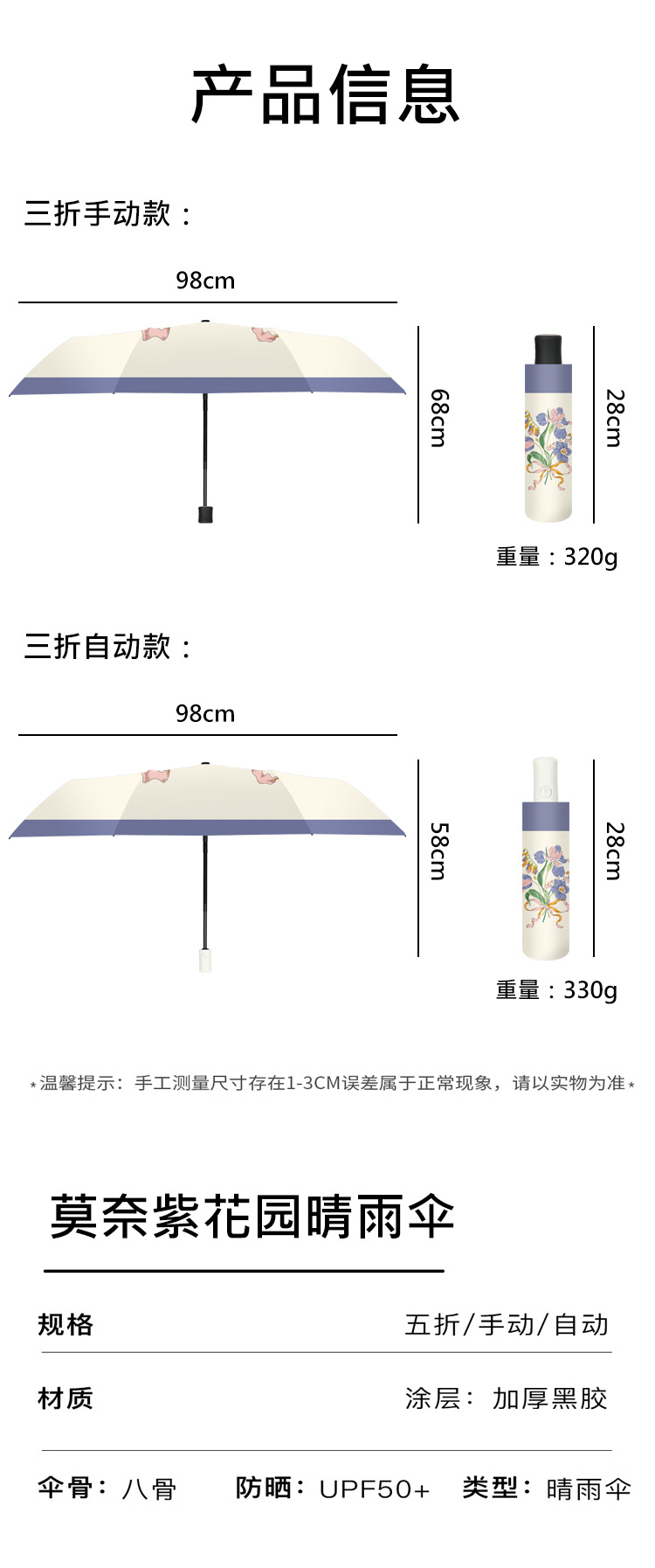 「数款可选!全自动雨伞」下雨防晒太阳伞遮阳伞折叠伞小清新居家日用黑胶晴雨两用伞