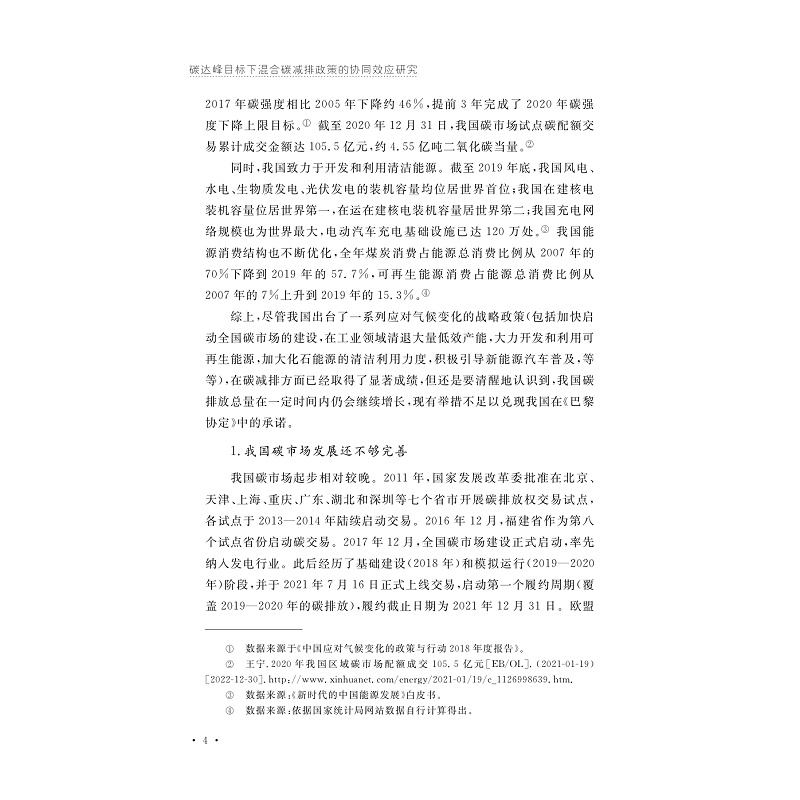 书名:碳达峰目标下混合碳减排政策的协同效应研究