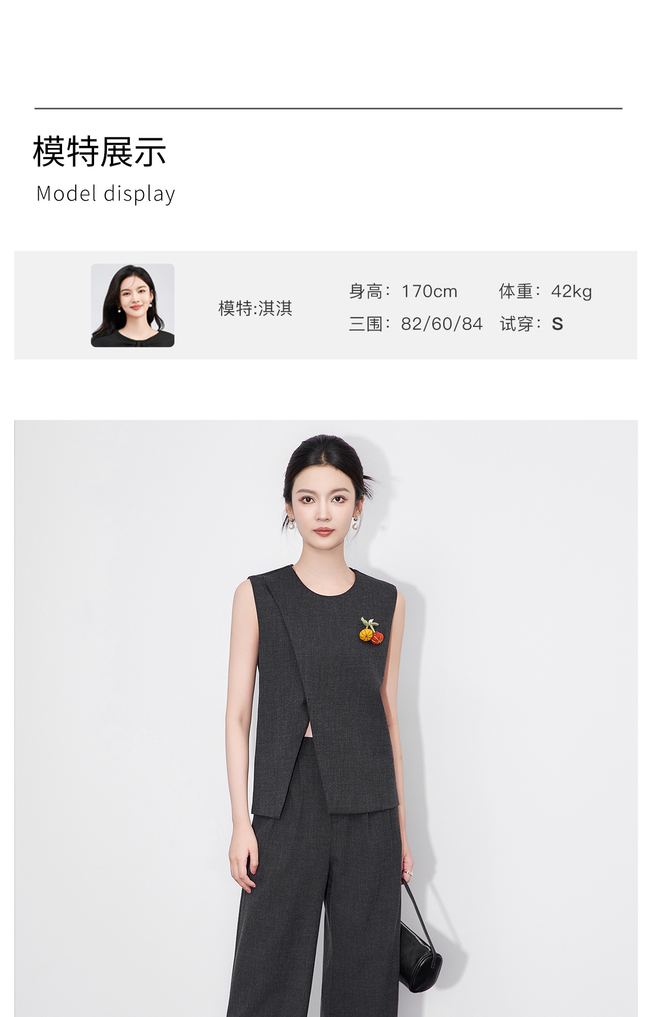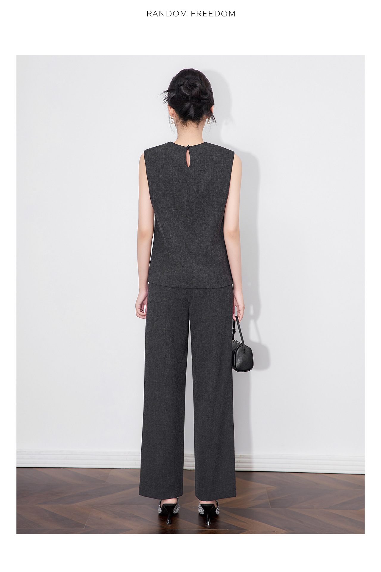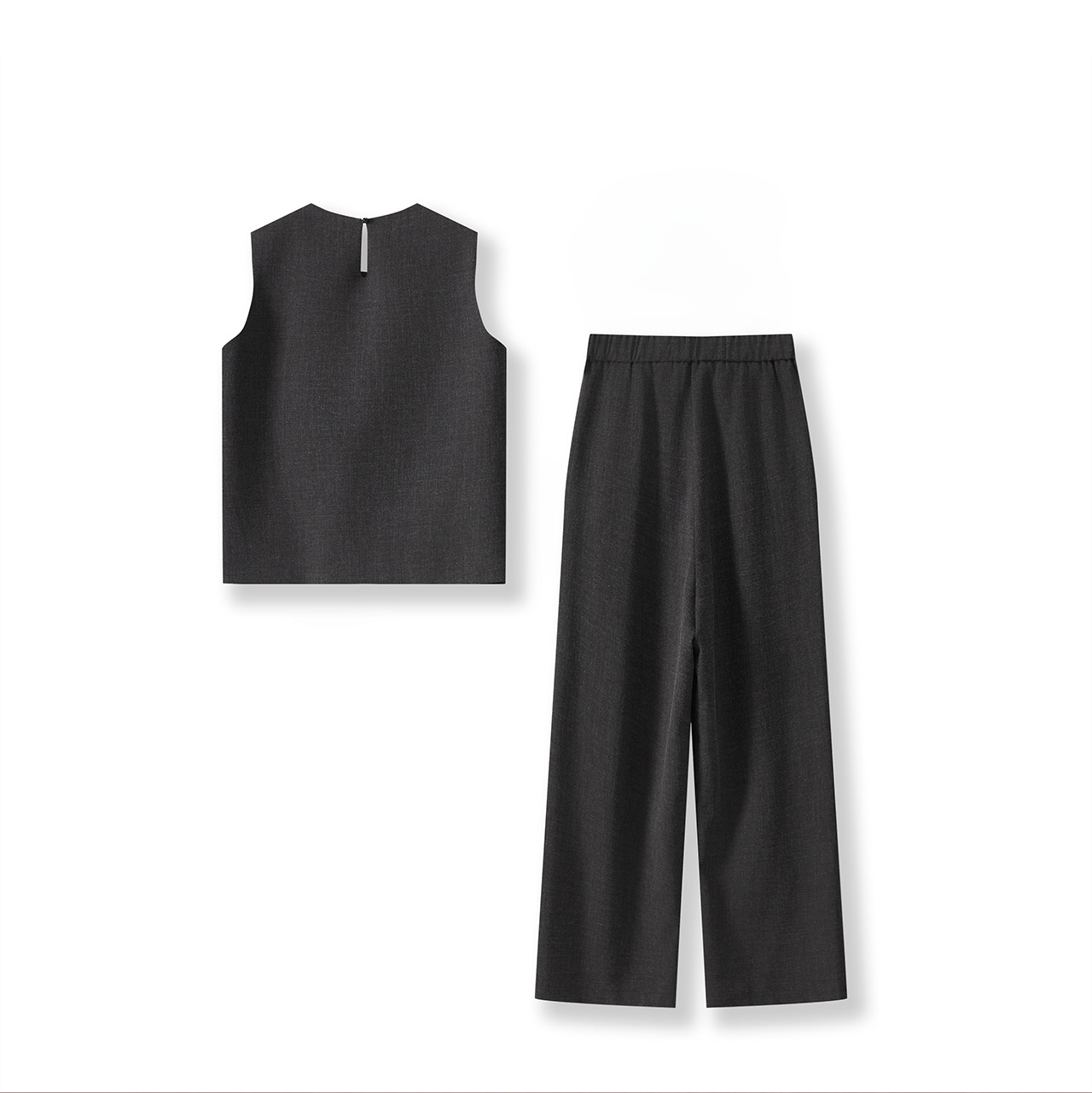 「高货wl」全新升级【铂金会员413/天猫559/差价146】(44047)洛诗琳早秋轻奢高级感无袖背心上衣高腰直筒长裤两件套