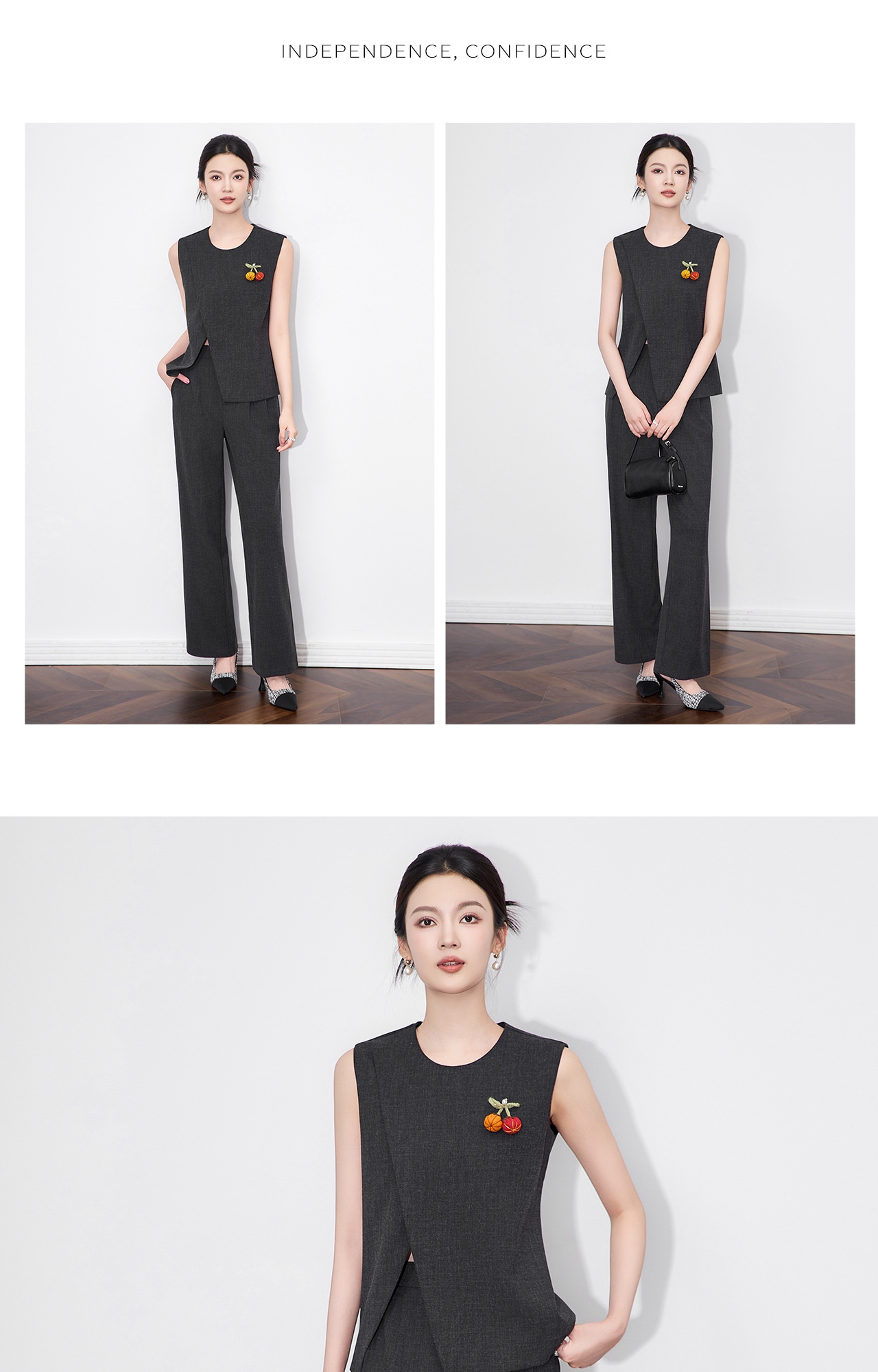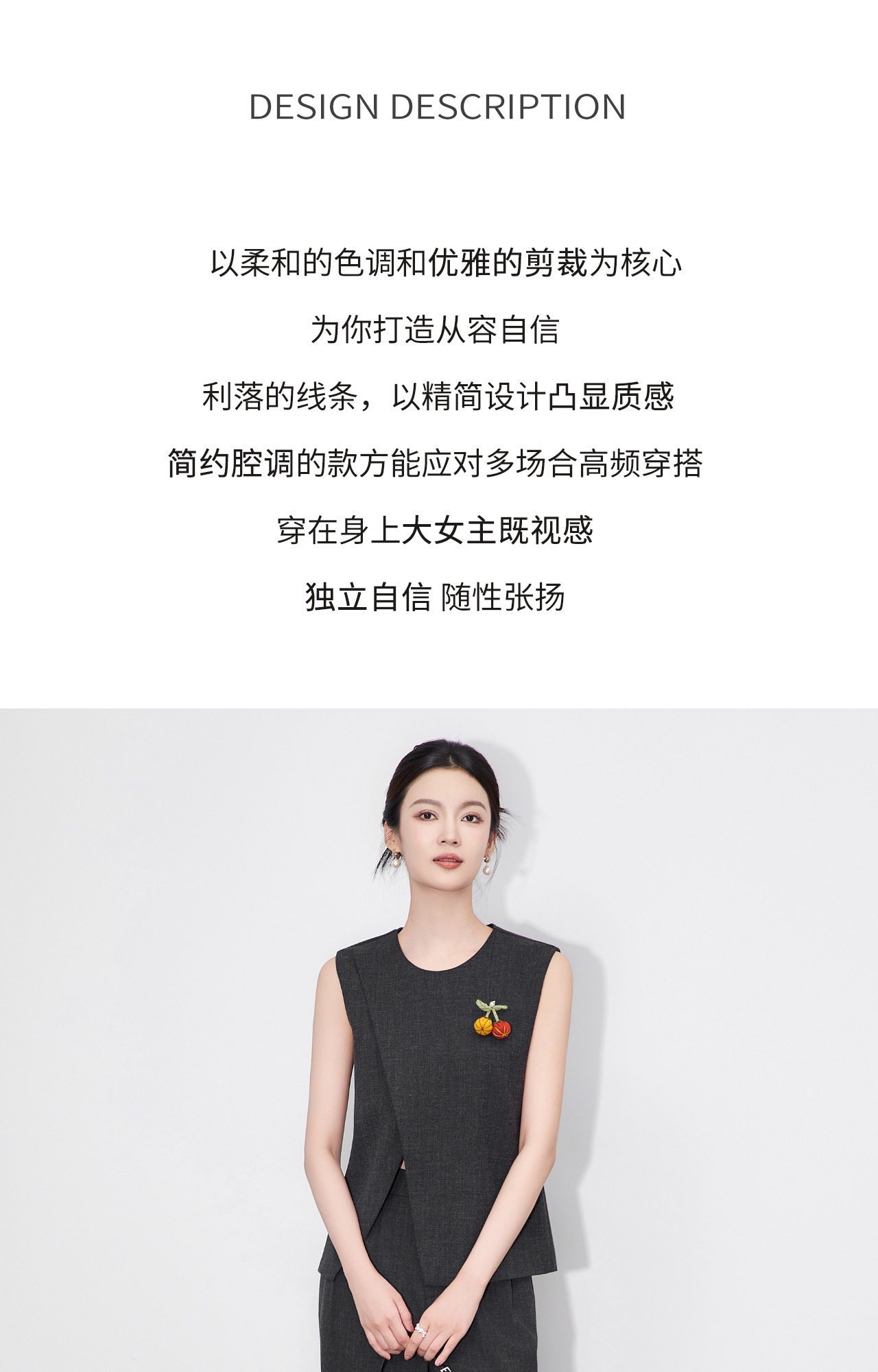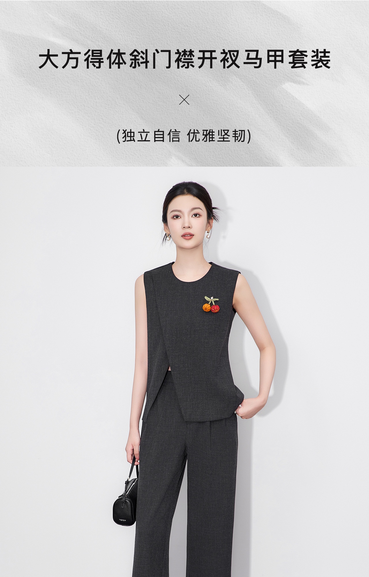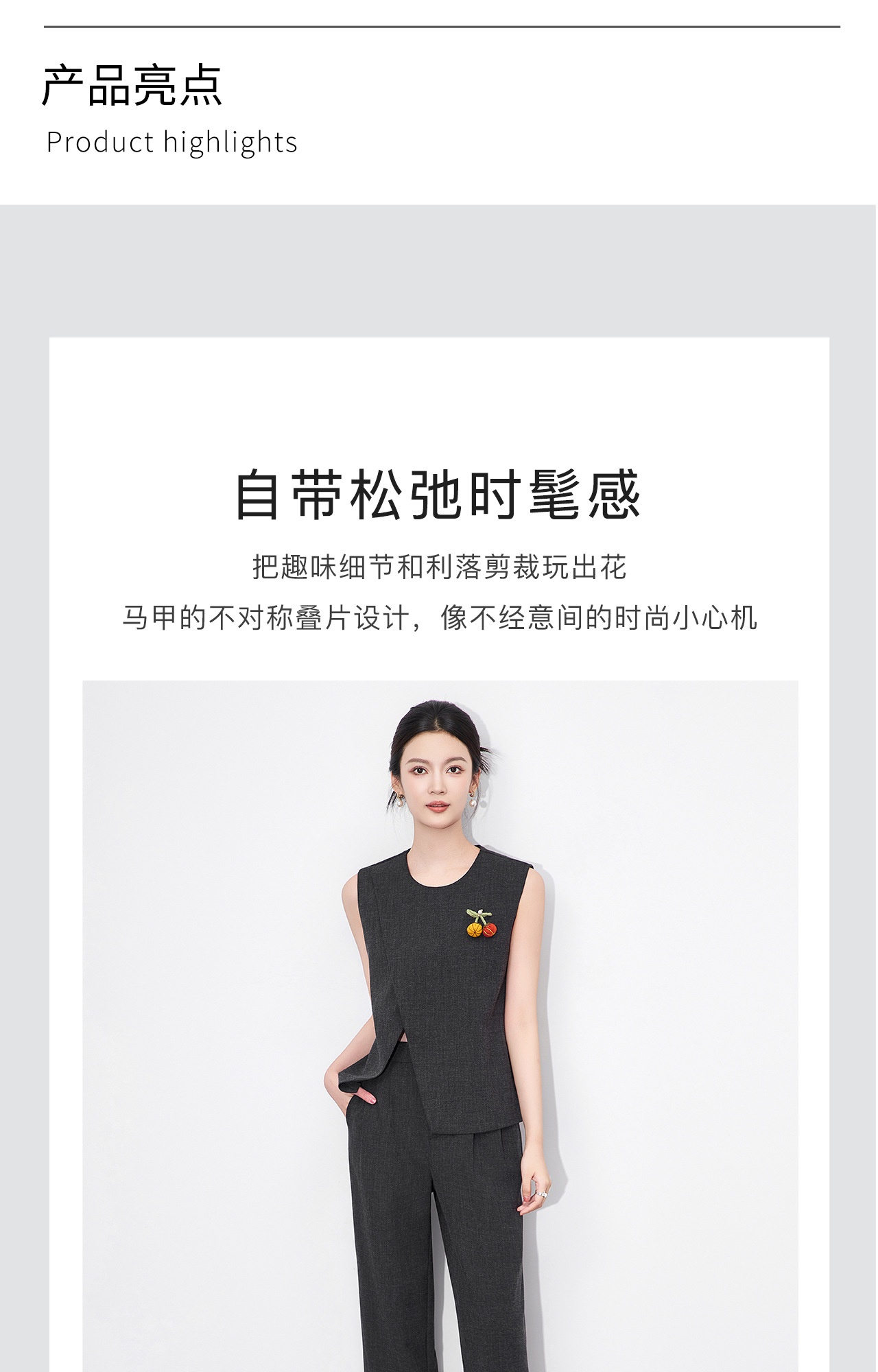 「高货wl」全新升级【铂金会员413/天猫559/差价146】(44047)洛诗琳早秋轻奢高级感无袖背心上衣高腰直筒长裤两件套
