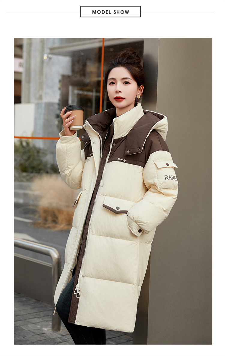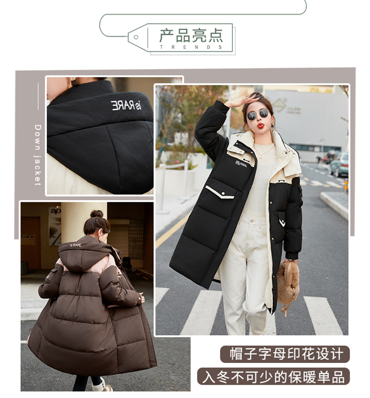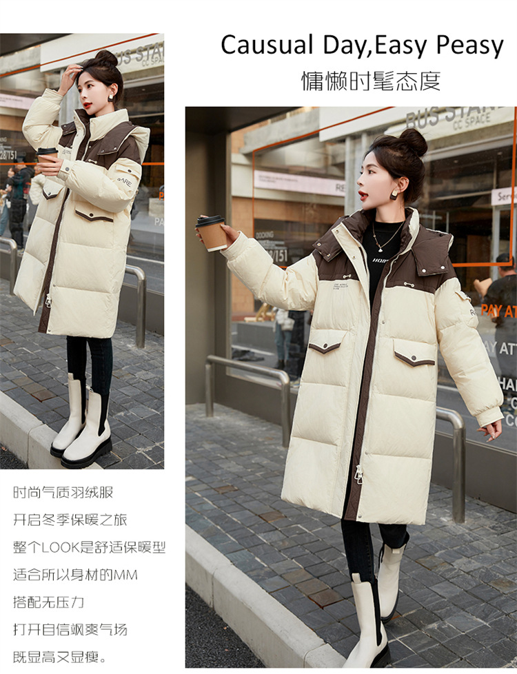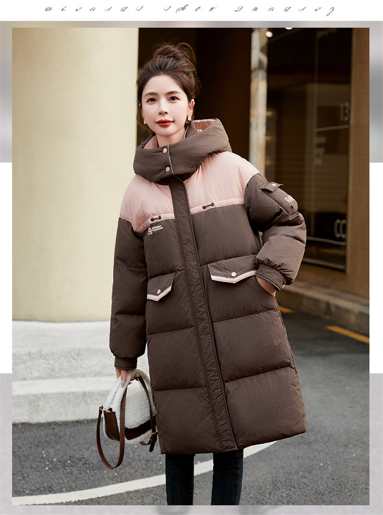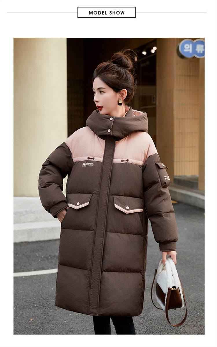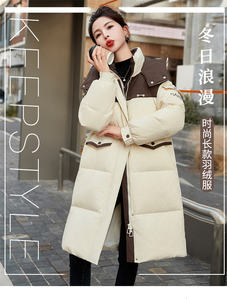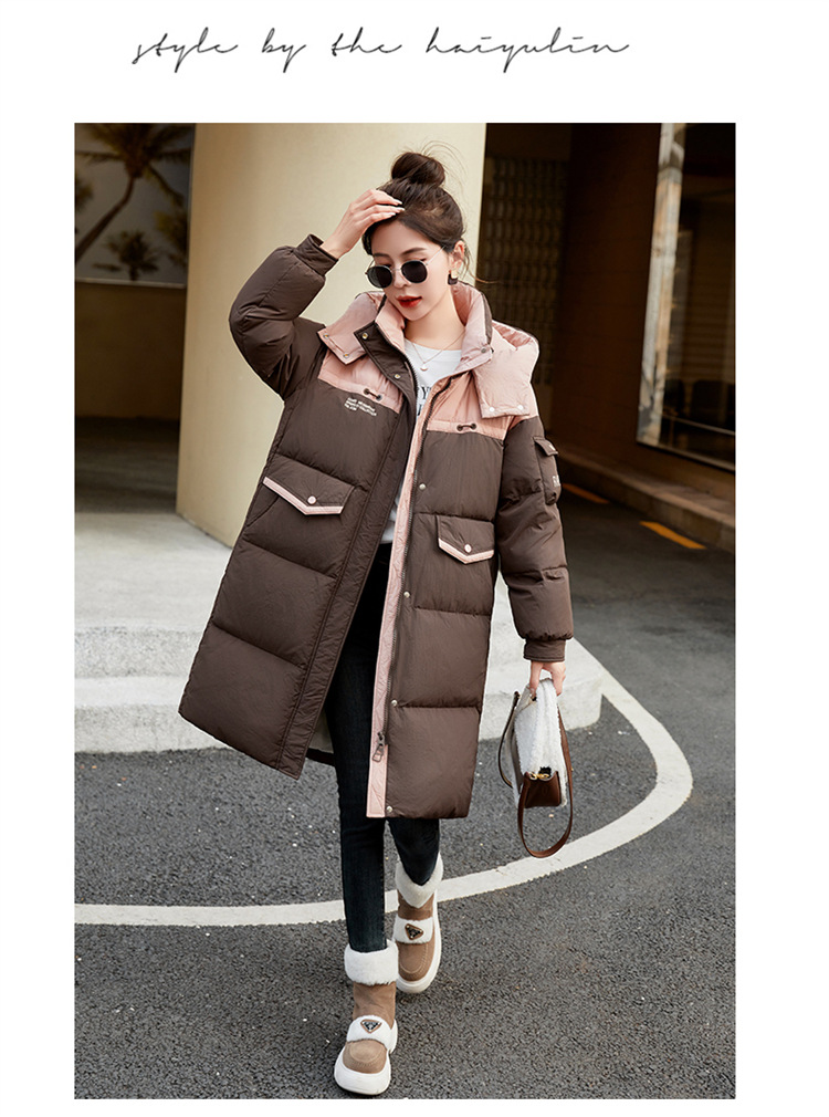 HR-WH8699连帽防风拼接撞色羽绒服女2023冬上新气质时尚宽松显瘦中长款外套