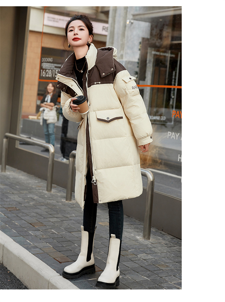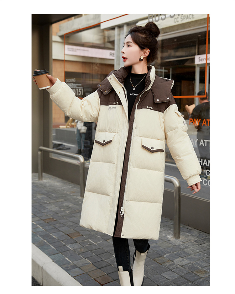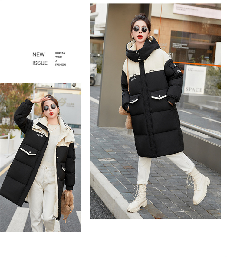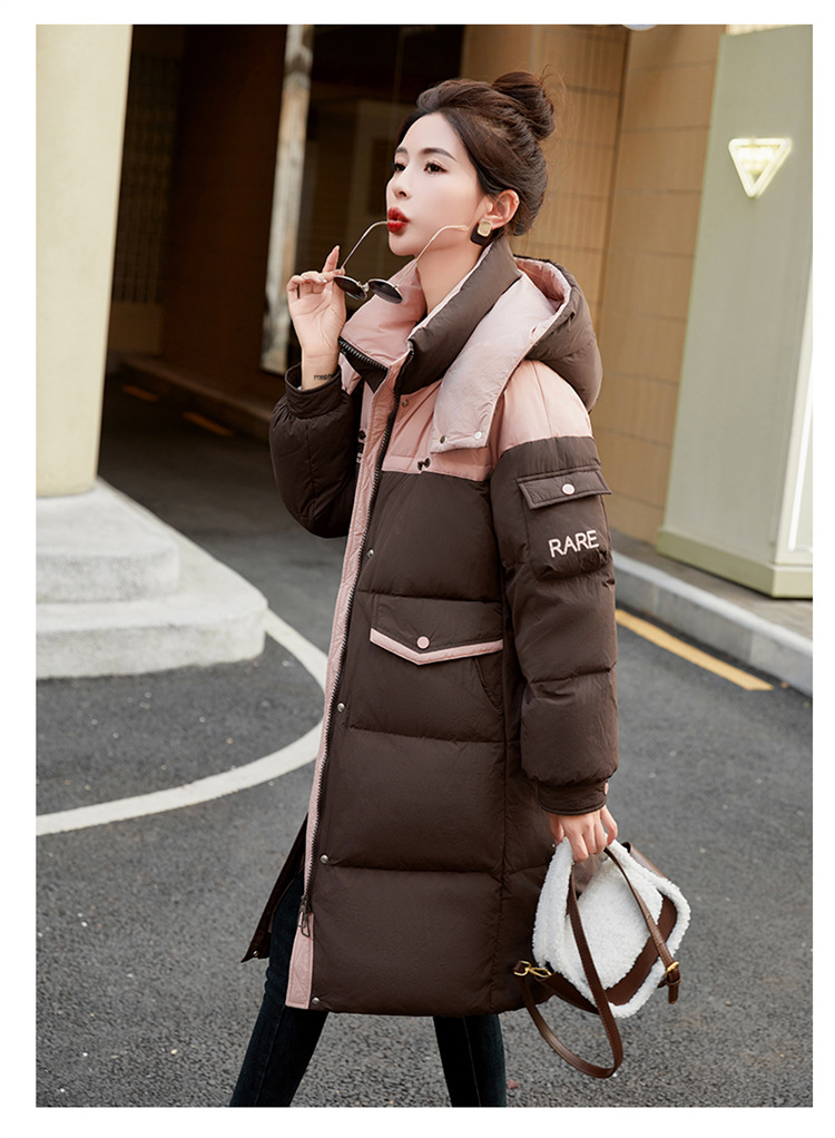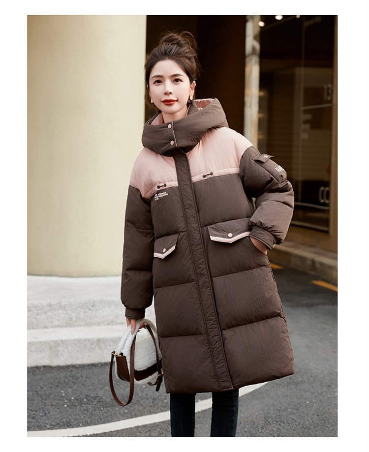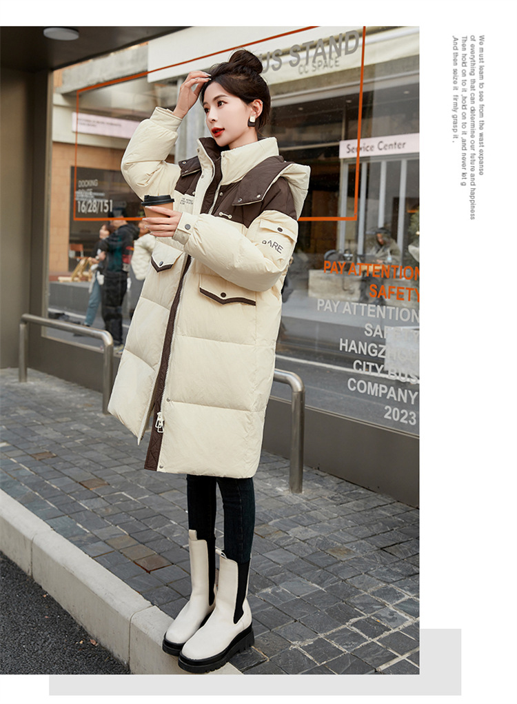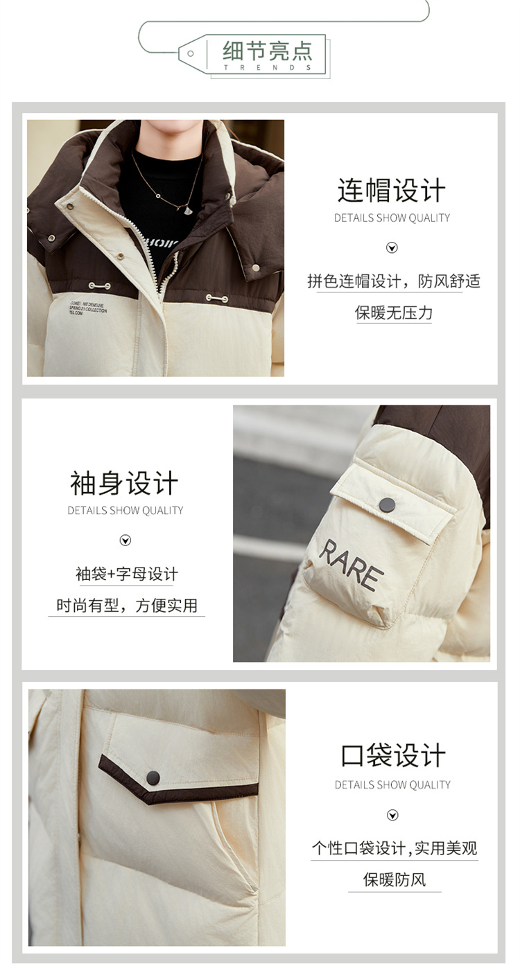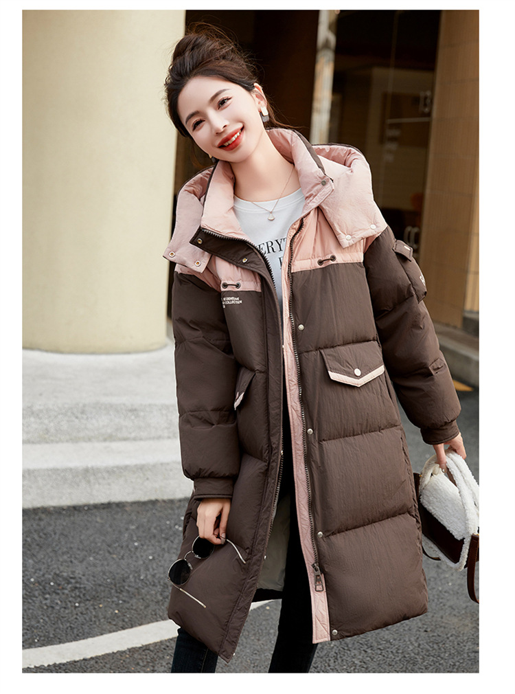 HR-WH8699连帽防风拼接撞色羽绒服女2023冬上新气质时尚宽松显瘦中长款外套