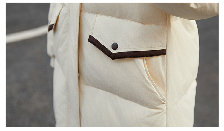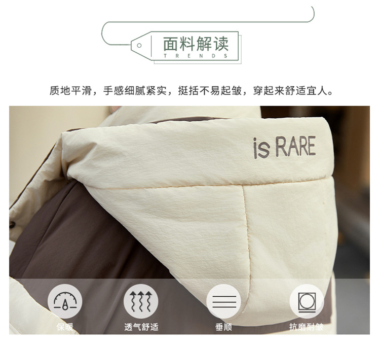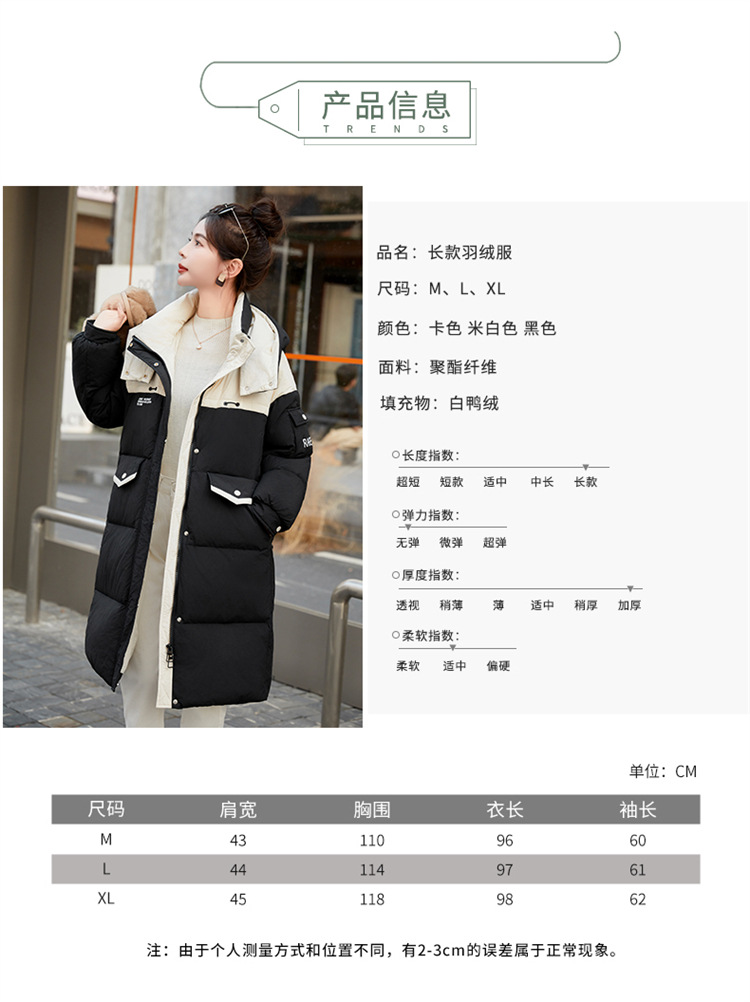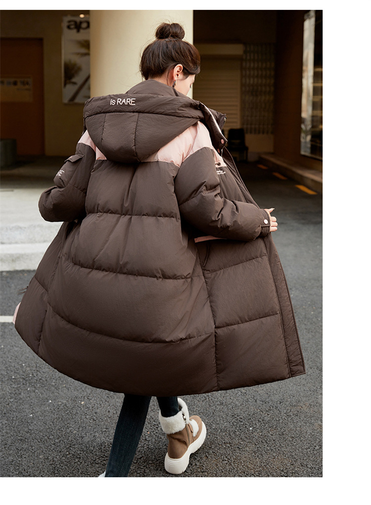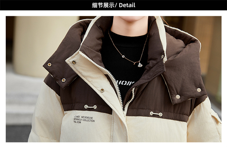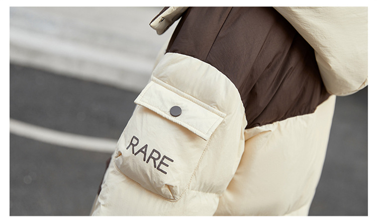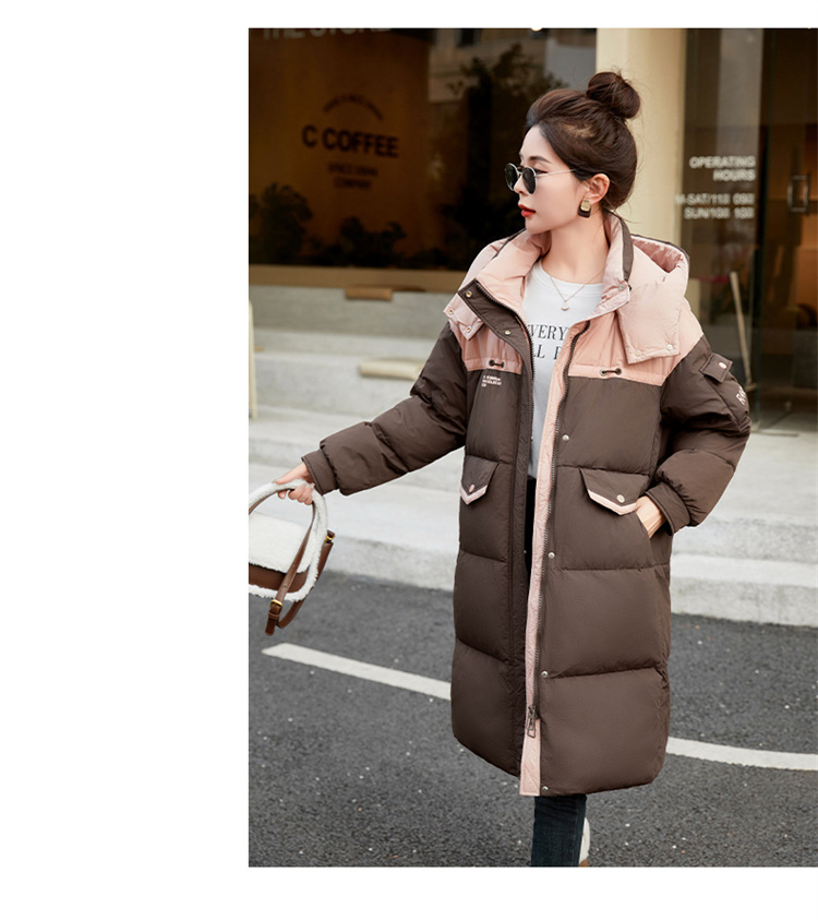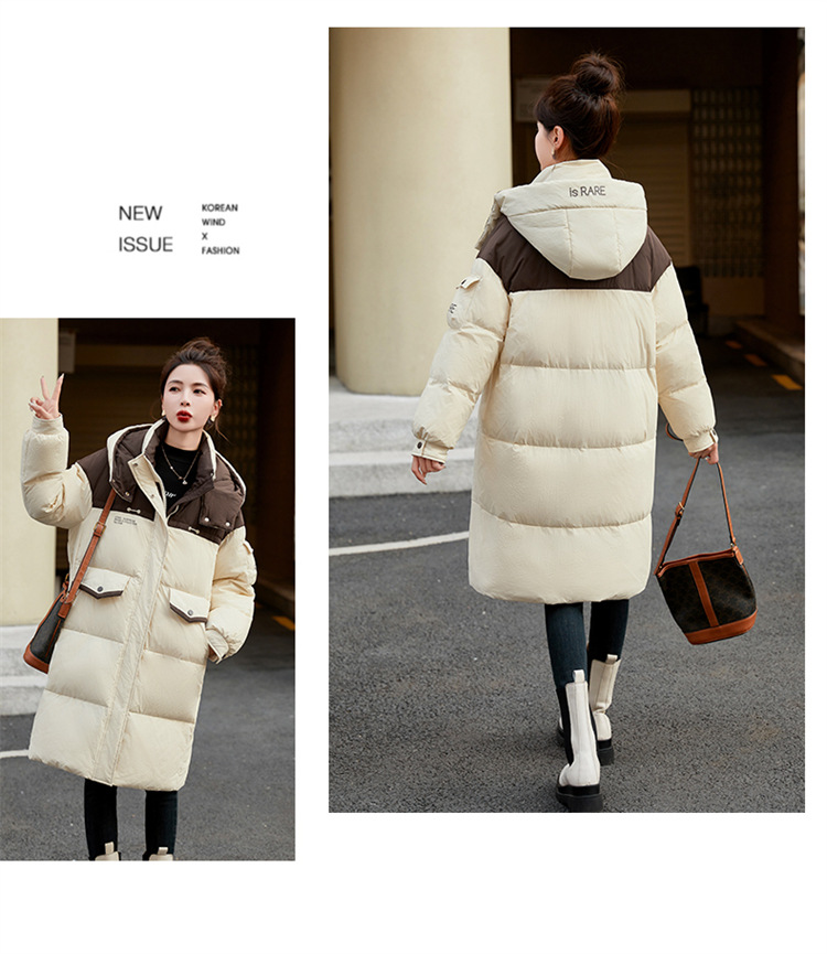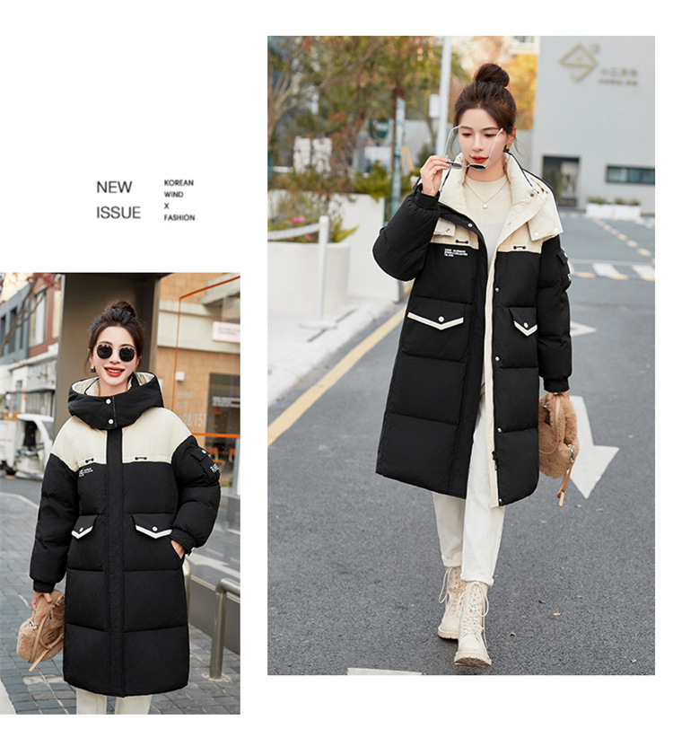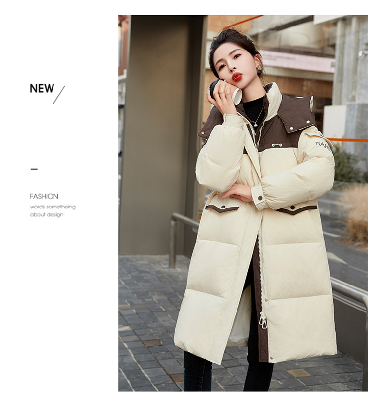 HR-WH8699连帽防风拼接撞色羽绒服女2023冬上新气质时尚宽松显瘦中长款外套