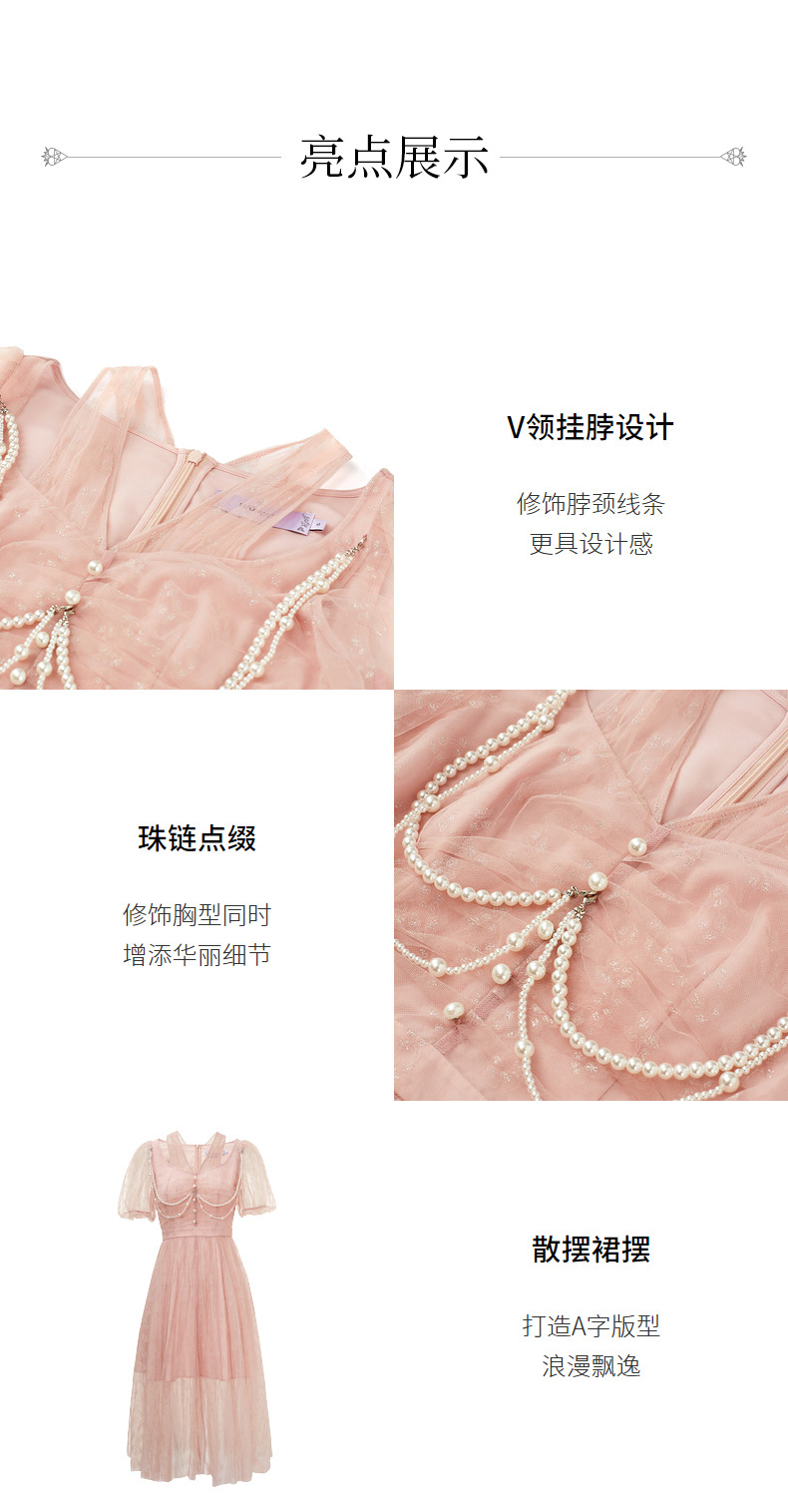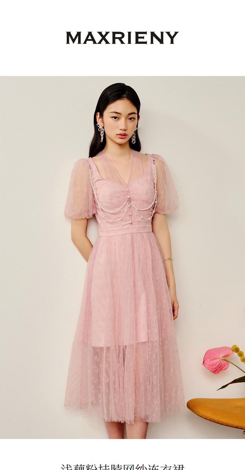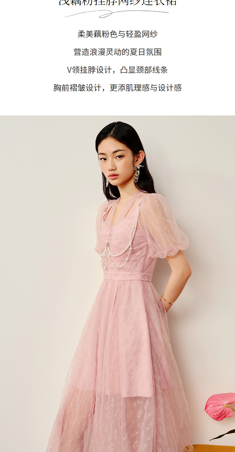MAXRIENY夏日浪漫浪漫感连衣裙挂脖网纱裙子(货号:MS88DR276)