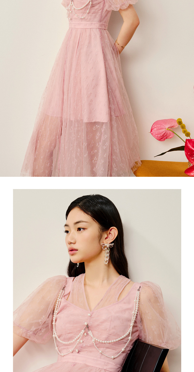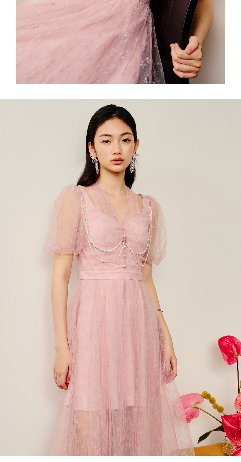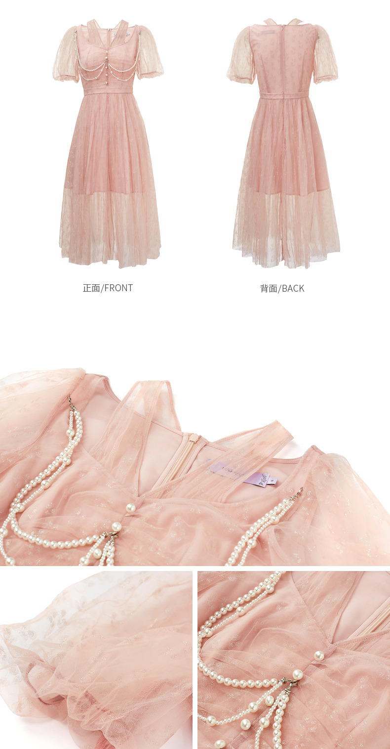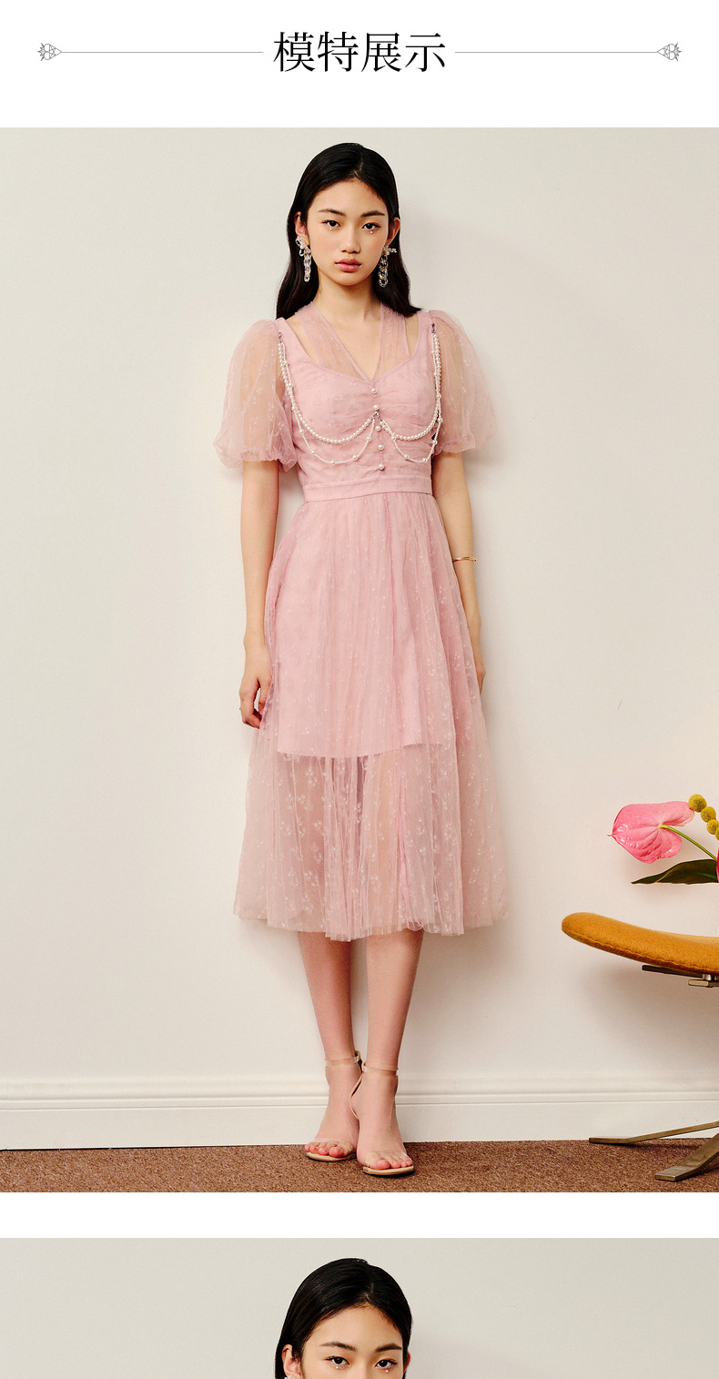 MAXRIENY夏日浪漫浪漫感连衣裙挂脖网纱裙子(货号:MS88DR276)