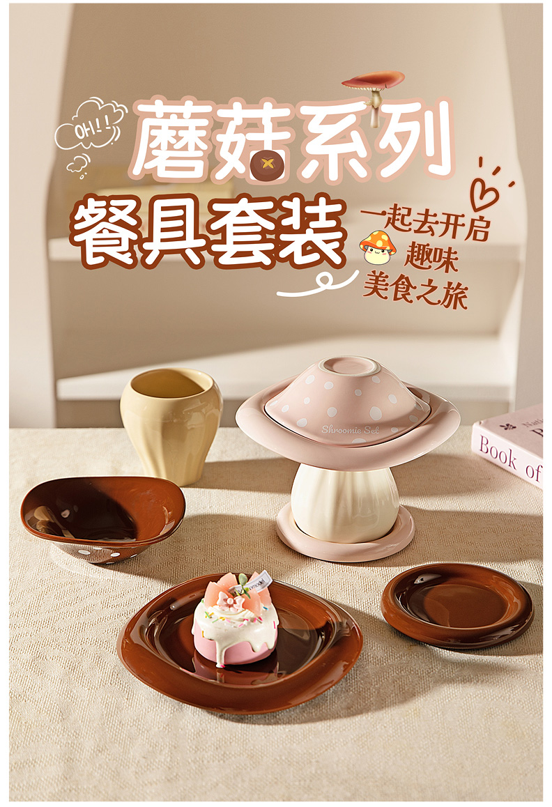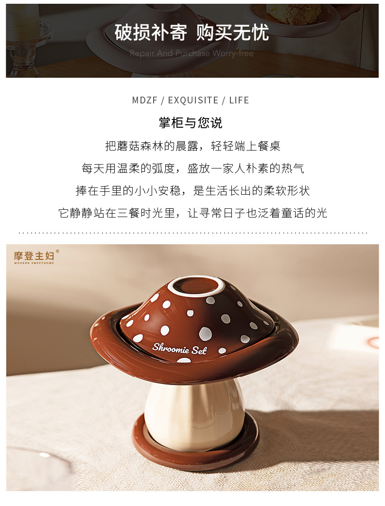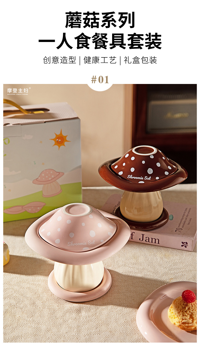 摩登主妇可爱蘑菇餐具套装一人食家用2025新款高颜值碗具生日礼物