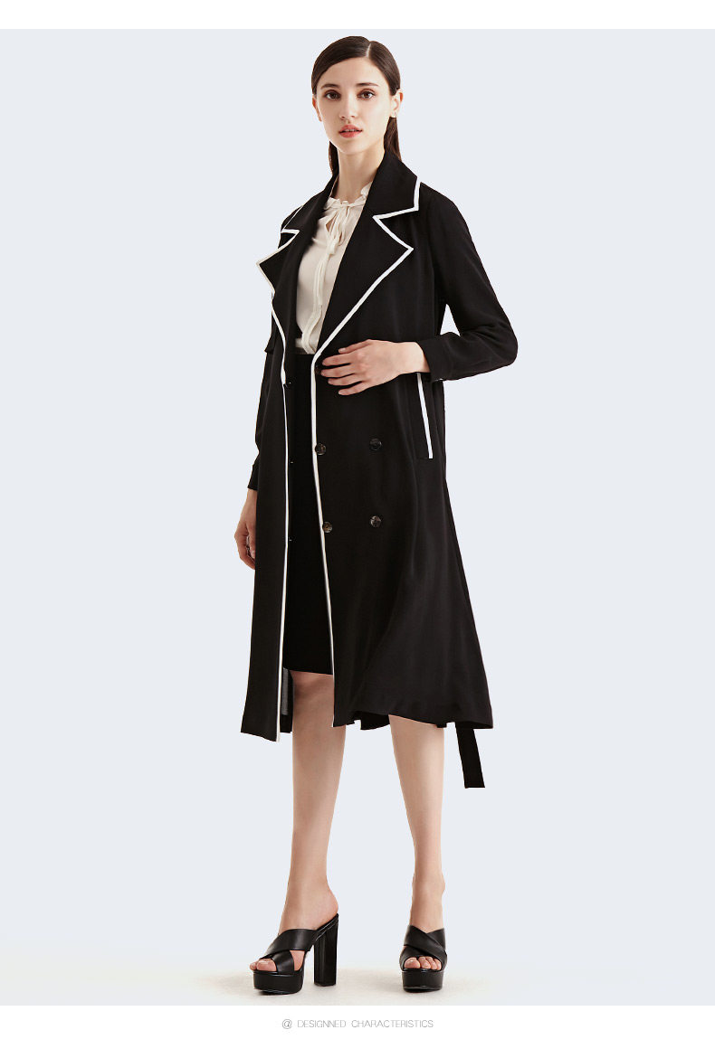EITIE爱特爱女装早秋英伦OL气质西装领长袖薄款风衣外套5504210