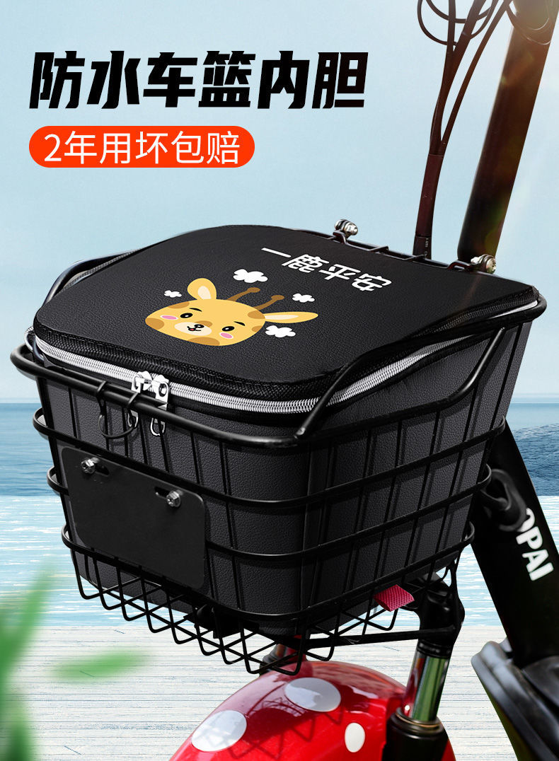 电动车筐内胆防水电瓶车自行车筐带盖车娄罩防尘防漏皮革车筐内胆