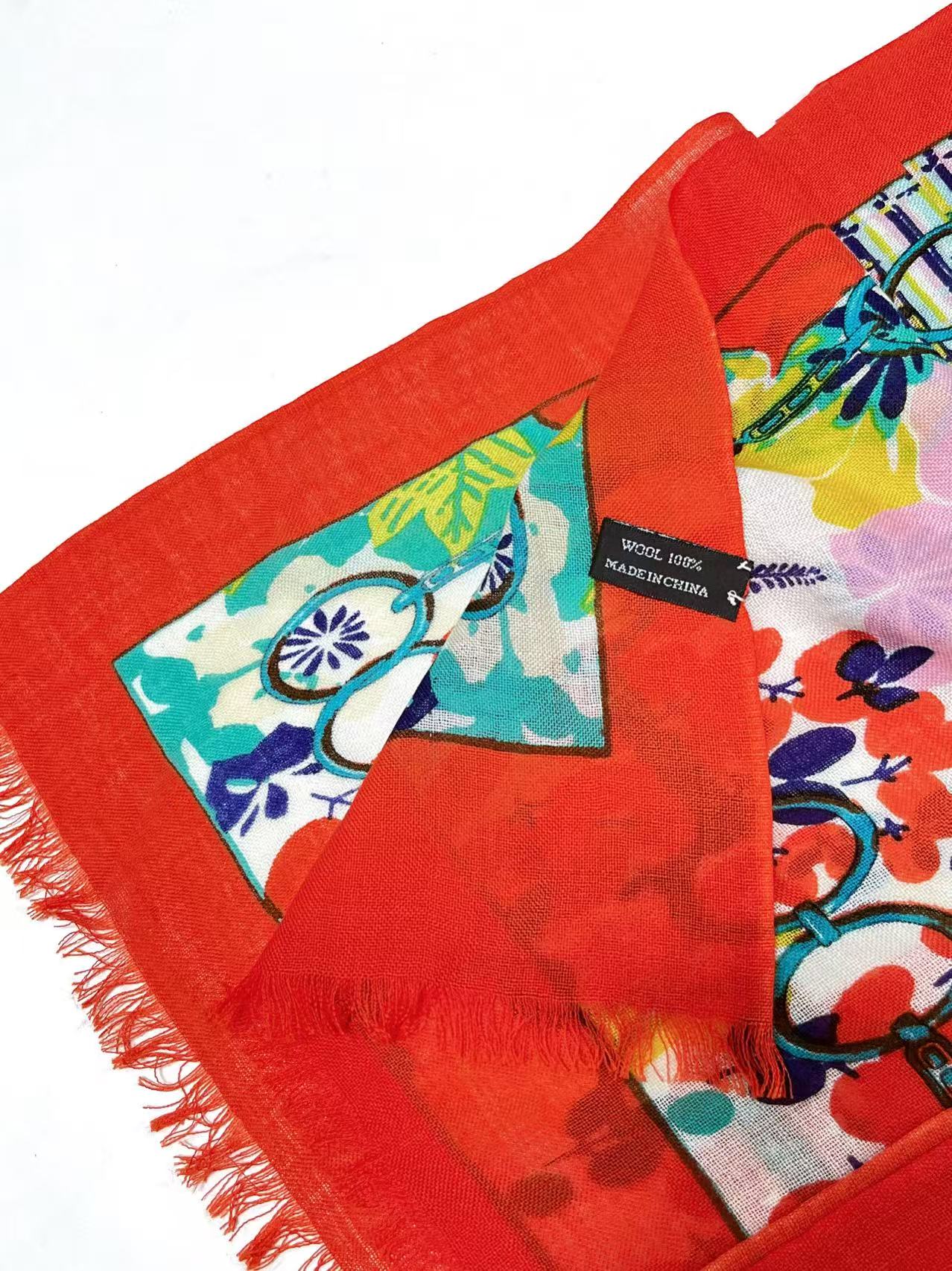 {特卖}(边有些染色)100%羊毛围巾花型三十一橙色花卉元素~喜出