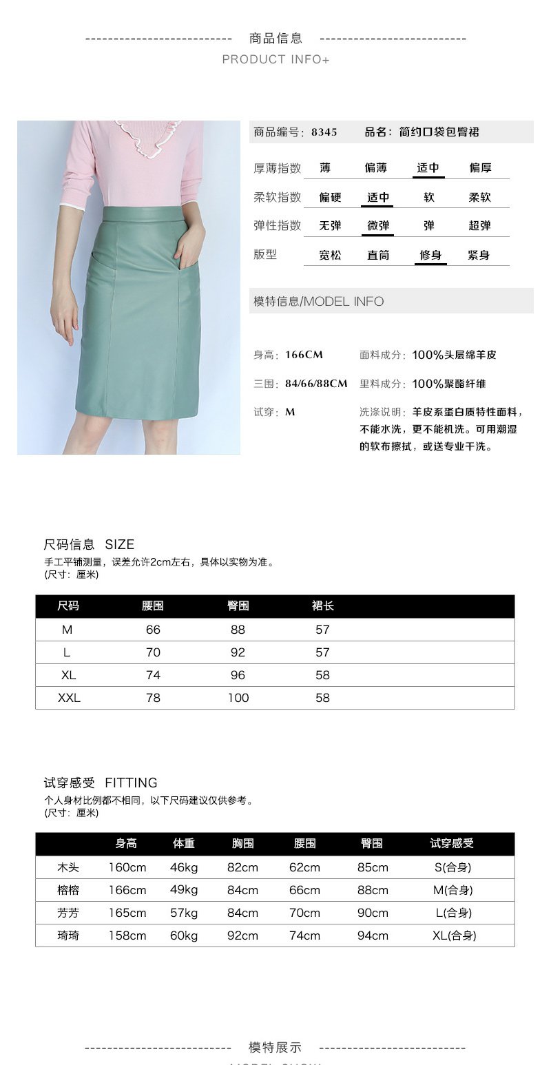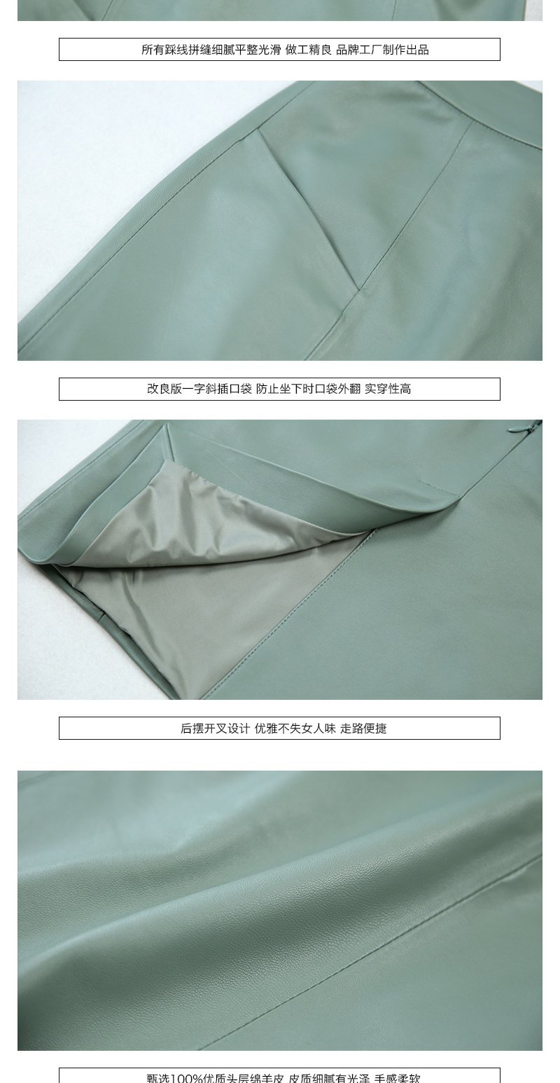丁摩 真皮羊皮皮裙包臀裙职业OL简约修身显瘦中裙半身裙8345WX186