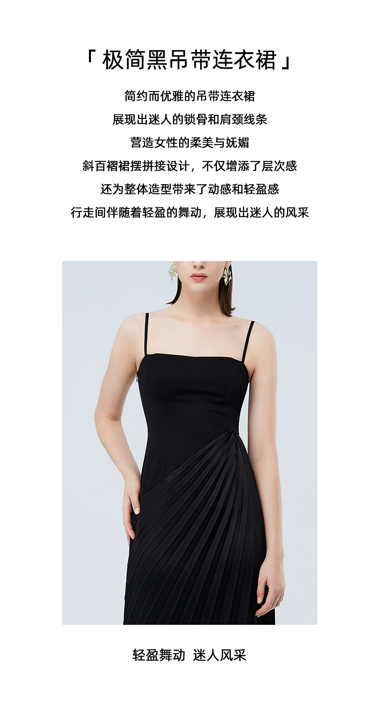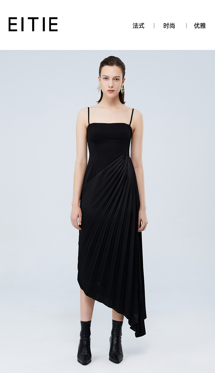 EITIE爱特爱秋季新款高级感不规则显瘦吊带连衣裙7507217