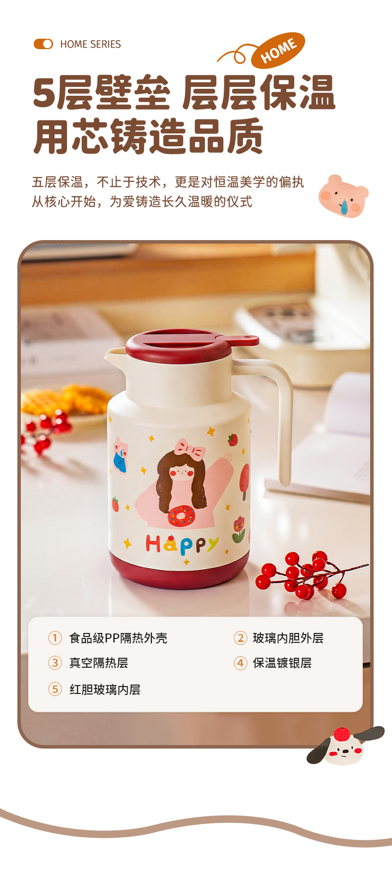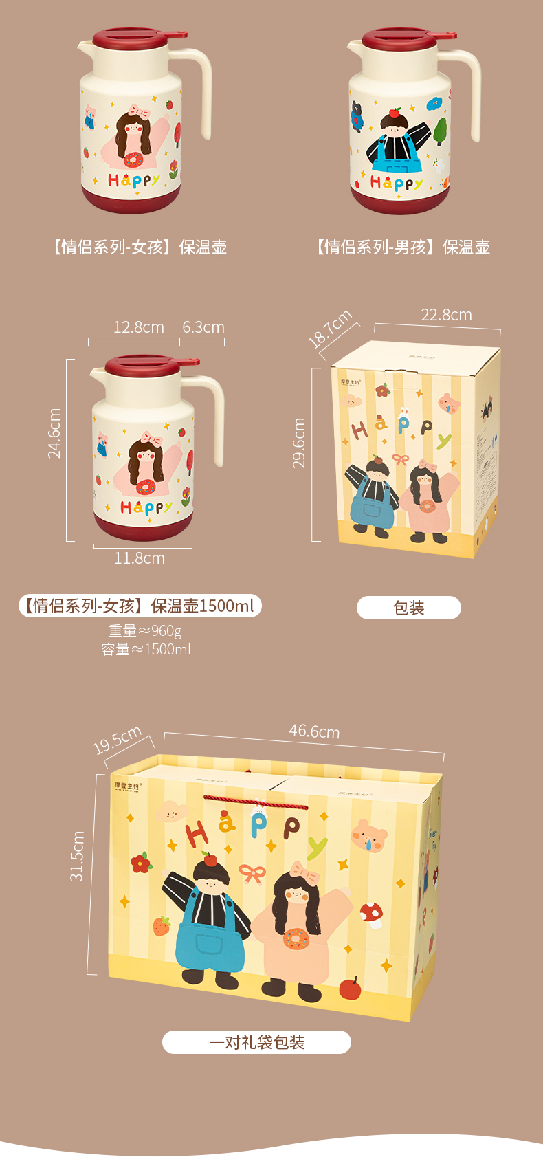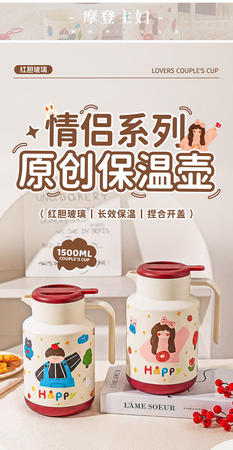 摩登主妇保温壶结婚一对热水壶陪嫁物品新婚礼物家用大容量焖茶壶