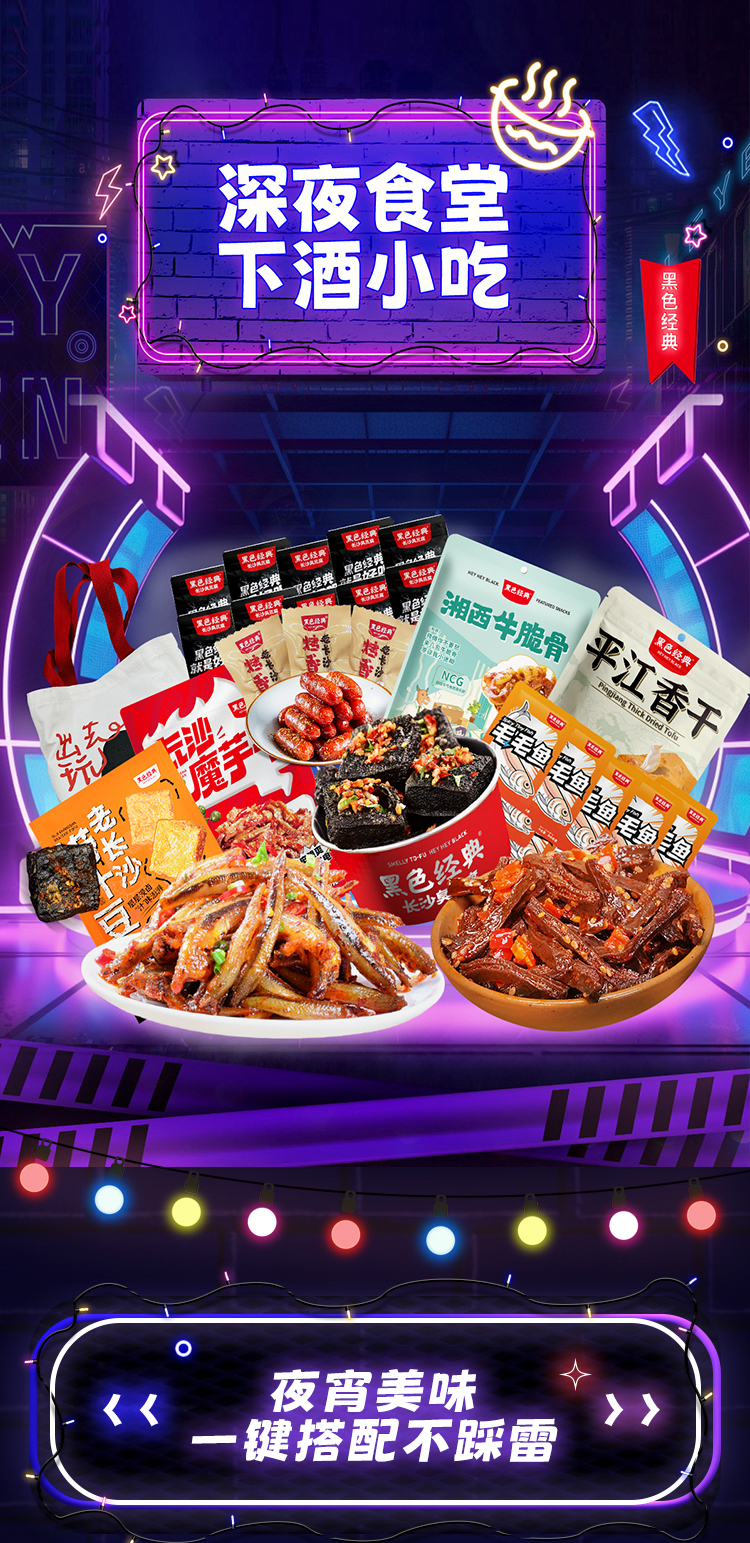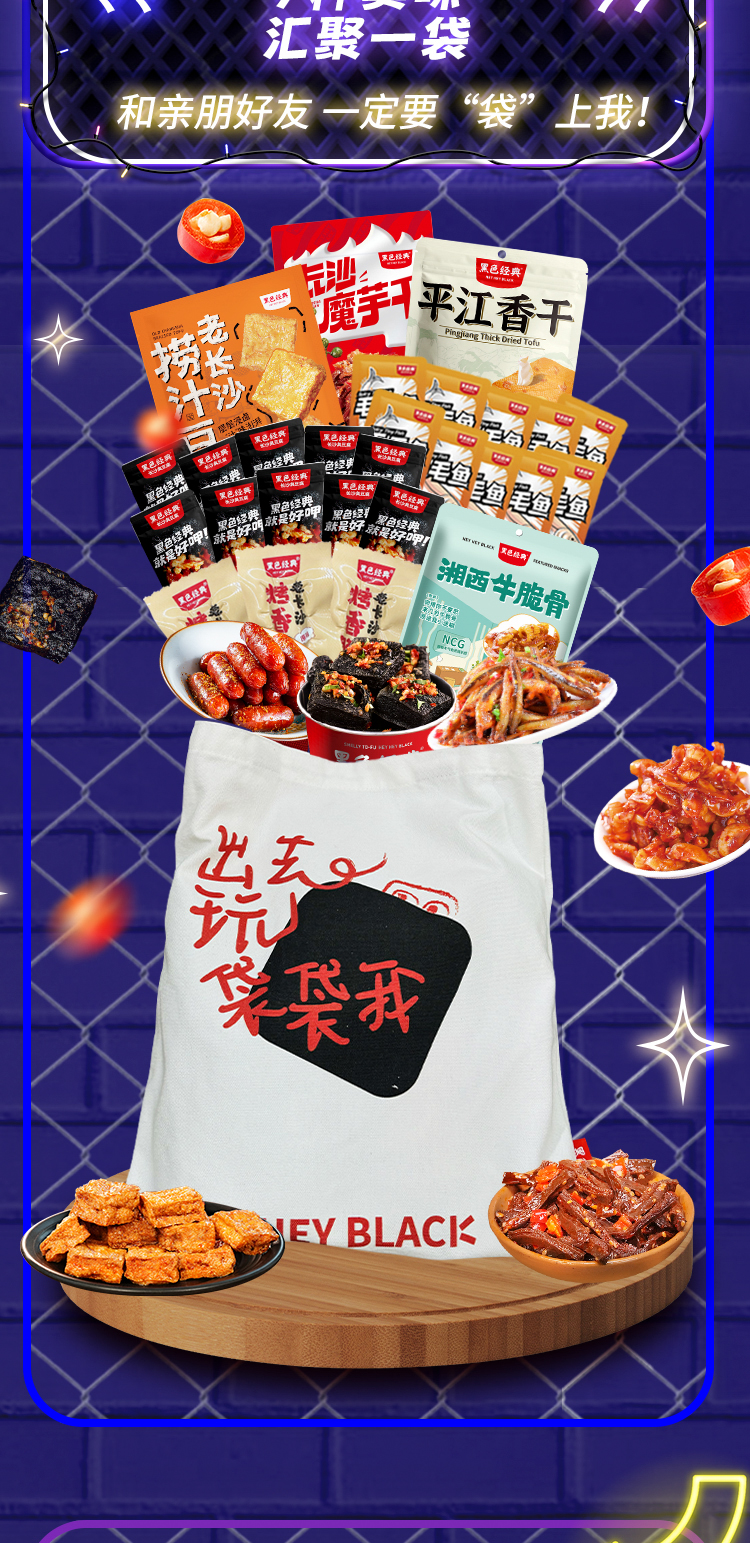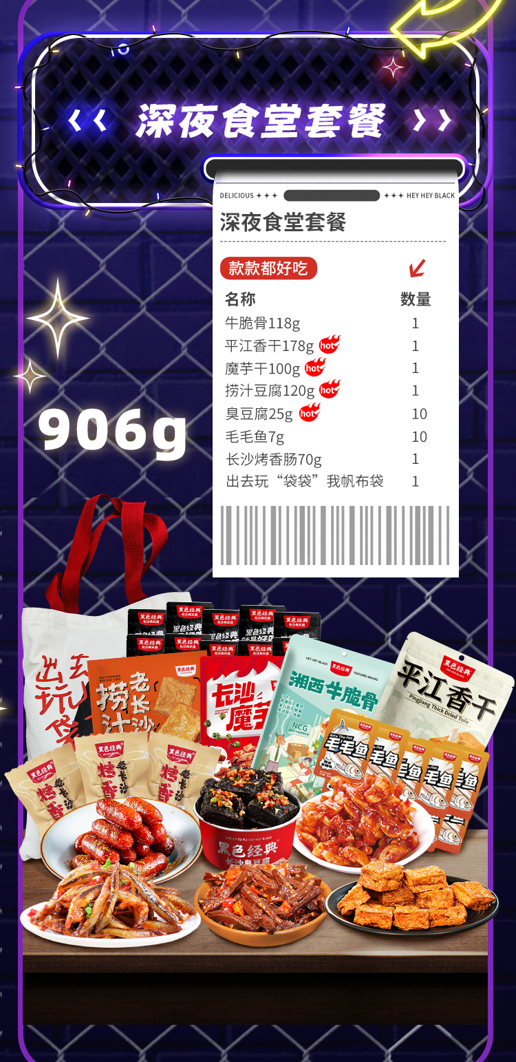 【夜宵美味】黑色经典深夜食堂下酒菜礼盒906g 豆腐鱼香肠魔芋脆骨香干 小酌精选下酒零食