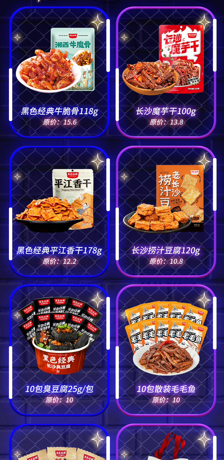 - 黑色经典湖南特产商城是长沙著名特色小吃“黑色经典长沙臭豆腐”旗下的线上官方商城。黑色经典面向全国,以长沙臭豆腐为核心,辐射覆盖湖南本土特色美食全系列产品,并对所有产品的生产工艺及包装进行了独特的改良。