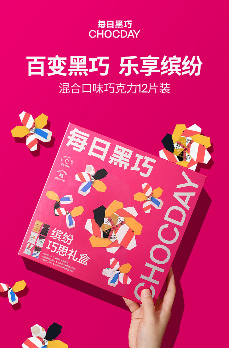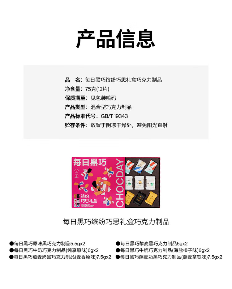 每日黑巧缤纷巧思礼盒75g/040614 混合口味黑巧巧克力12片享6种经典口味