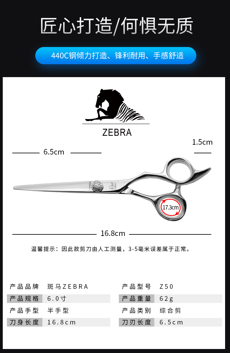 ZEBRA斑马 剪刀 Z50 锋利/直发/刘海/结构剪/线条剪/半手型/平剪/6.0寸
