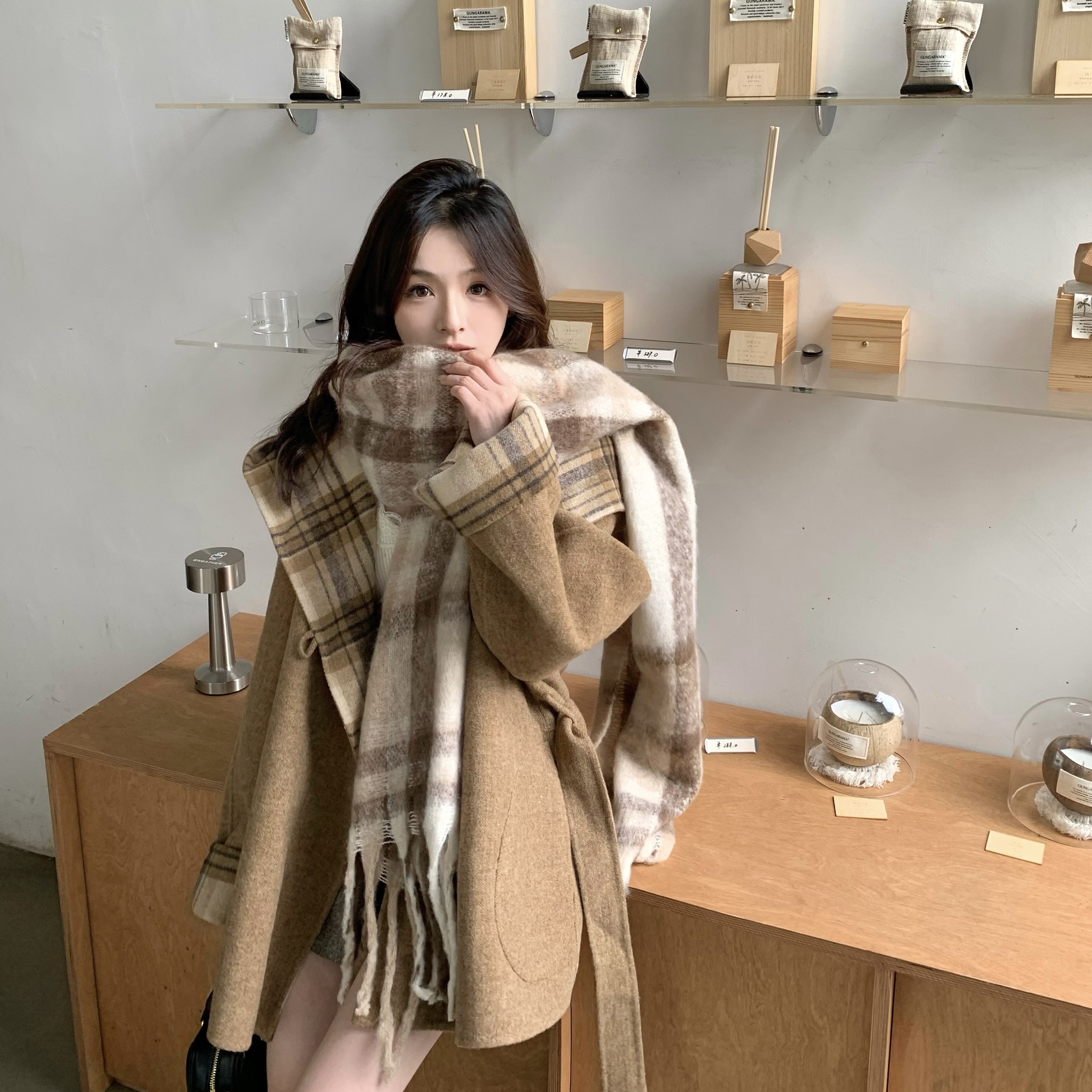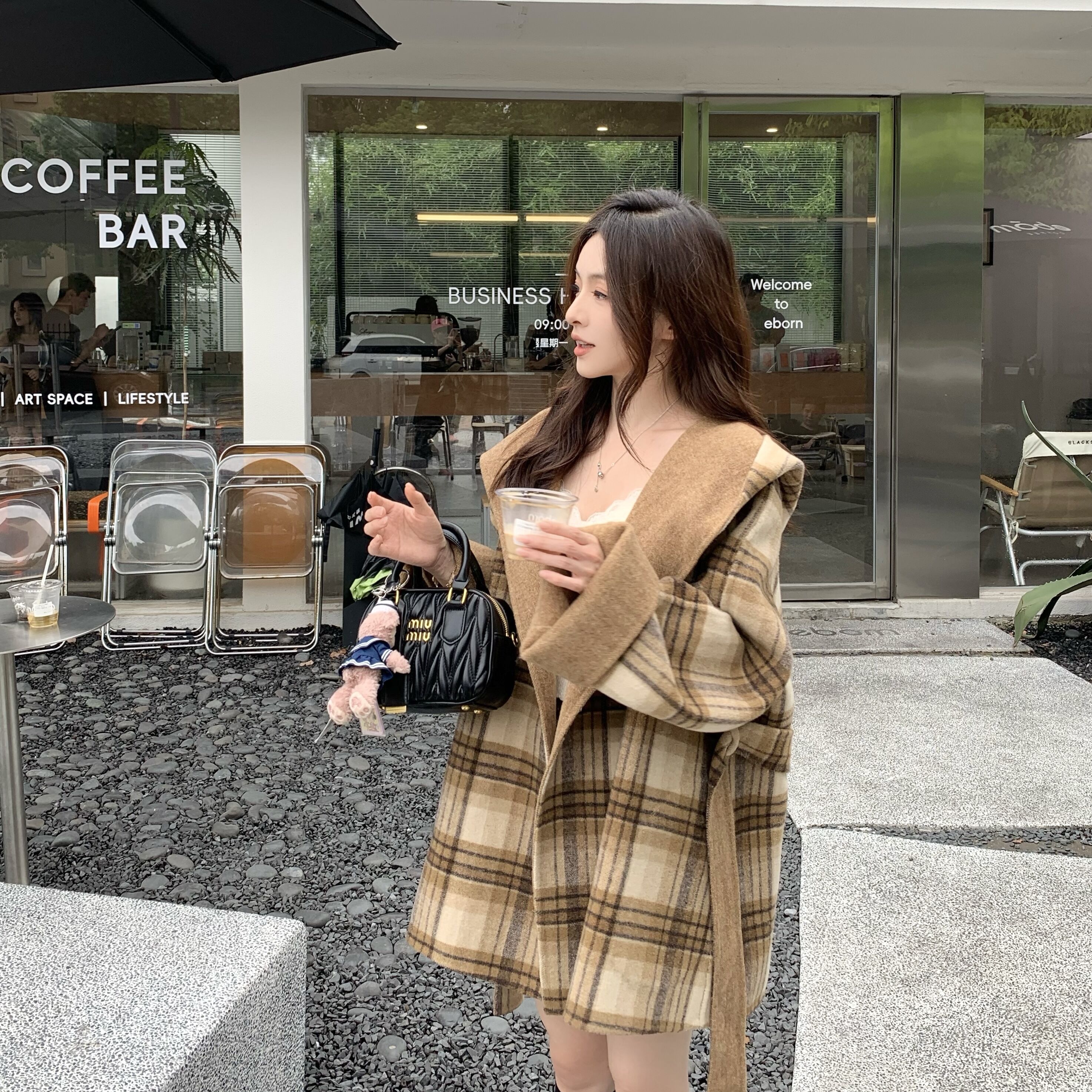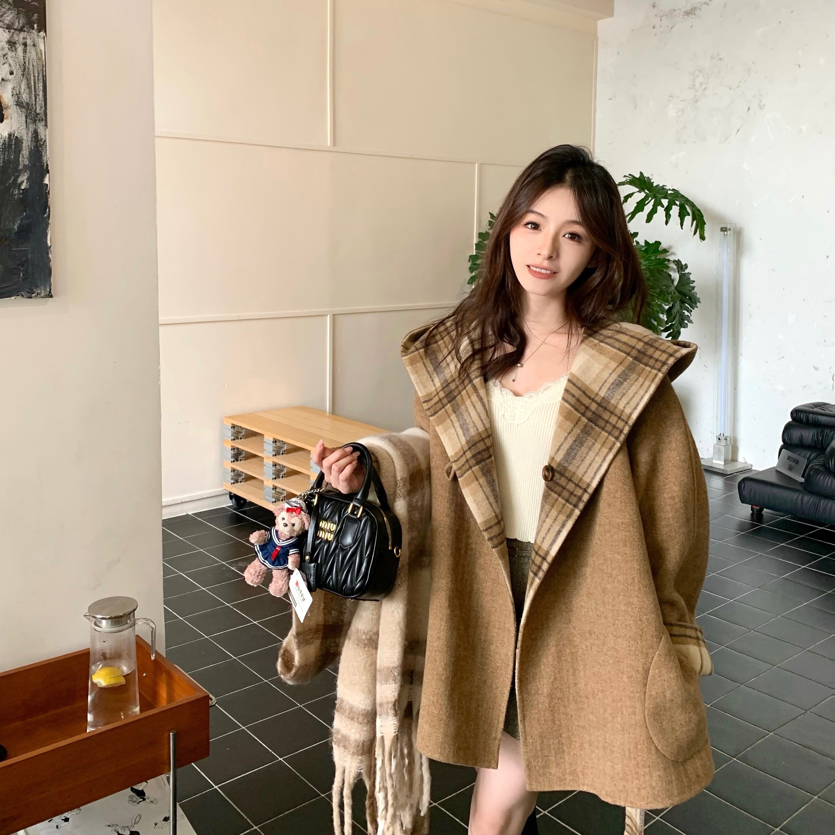 现货 都柏林城堡 秋冬复古调两面穿格纹双面呢短款大衣