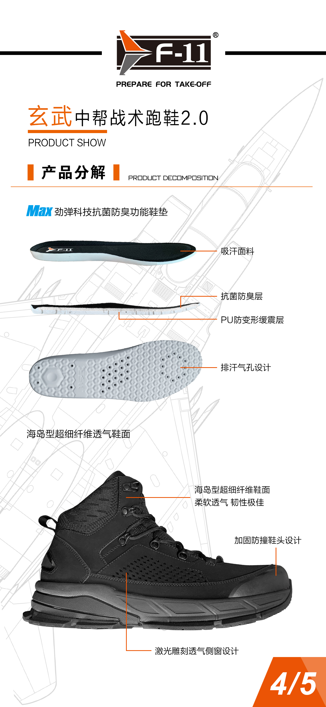 功能: 减震 防滑 耐磨 透气 吸汗 支撑 平衡 抗冲击 轻便 包裹性 回弹