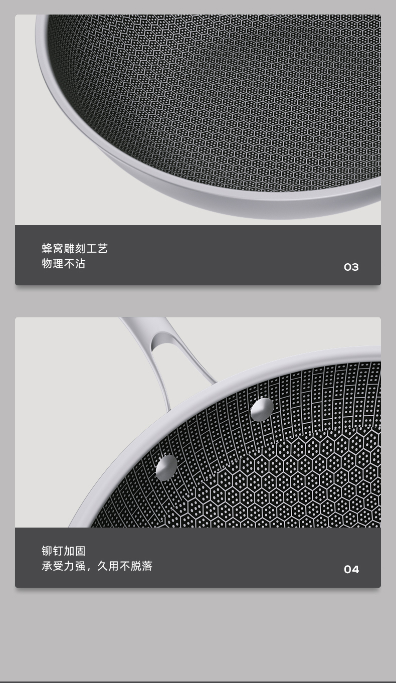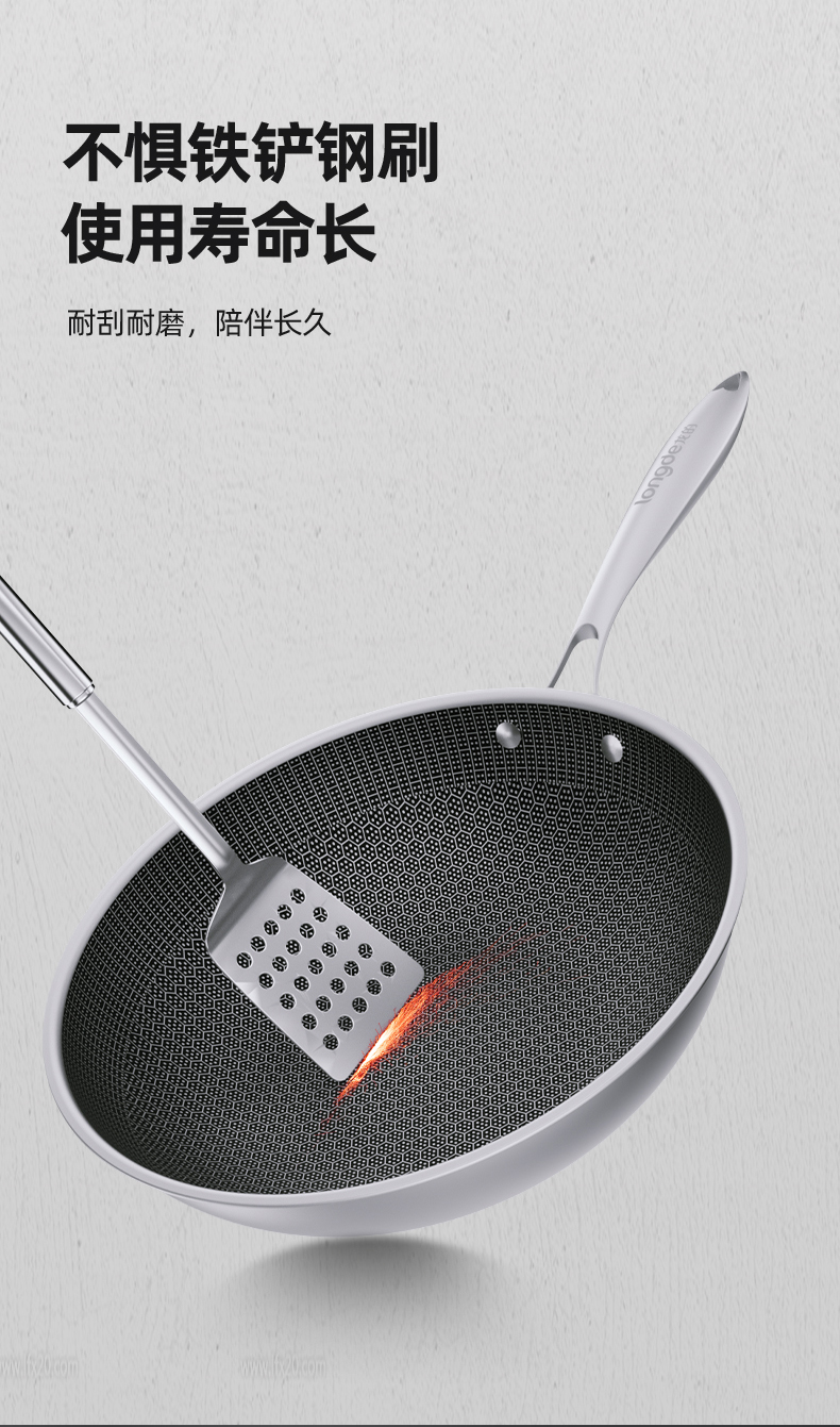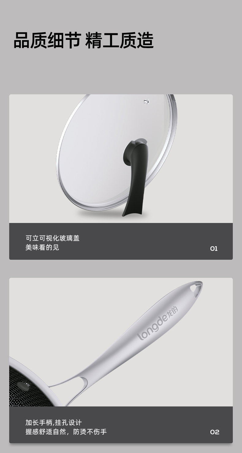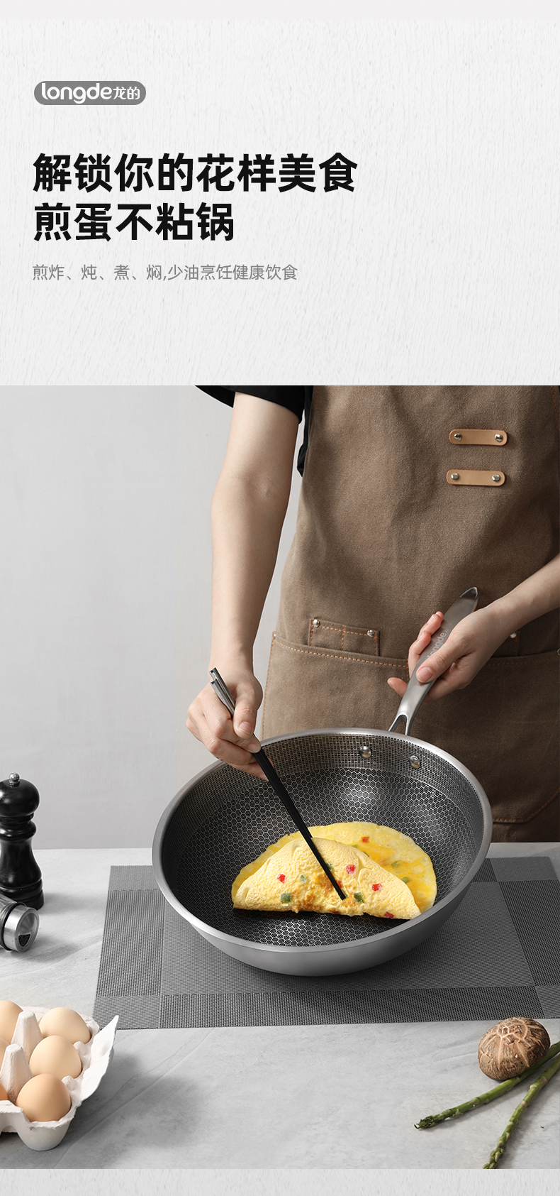 【悦享系列】龙的(longde)不锈钢炒锅炒菜锅家用少油烟蜂窝锅煎锅 LD-CG600