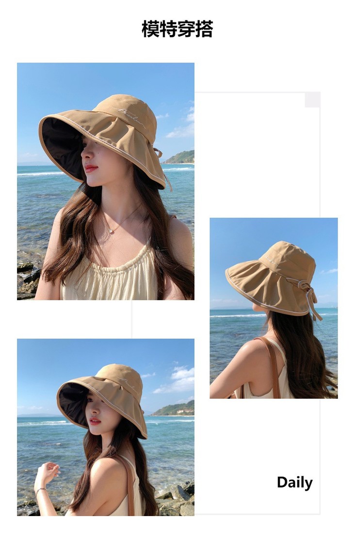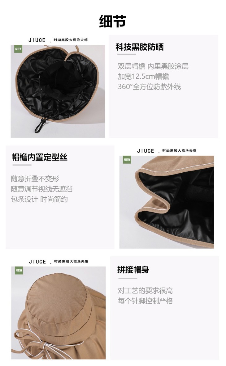 韩国防晒帽新款黑胶防紫外线大沿太阳帽百搭遮阳帽JC