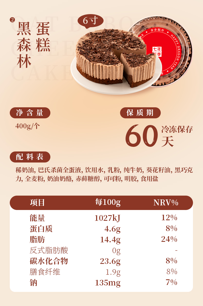 七年五季动物奶油黑森林蛋糕新年礼物小罐盒子芝士蛋糕罐子甜品