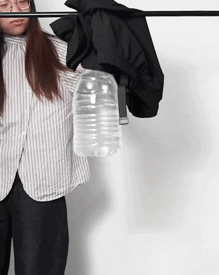 把一桶5L桶装水系在裤子上,从高处坠下裤子的回弹效果超明显