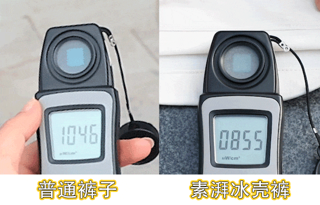在正午阳光下暴晒——冰壳裤VS普通户外裤,盖在紫外线感应仪上