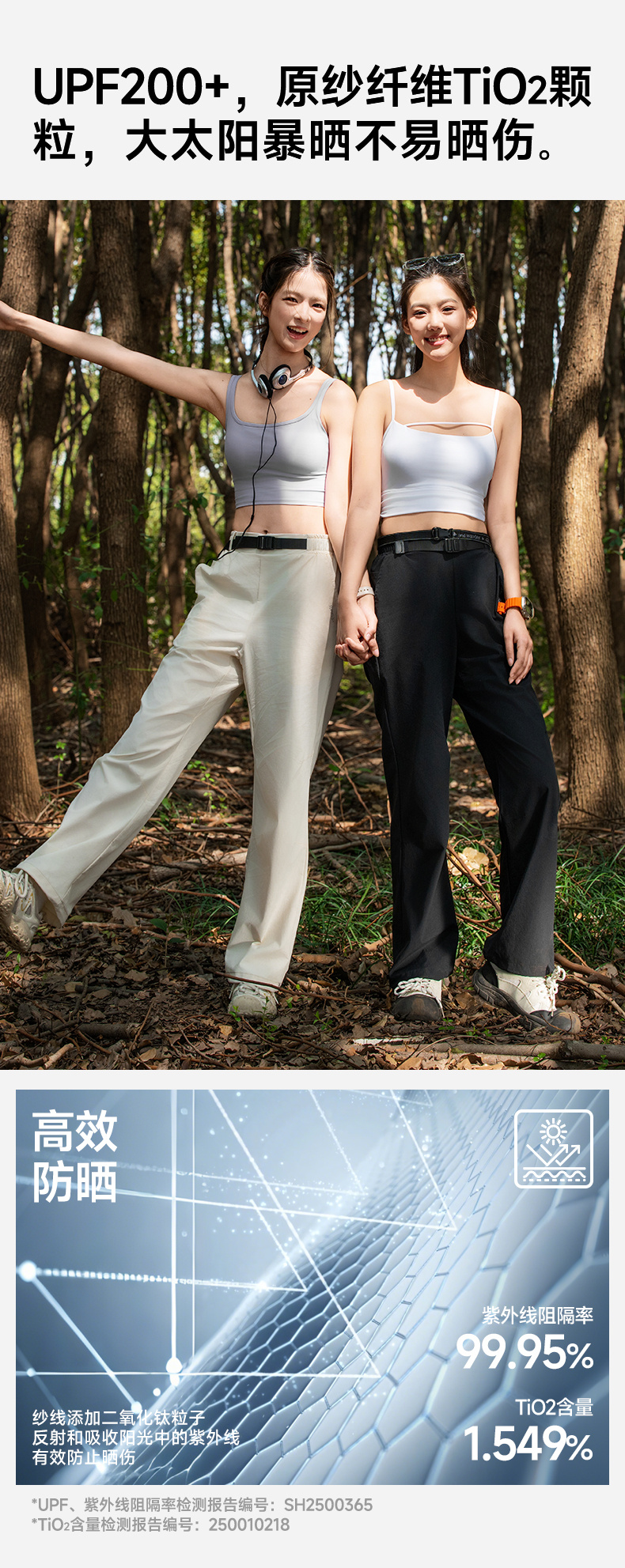 冰壳裤防晒力:直接降到个位数值1,UPF200+,隔绝户外紫外线;