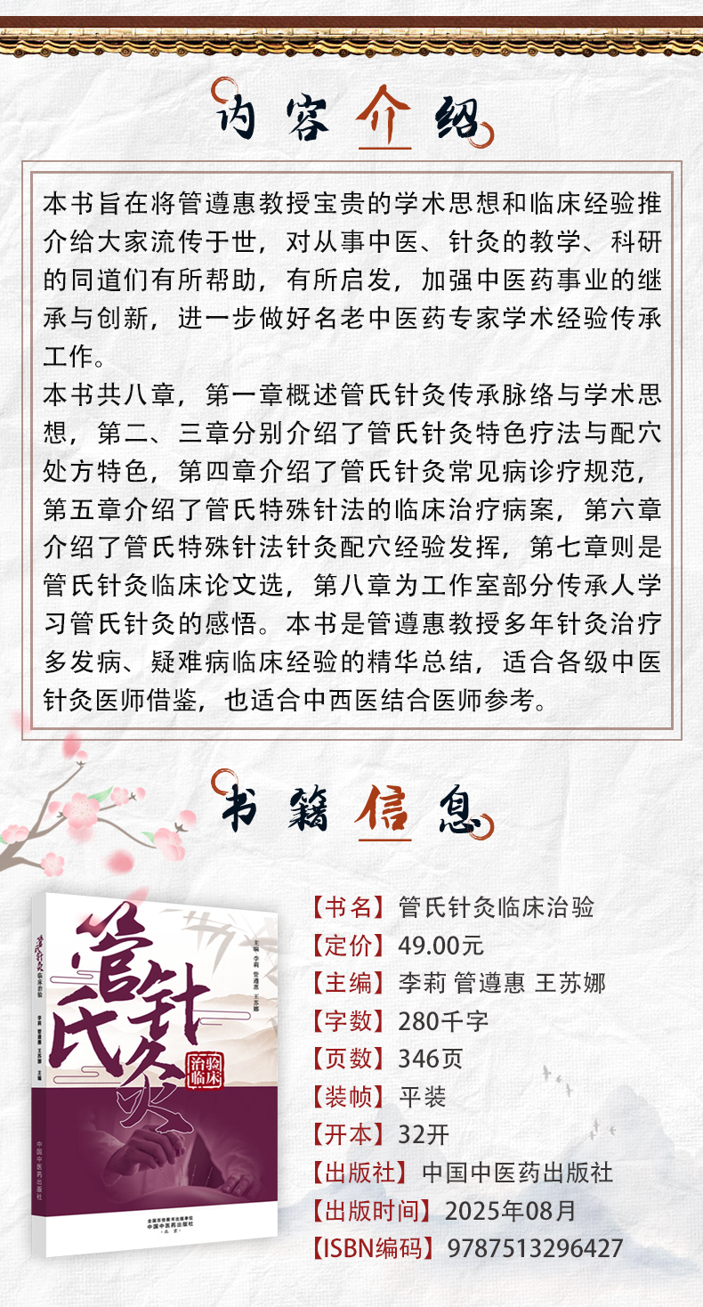 管氏针灸临床治验 李莉 管遵惠 王苏娜 主编 管氏针灸学术流派的传承脉络与学术特色 管氏针灸学习感悟等 中国中医药出版社