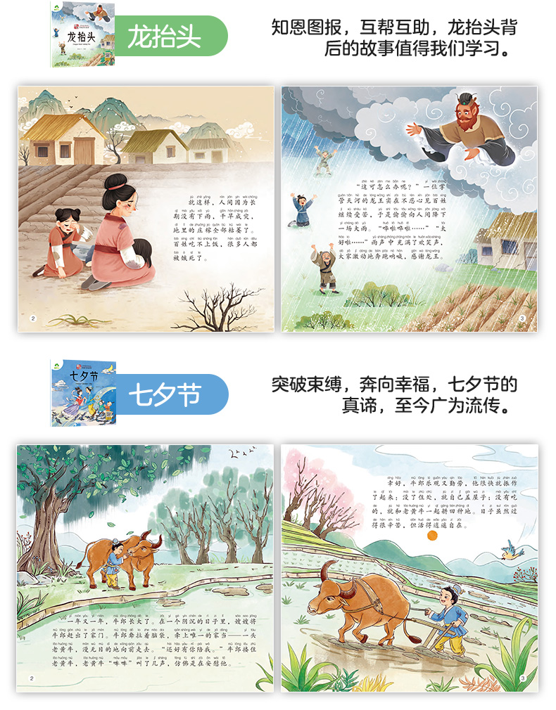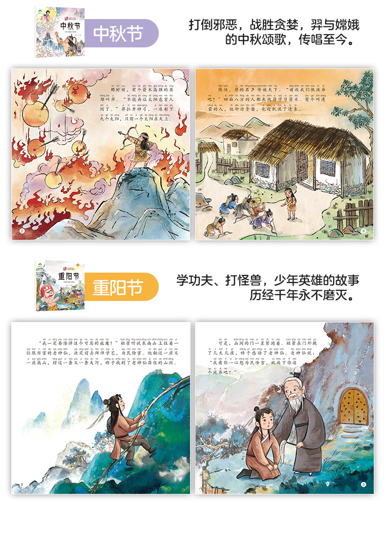 爱德少儿 中国传统节日故事 绘本注音版图画书中秋节儿童绘本春节元宵节端午节七夕节0-3-6岁宝宝亲子共读绘本