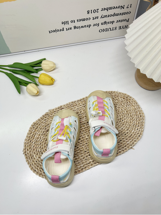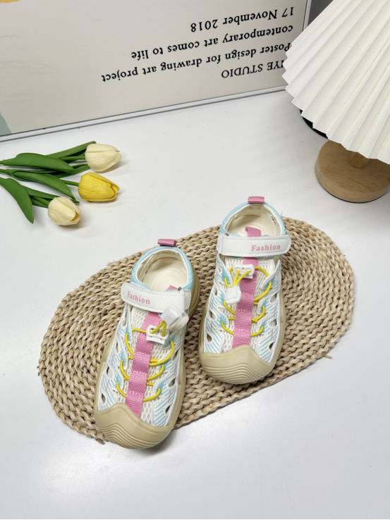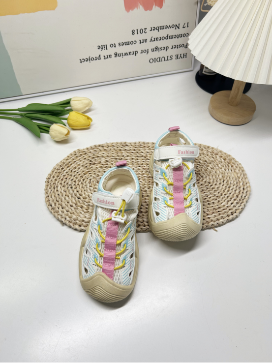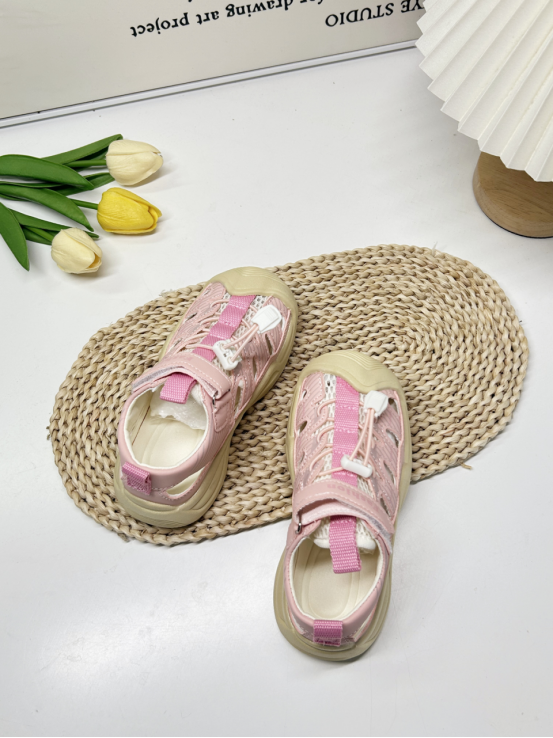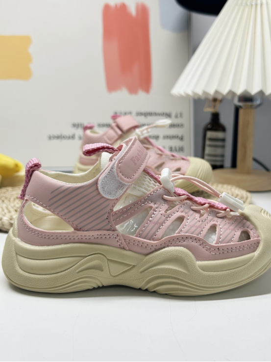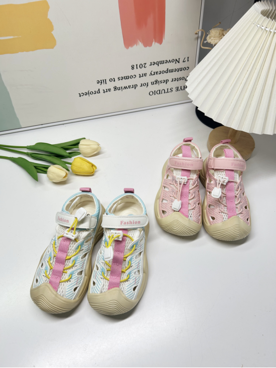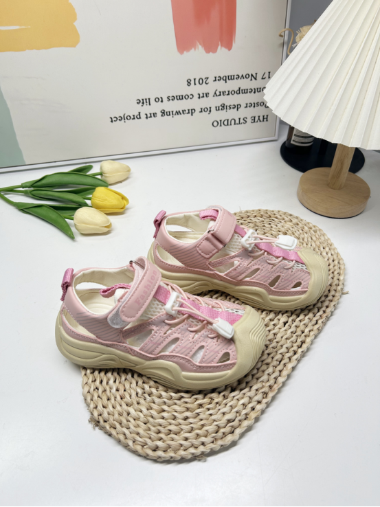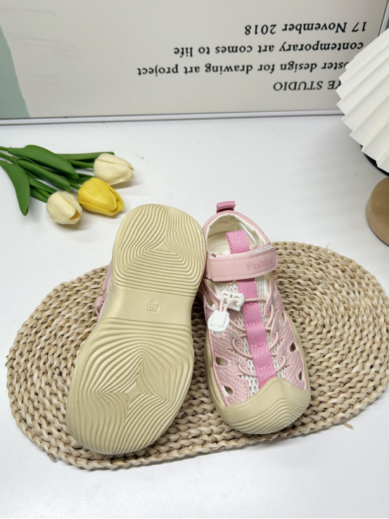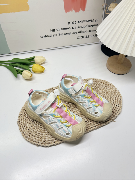 合成革鞋面耐磨又有型,透网设计像给小脚丫装了小风扇,夏 天疯玩也不怕闷汗!PVC 鞋底柔韧防滑, 2.5cm 黄金跟高保护足弓,跑跳都稳当。