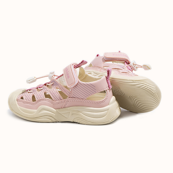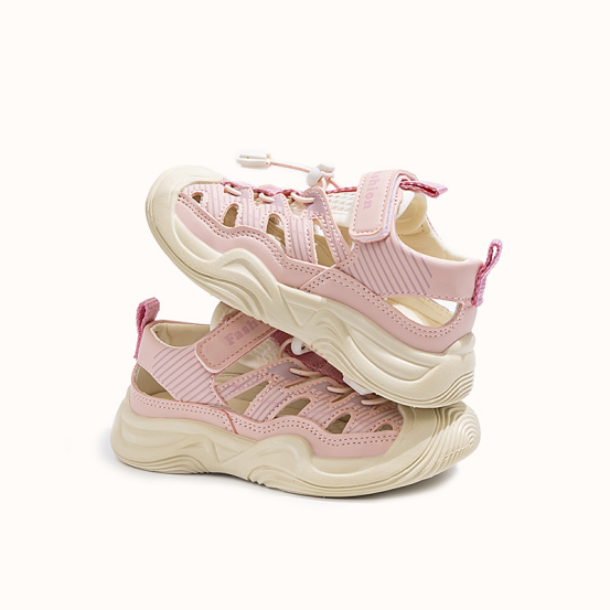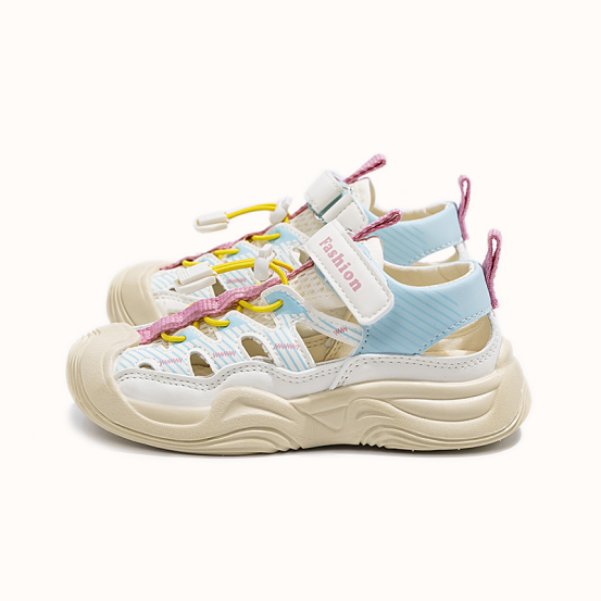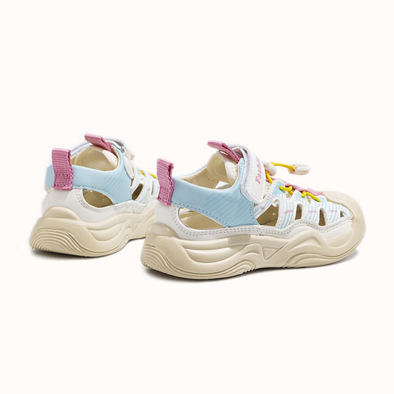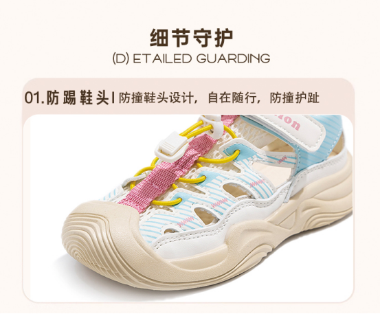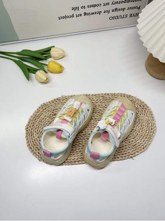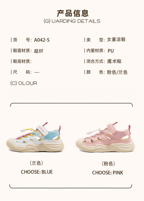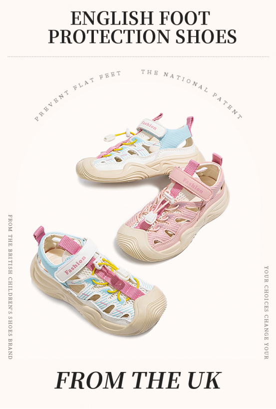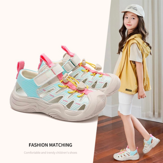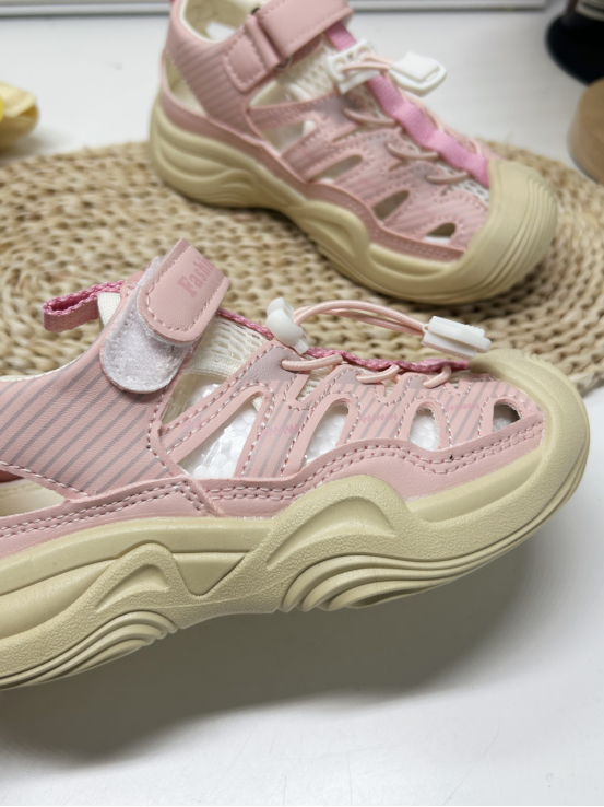 合成革鞋面耐磨又有型,透网设计像给小脚丫装了小风扇,夏 天疯玩也不怕闷汗!PVC 鞋底柔韧防滑, 2.5cm 黄金跟高保护足弓,跑跳都稳当。