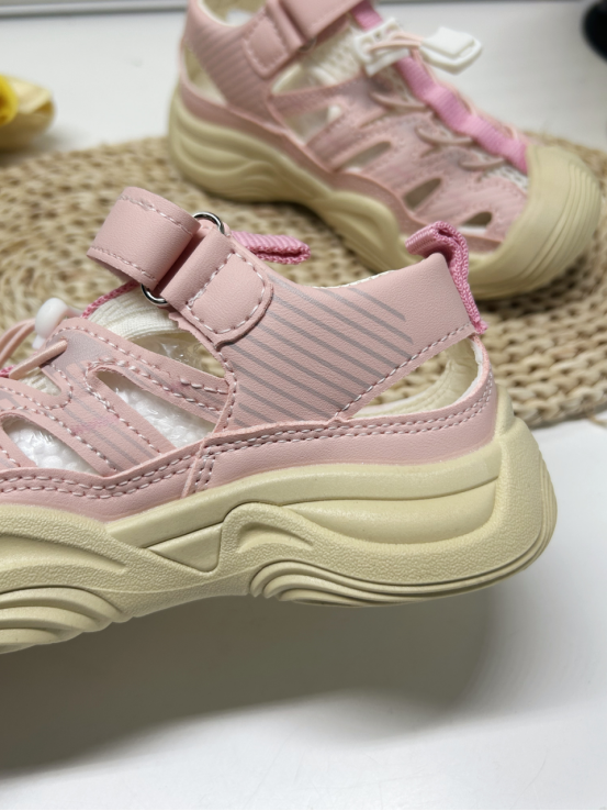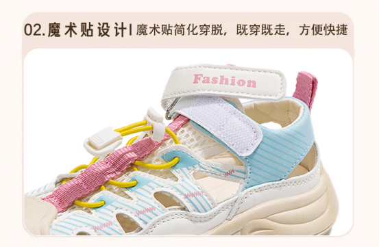 💙蓝色是大海的清爽感, 💖粉红色像甜甜的草莓奶昔,哪个颜色都超显白! 合成革鞋面耐磨又好打理,泼到水一擦就干净, 带娃出门再也不怕小脏鞋啦~透网设计绝了, 夏天暴走都不闷脚🦶 魔术贴一撕一贴,宝宝自己就能穿脱,解放妈妈双手!