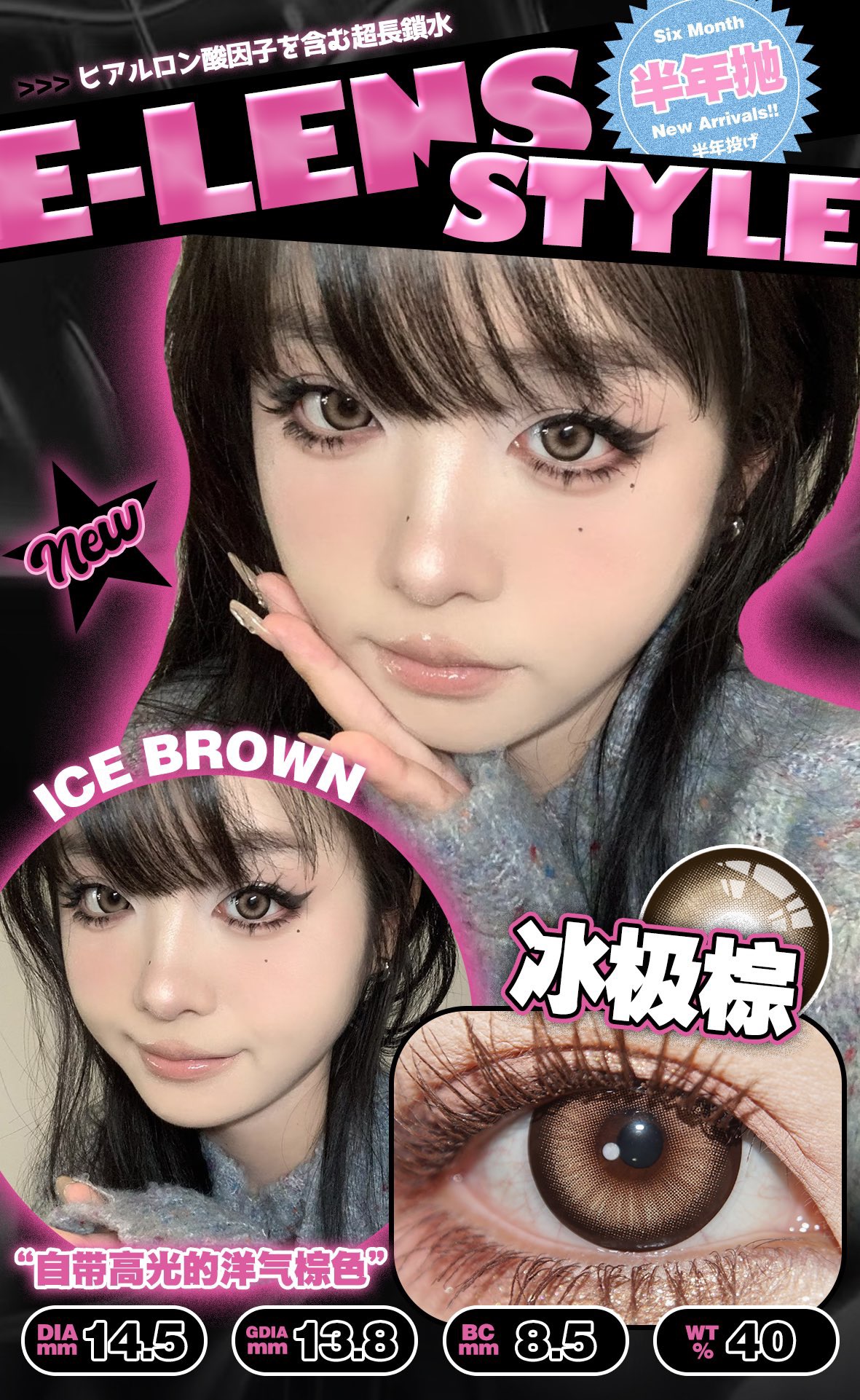 冰极棕 直径14.5 染色直径13.9基弧8.6含水量40%
