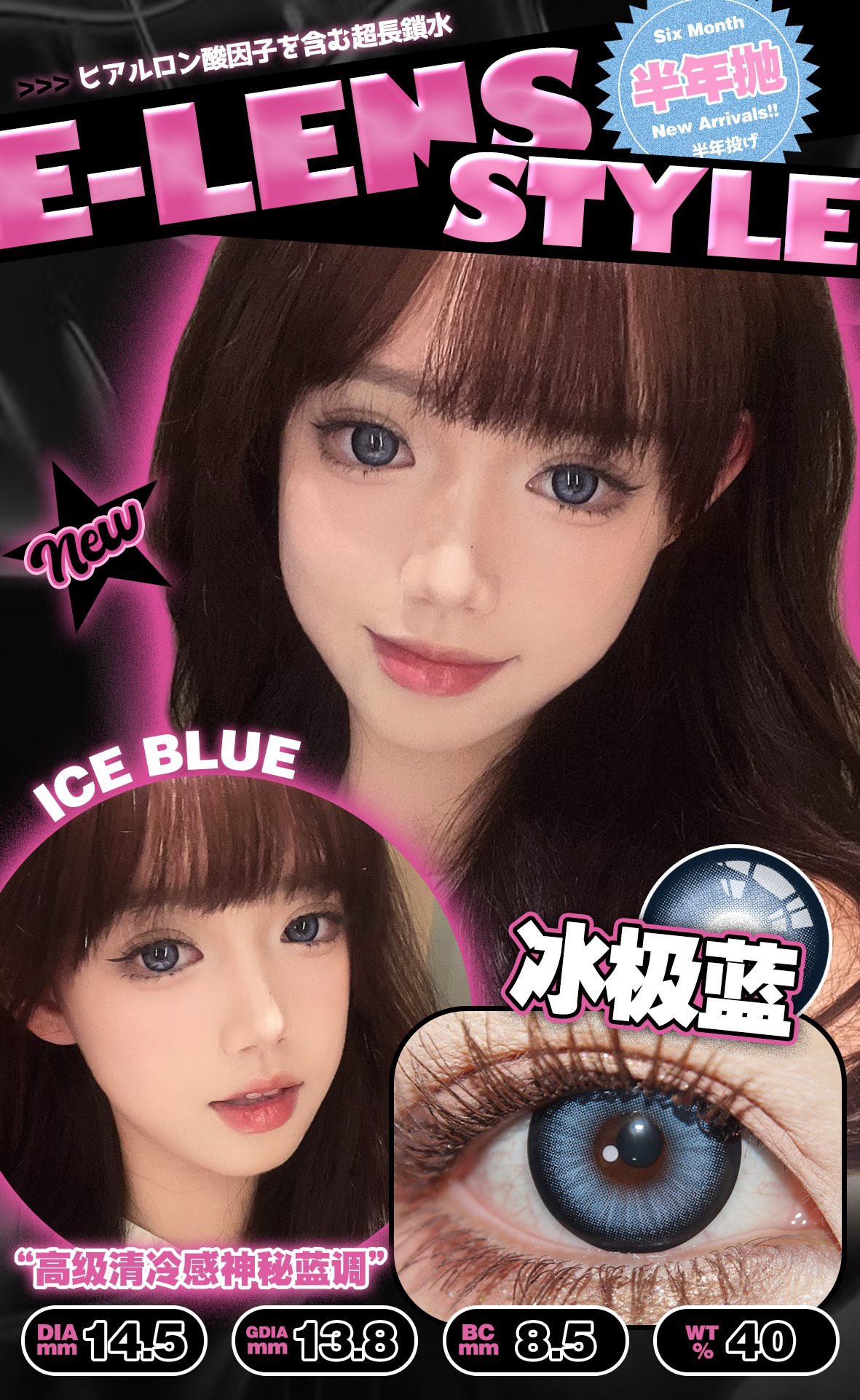冰极蓝 直径14.5 染色直径13.9基弧8.6含水量40%