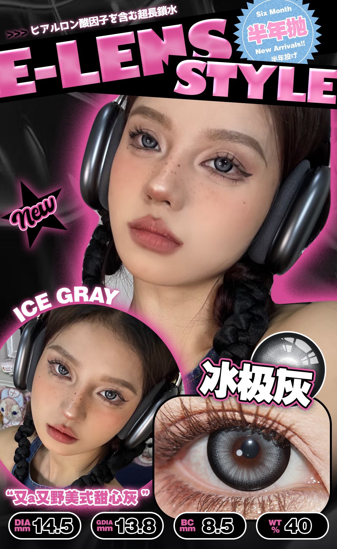 冰极灰 直径14.5 染色直径13.9基弧8.6含水量40%