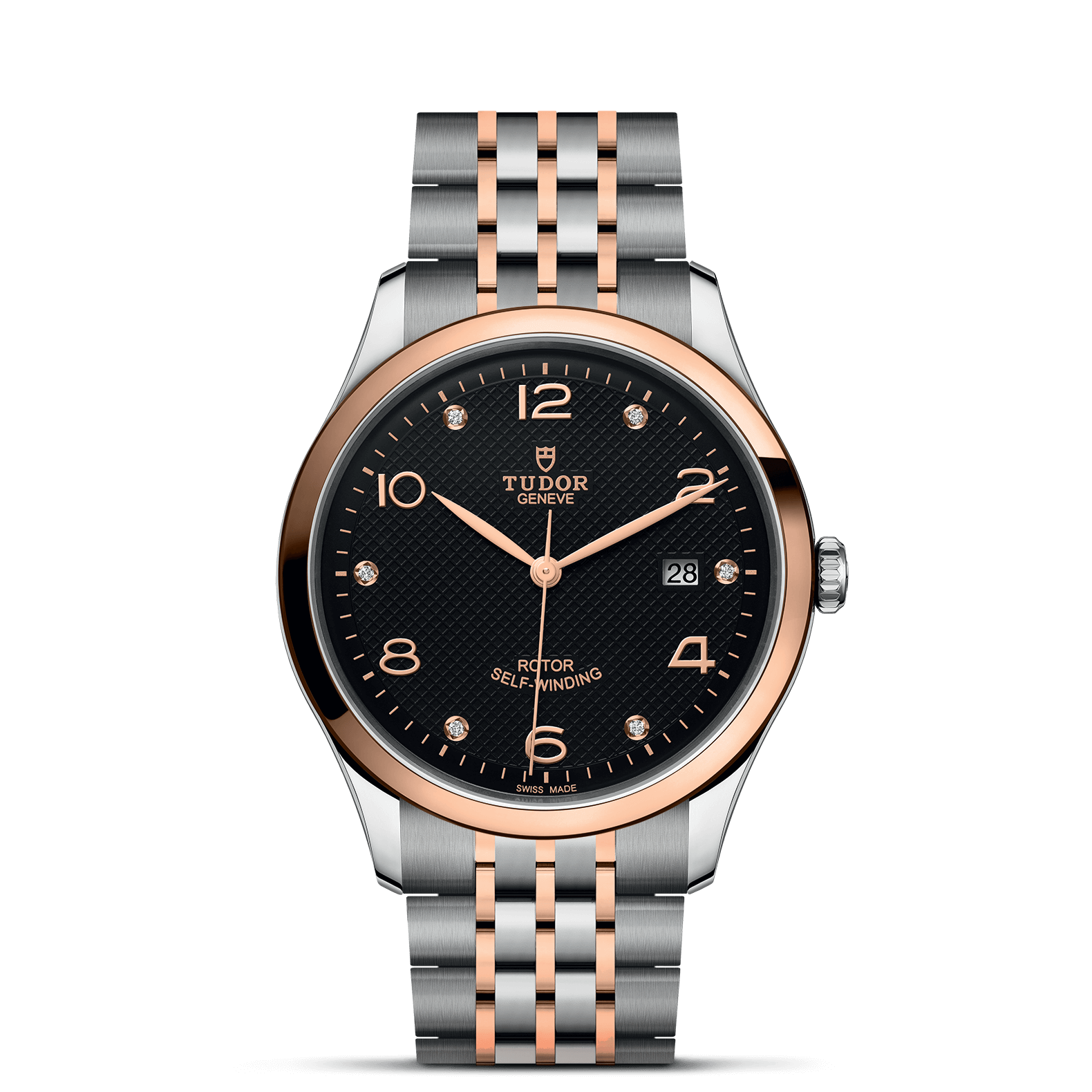 玫瑰金首排中央链节位于6点钟及12点钟位置;其他精钢中央链节覆有0.2毫米18K玫瑰金薄层