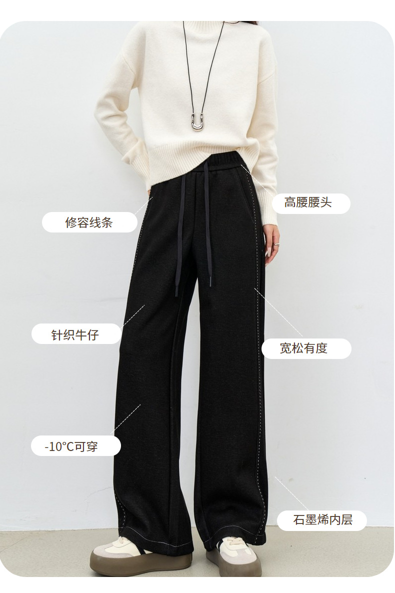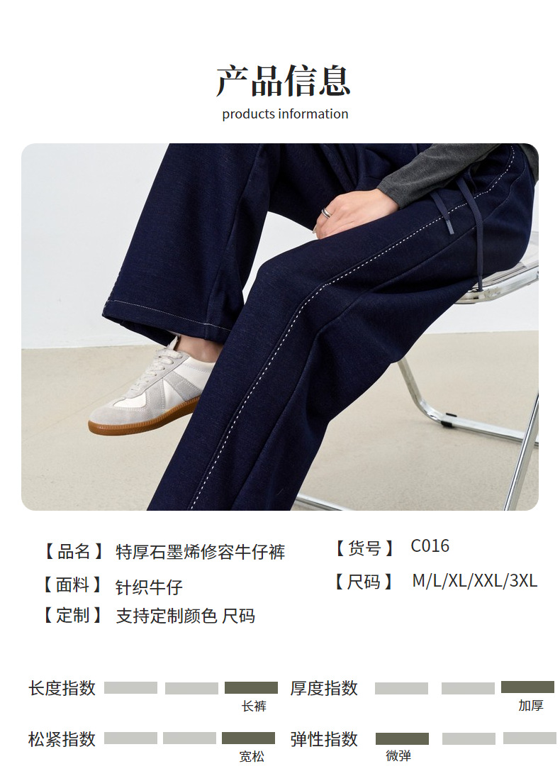 【加厚石墨烯牛仔裤】25冬女装新款加厚保暖牛仔阔腿直筒牛仔休闲裤