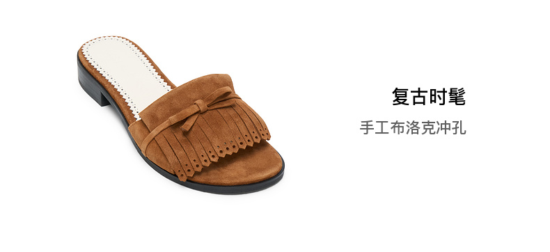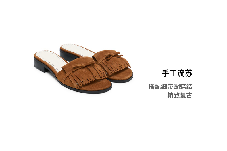 [福利价]lost in echo2025春夏新款仿麂皮复古手工流苏蝴蝶结羊皮凉拖鞋女
