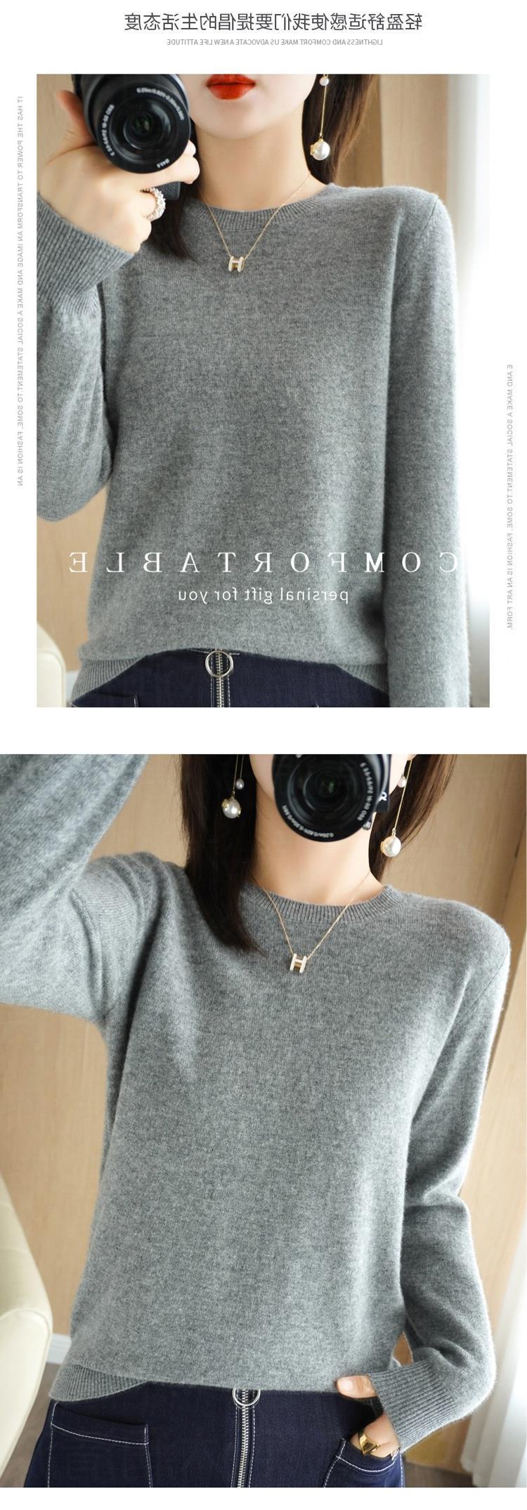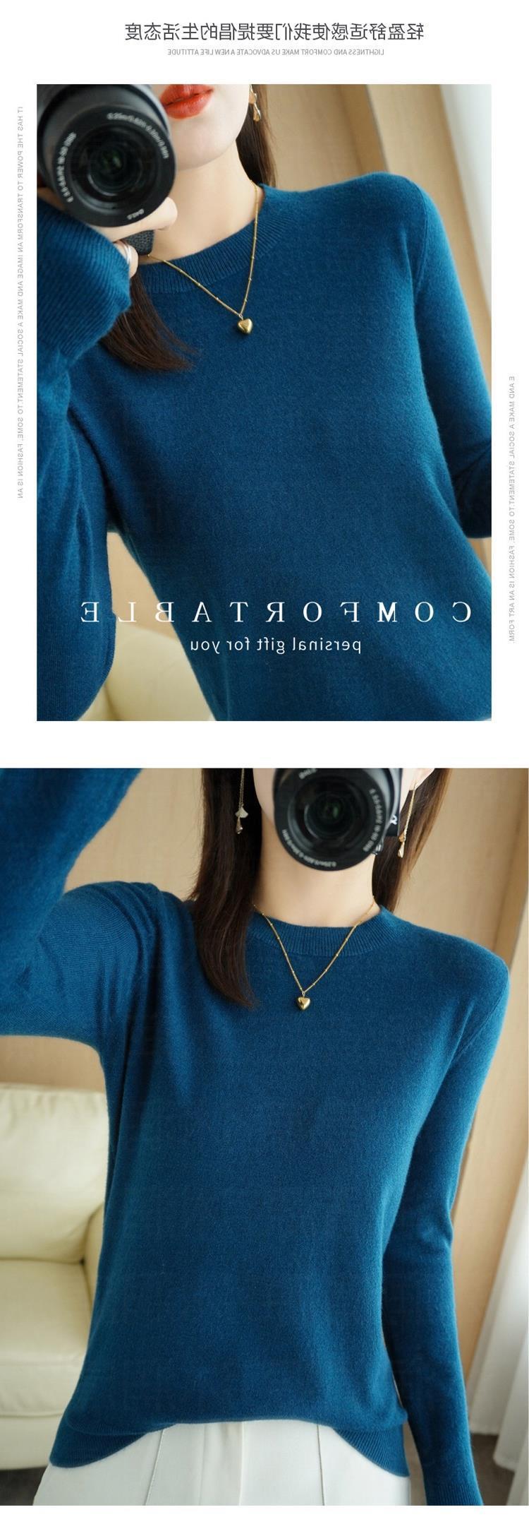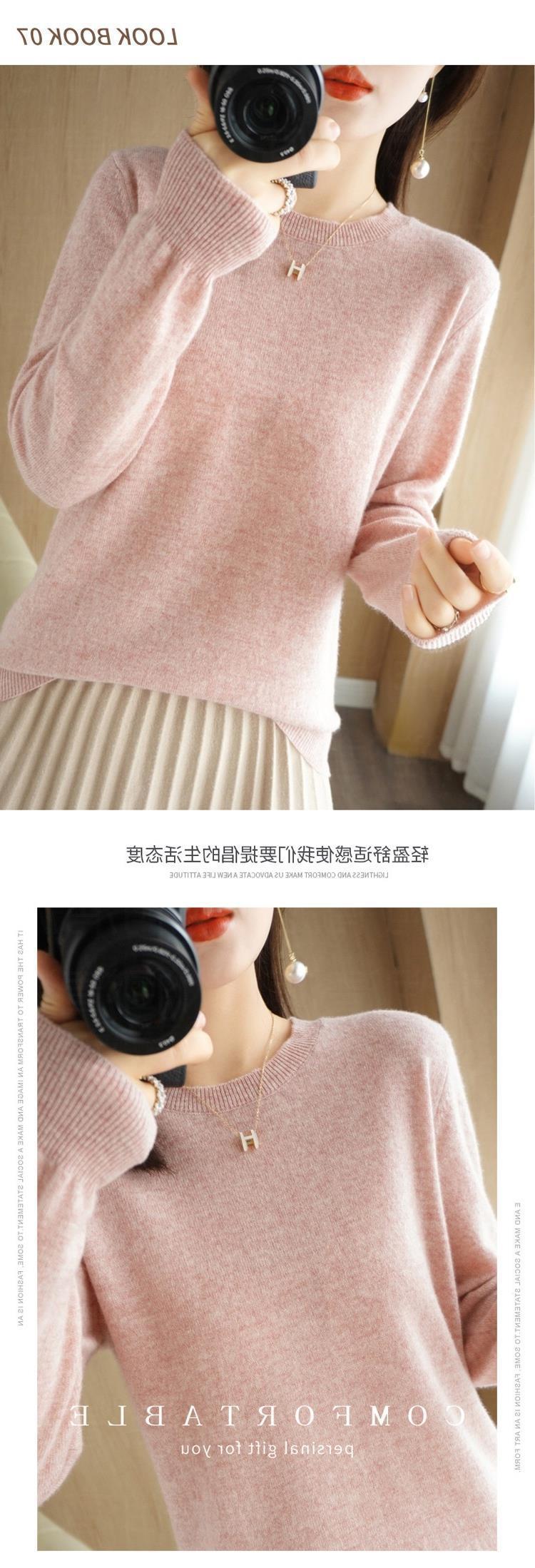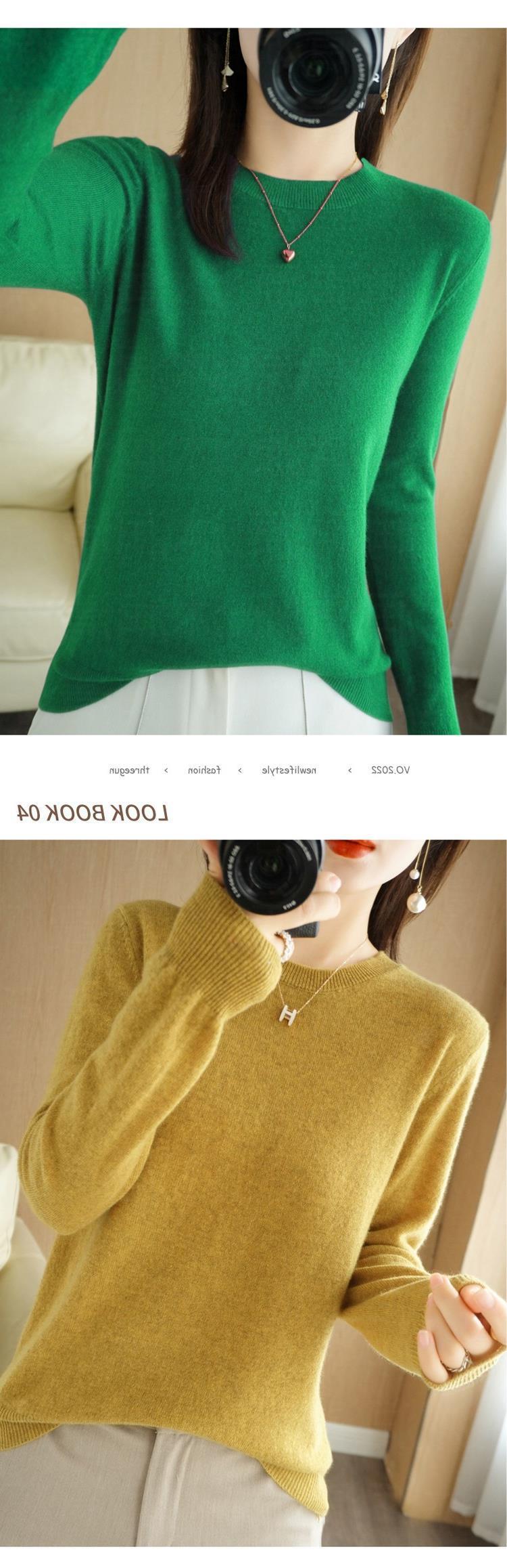 秋冬新款圆领毛衣女套头针织衫纯色长袖女装薄款内搭短款打底衫