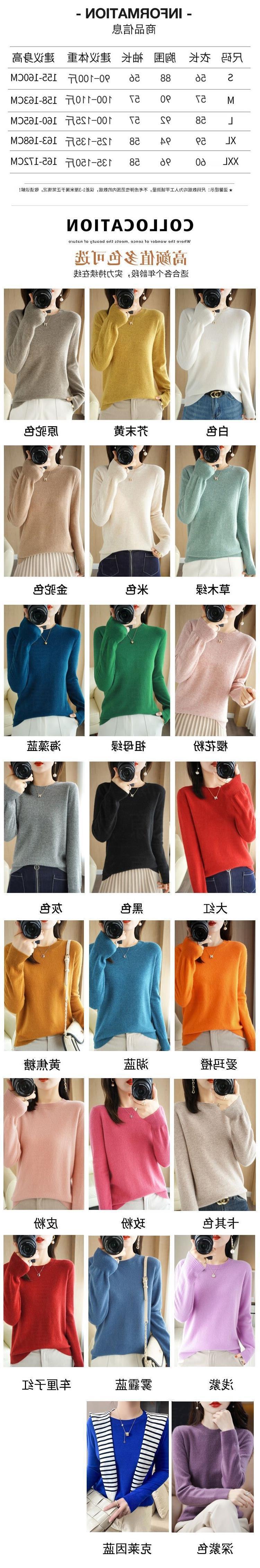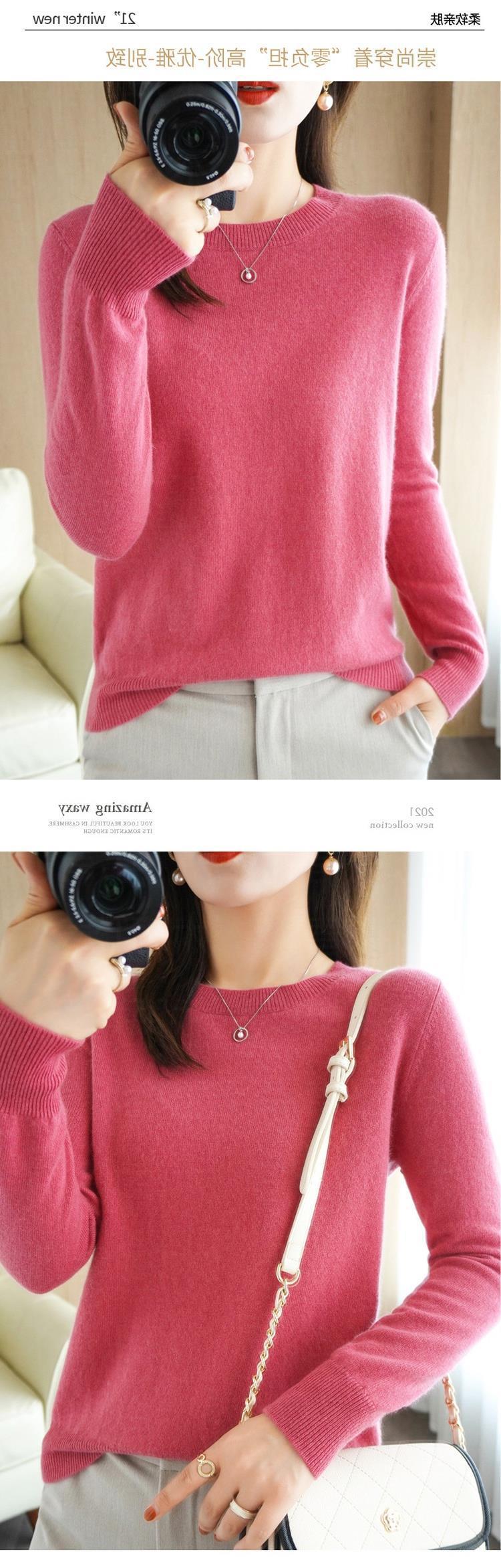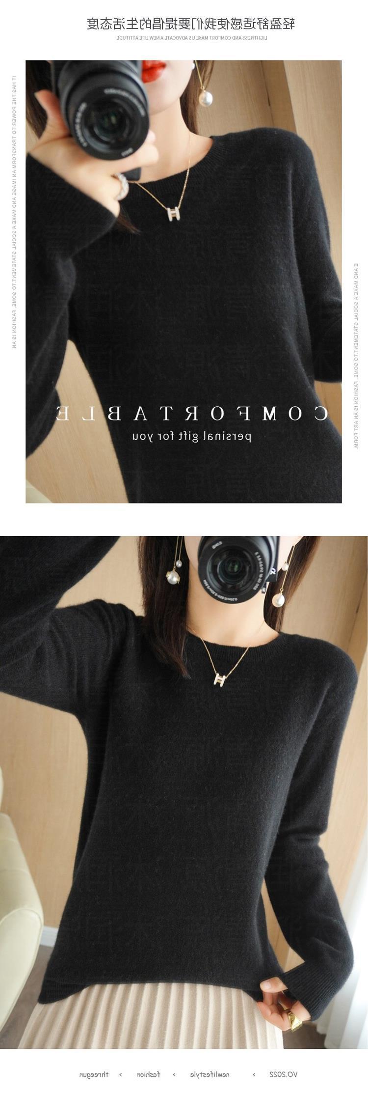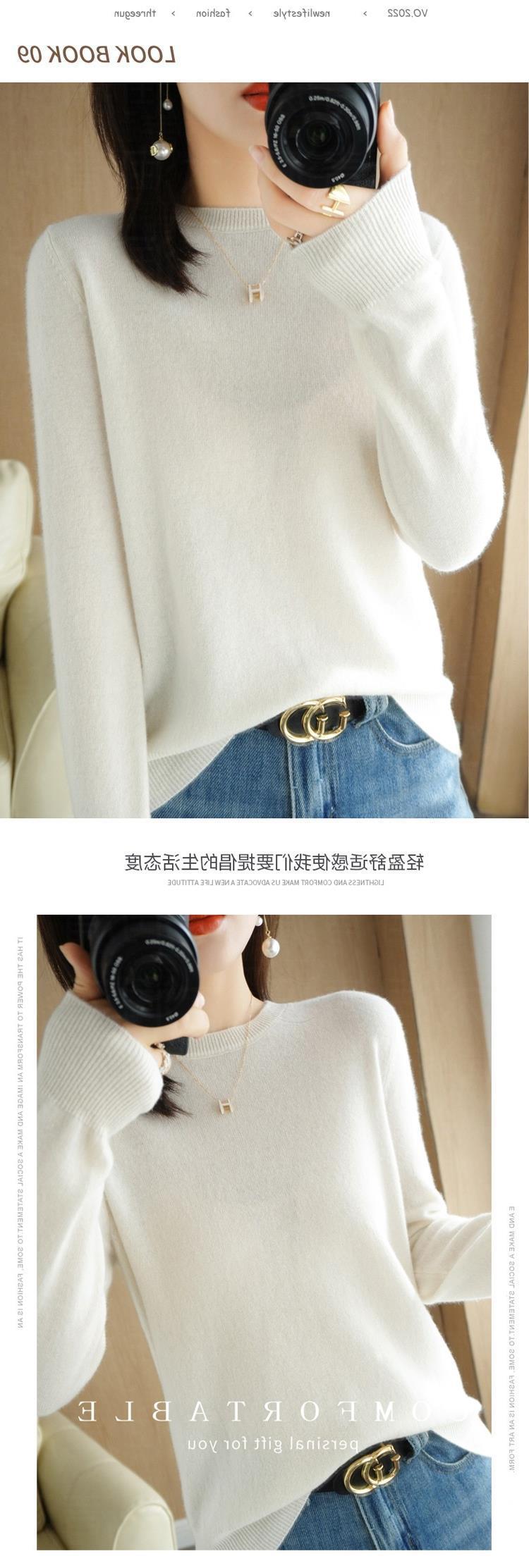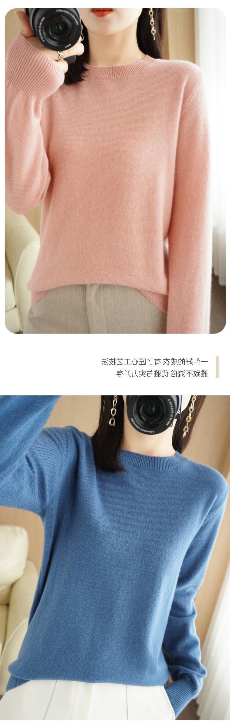 秋冬新款圆领毛衣女套头针织衫纯色长袖女装薄款内搭短款打底衫