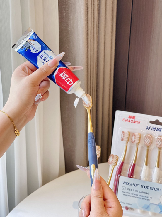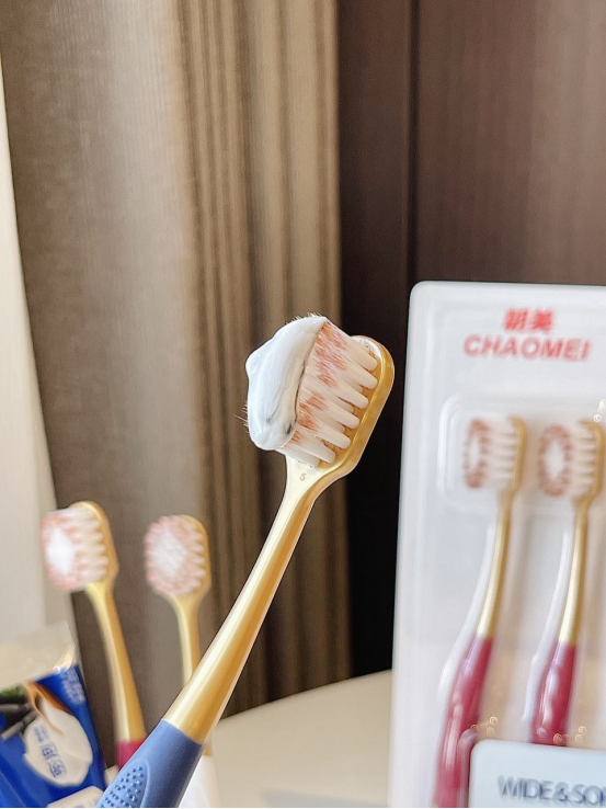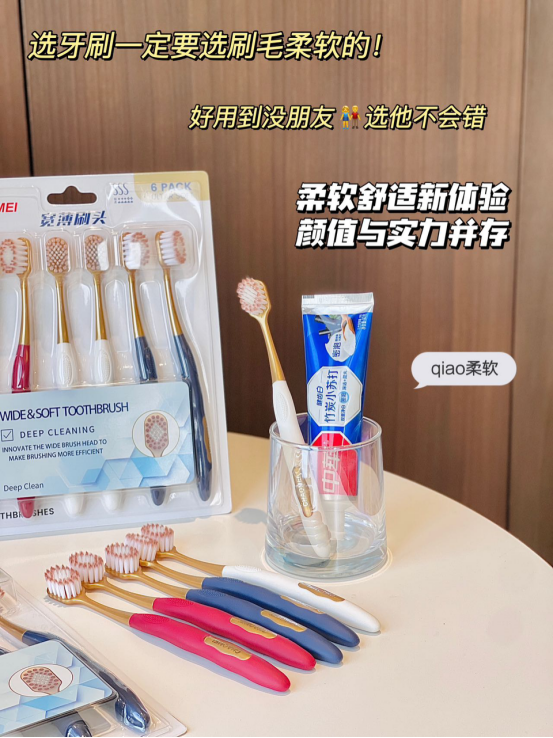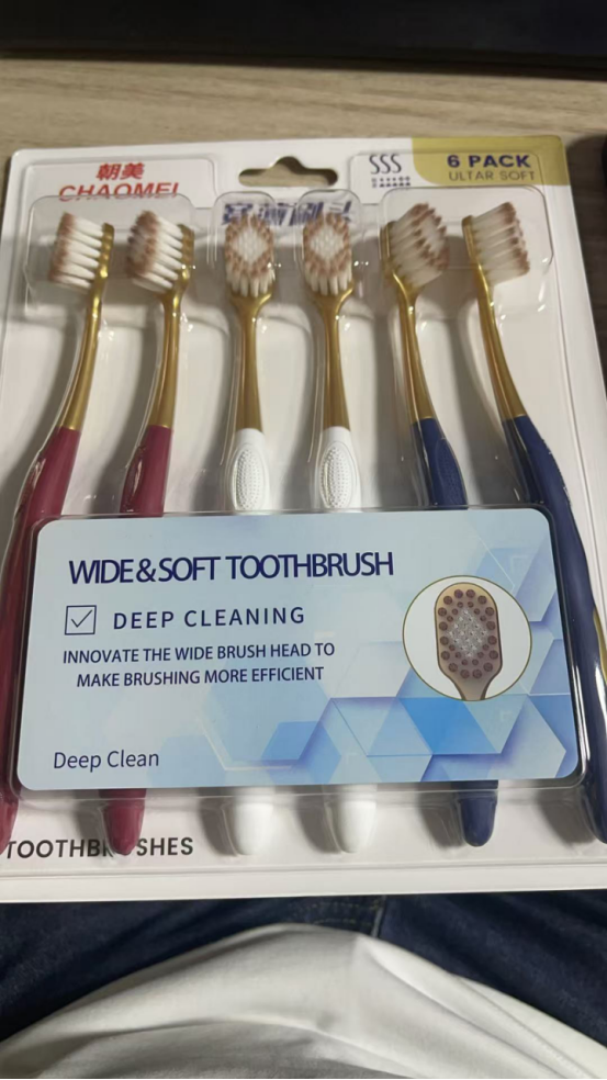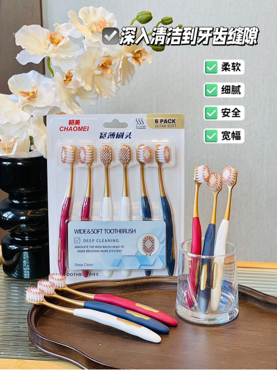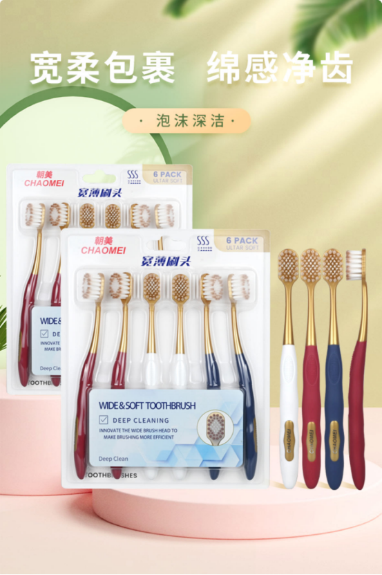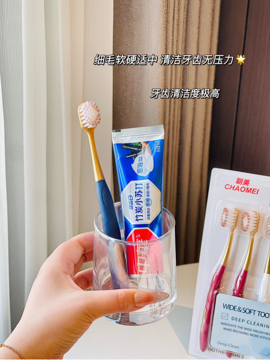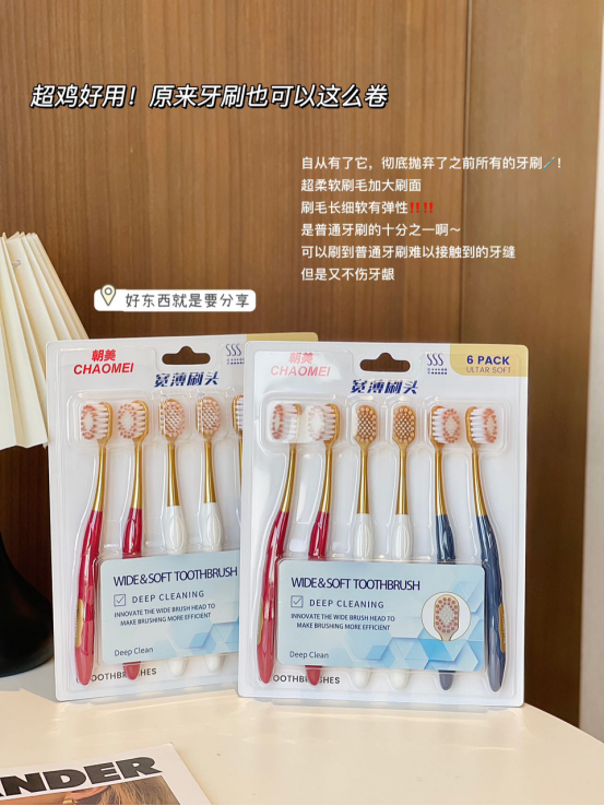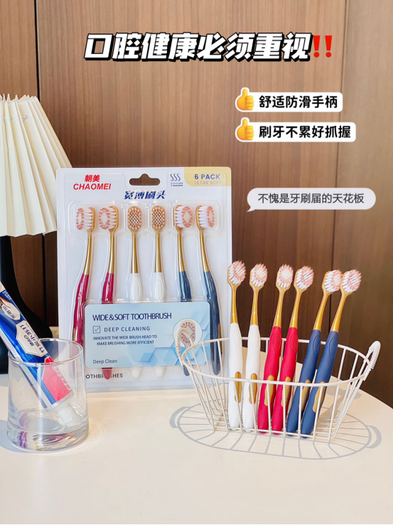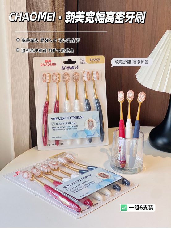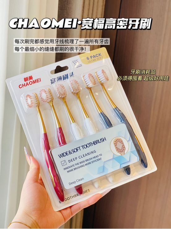 𝙉𝙚𝙬𝙖𝙧𝙧𝙞𝙫𝙖𝙡|新品上线 【朝美宽幅高密牙刷】 要想有一口大白牙,诀窍记住!!! 就是好好刷牙🦷 选好牙刷!害羞一笑 漏出大黄牙有点小尴尬吧 CHAO MEI牙刷孔高密刷毛 再配上大宽头设计刚好可以包住牙齿四周 普通牙刷清洁不到的地方 它都能轻松hoId住! 好的牙刷能把牙膏的作用发挥到极致 宽头牙刷特别适合牙齿敏感的人~