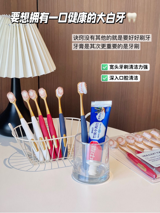 选对牙刷,刷出一口健康的大白牙🦷! 让我看看,是谁还在因为牙黄牙渍不敢露齿笑 宽头设计,一次能刷到两排牙,还能刷到后槽牙,毫不费劲!刷牙不伤牙齿牙龈 一些细小的牙缝、边边角角都能刷得到 特别适合牙齿敏感和戴牙套的人使用 家人们,牙齿健康真的要重视起来!