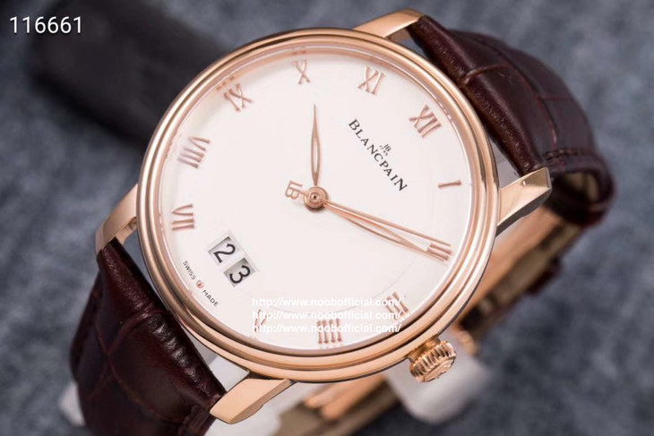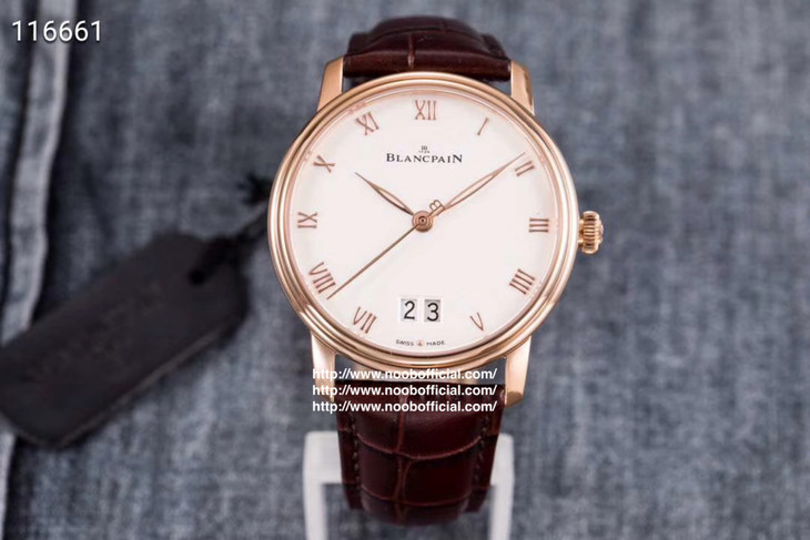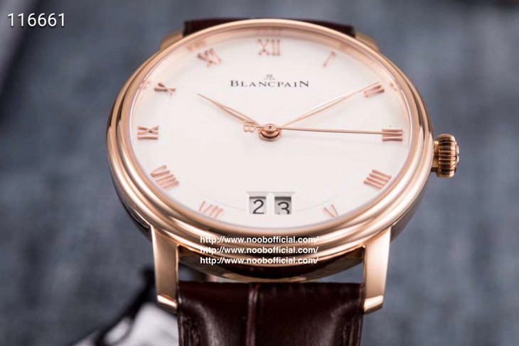 NOOB复刻:宝珀经典优雅的Villeret系列大日历视窗腕表,复刻宝珀原装6950机芯,功能与原装一致,双窗大日历,大日历功能通过两个并列宽阔的视窗以大号数字显示出来,令日期读数一目了然