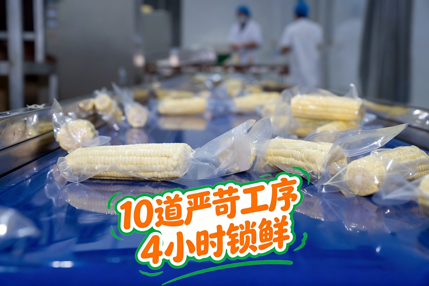 这样大大缩短了运输时间,10道严苛工序,121℃高温杀菌,4小时内完成采摘到真空锁鲜。打开包装就会闻到一股清甜的玉米味,像从玉米田里刚摘的一样新鲜